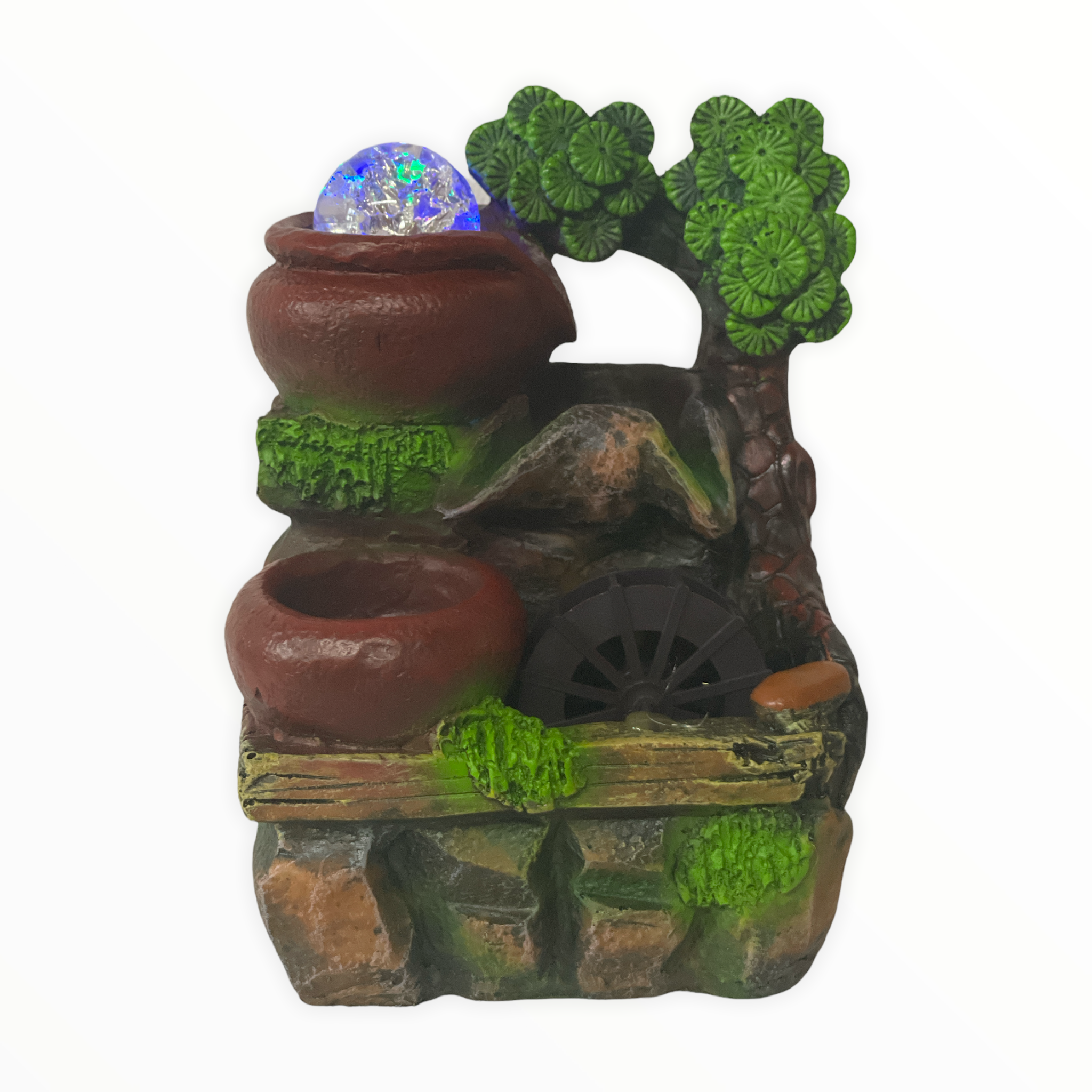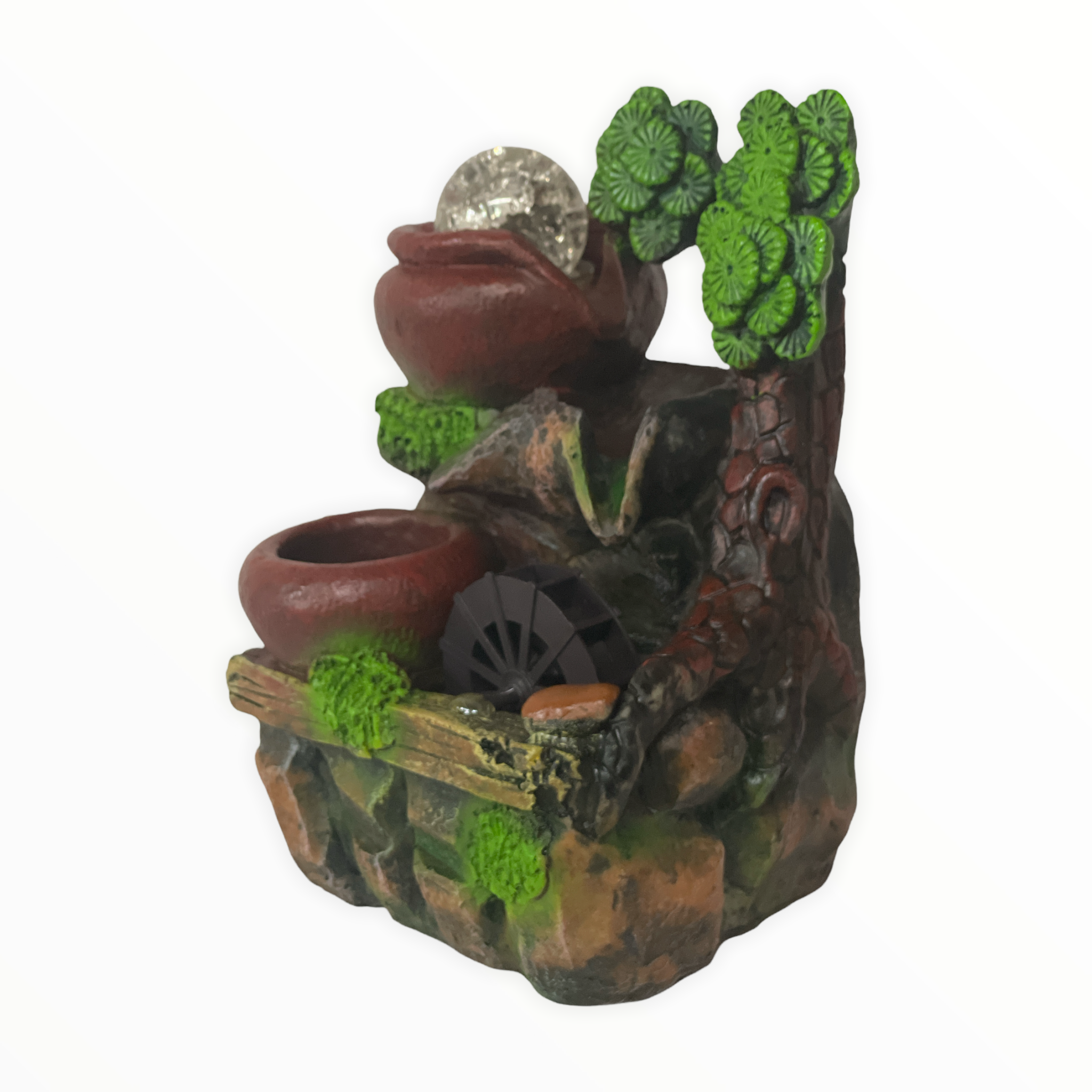 Fântâna decorativă cu apă curgătoare este perfectă pentru a aduce armonie și liniște în orice zonă a casei sau biroului tău. Apa curgătoare elimină energiile negative, ne readuce succesul în diverse domenii și nu în ultimul rând, este sursa perfectă de umiditate necesară oricărei camere.