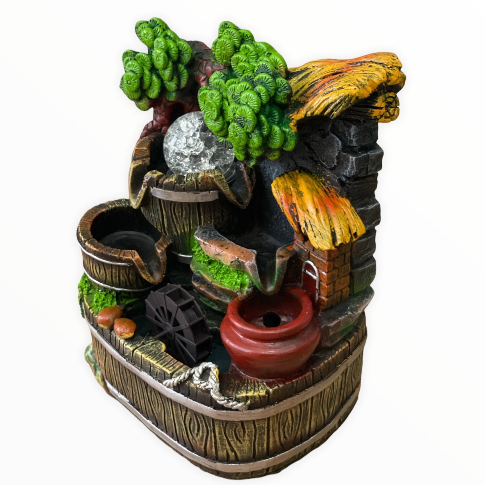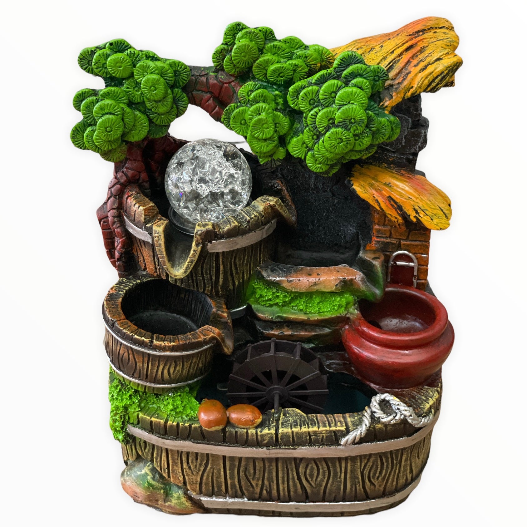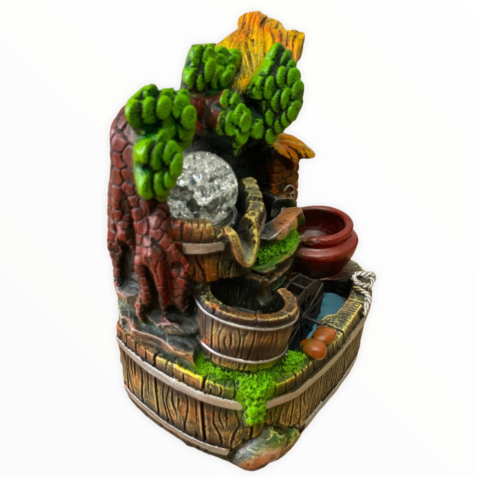 Fântâna este fabricată din polirășină vopsită multicolor și poate prezenta mici imperfecțiuni de turnare.