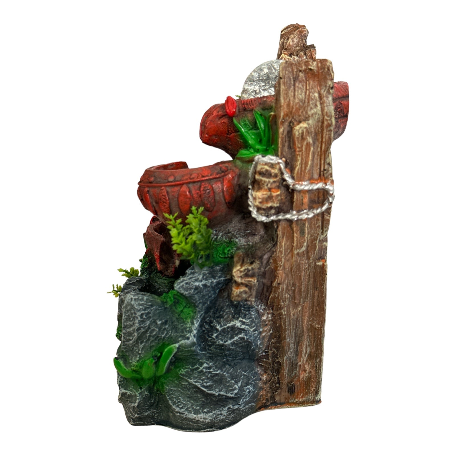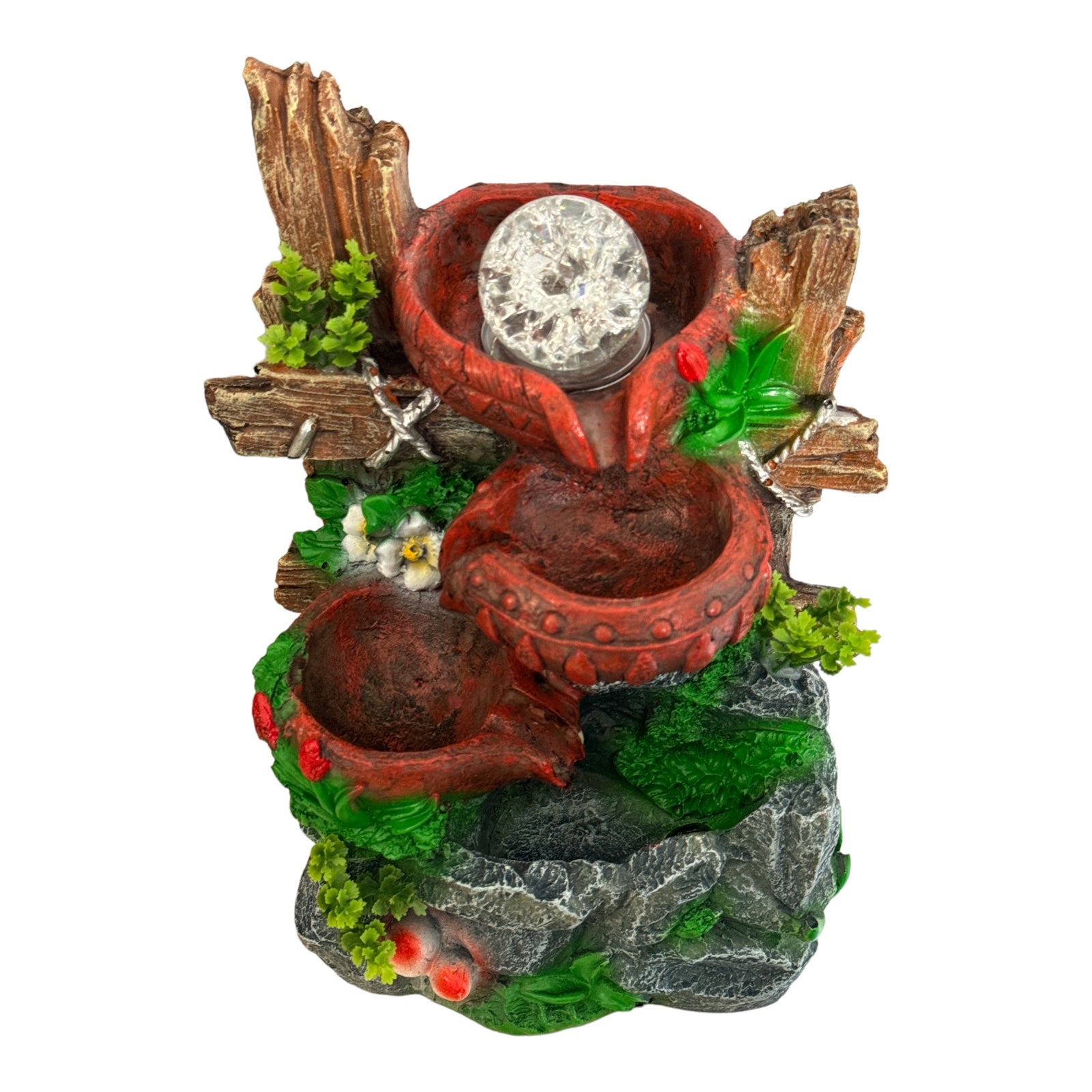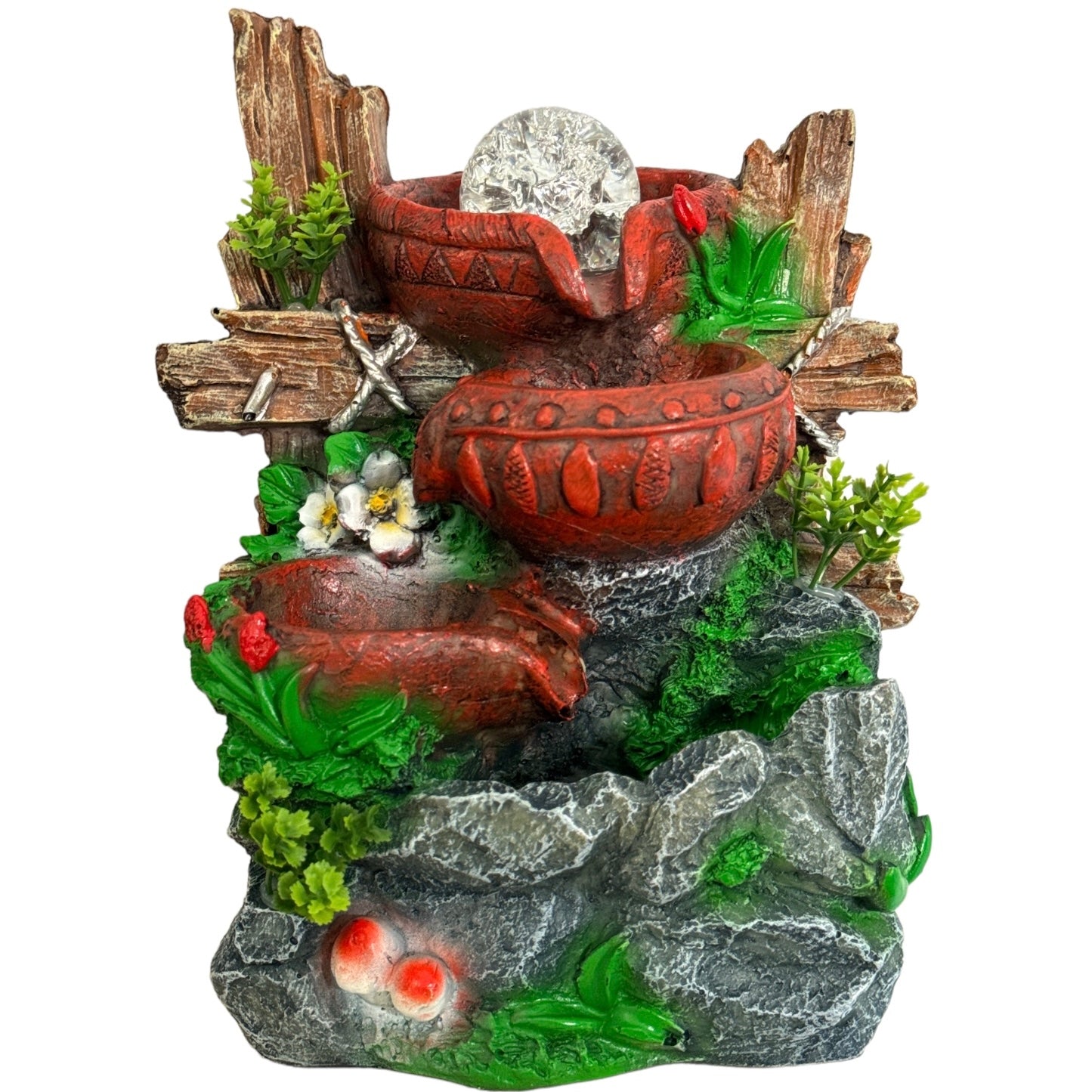 Fântâna este fabricată din polirășină vopsită multicolor și poate prezenta mici imperfecțiuni de turnare.