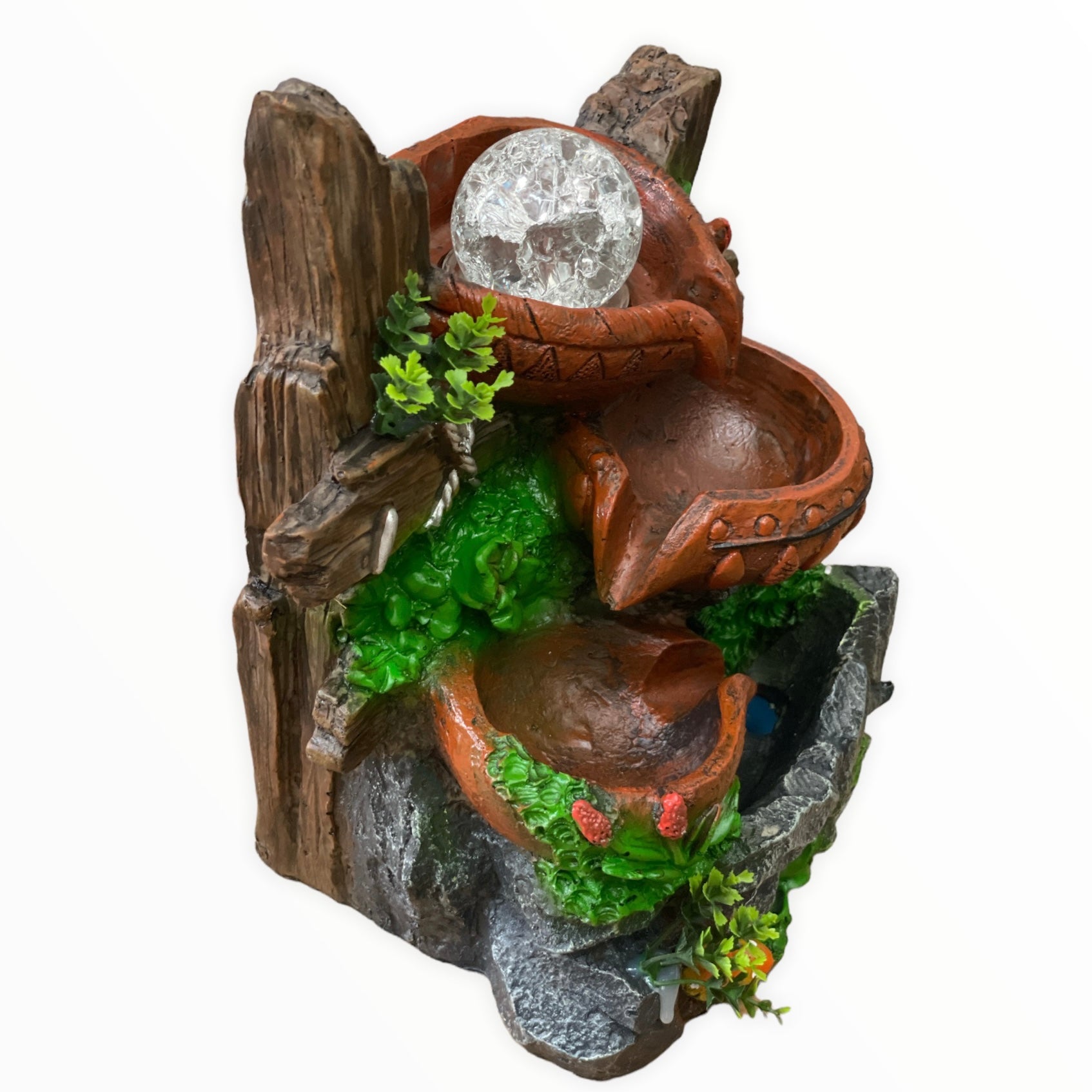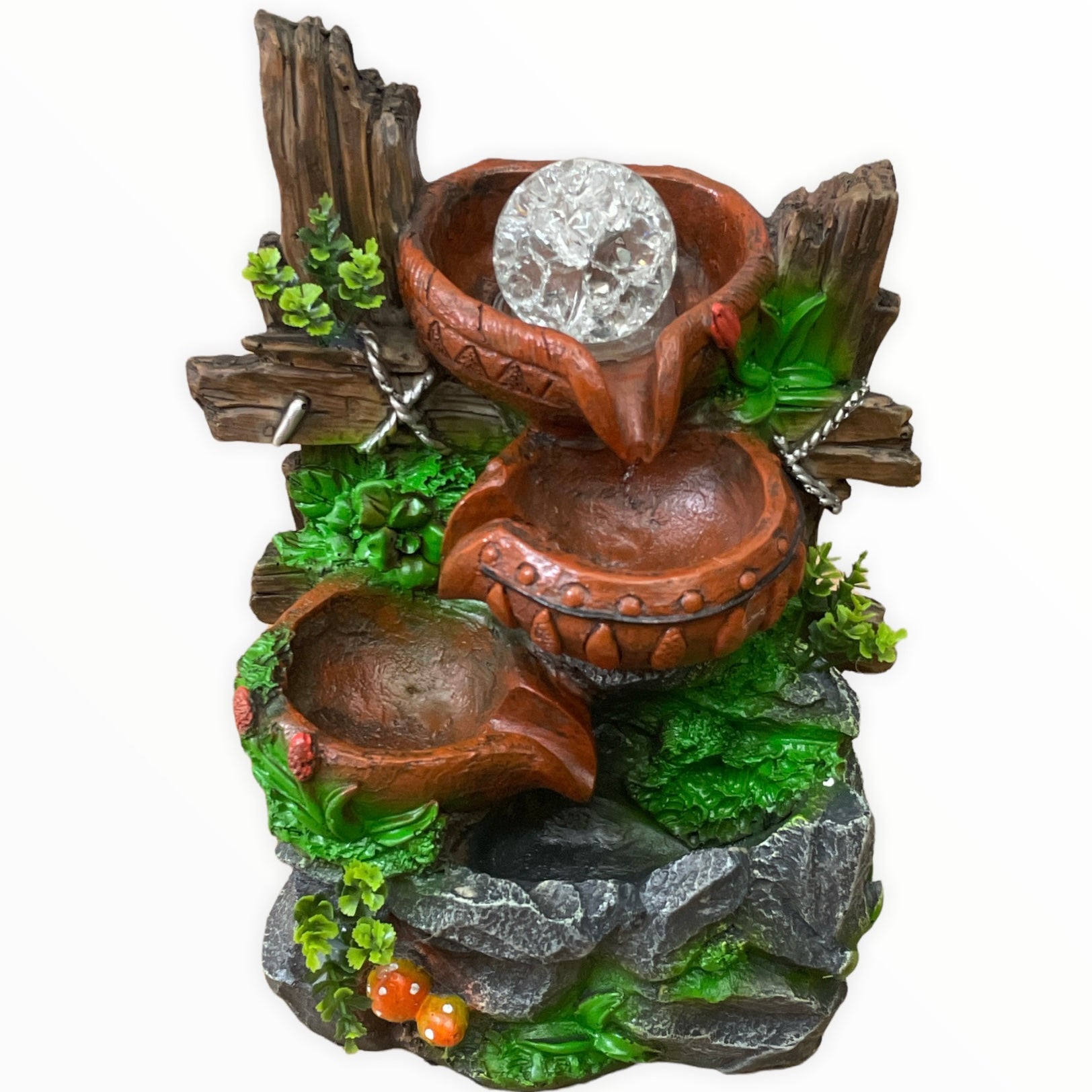 Fântâna decorativă cu apă curgătoare este perfectă pentru a aduce armonie și liniște în orice zonă a casei sau biroului tău. Apa curgătoare elimină energiile negative, ne readuce succesul în diverse domenii și nu în ultimul rând, este sursa perfectă de umiditate necesară oricărei camere.