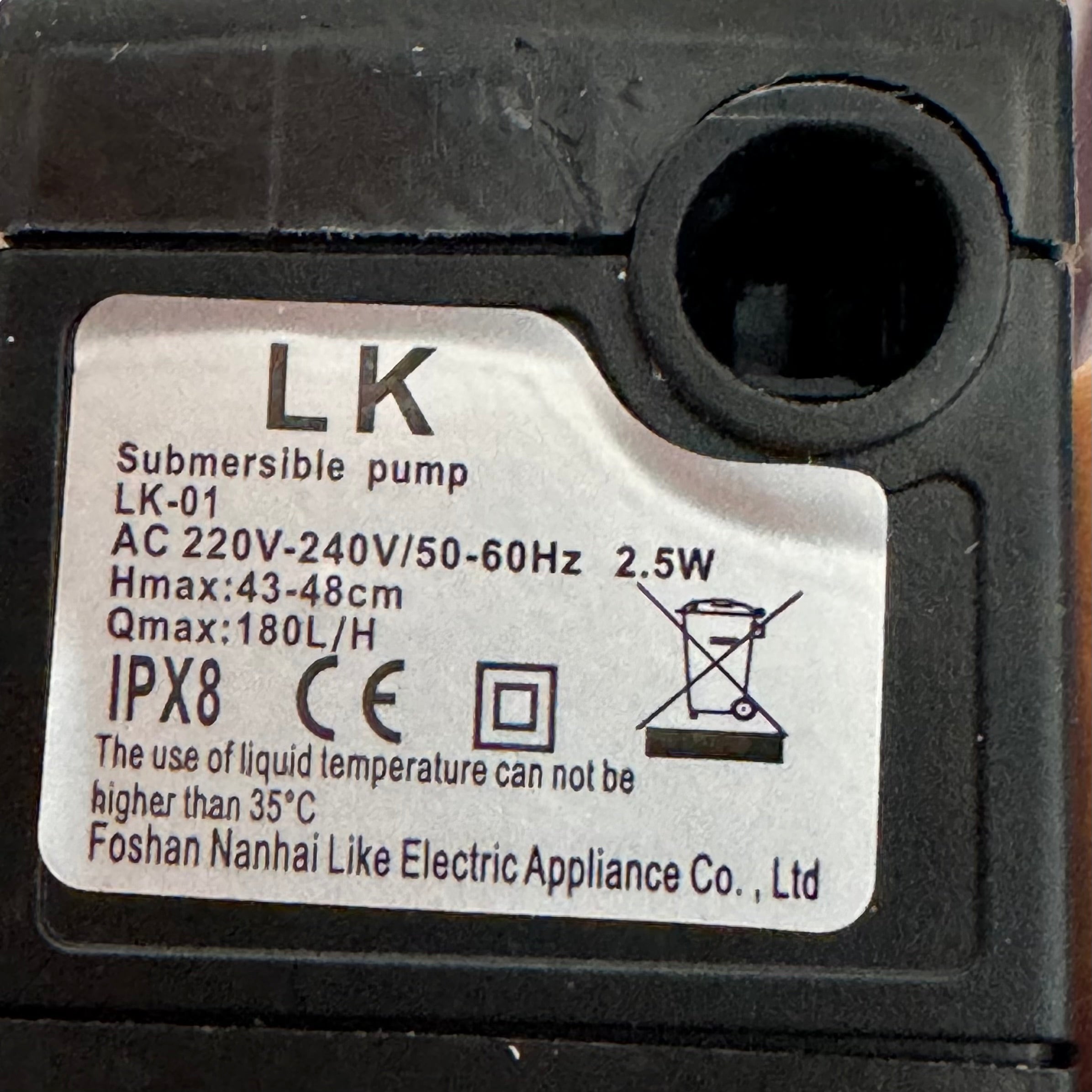 Împreuna cu fântâna se livrează și pompa de recirculare a apei .