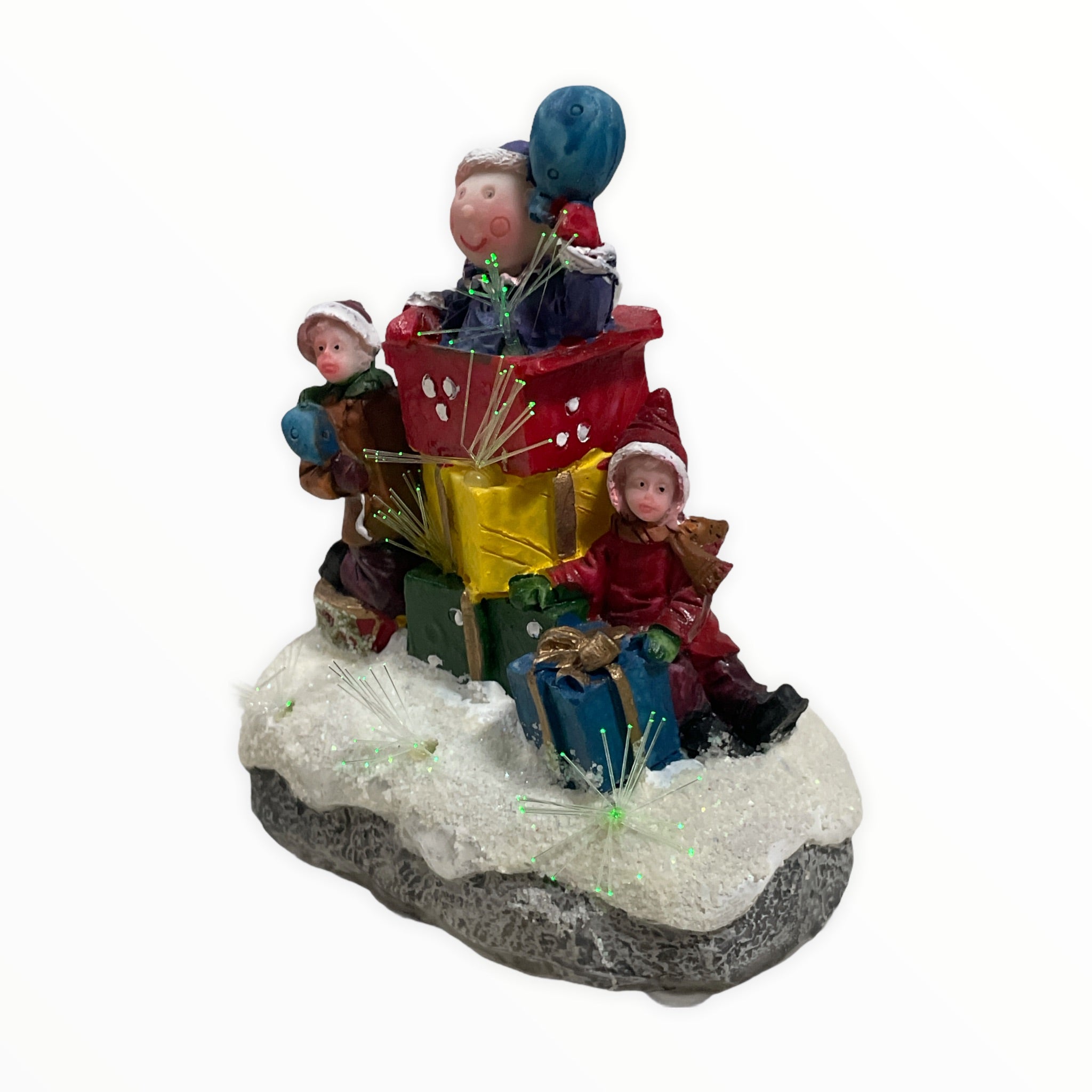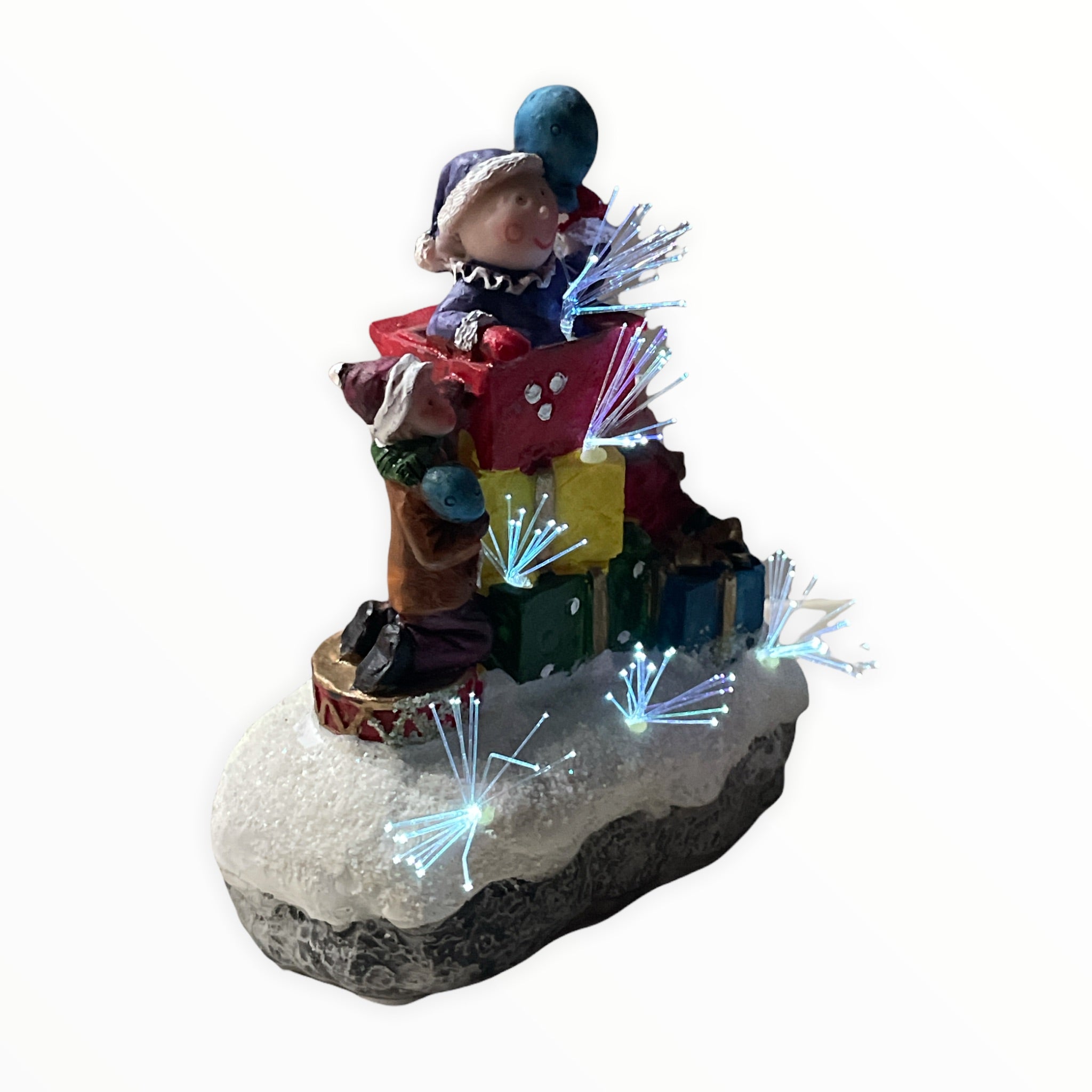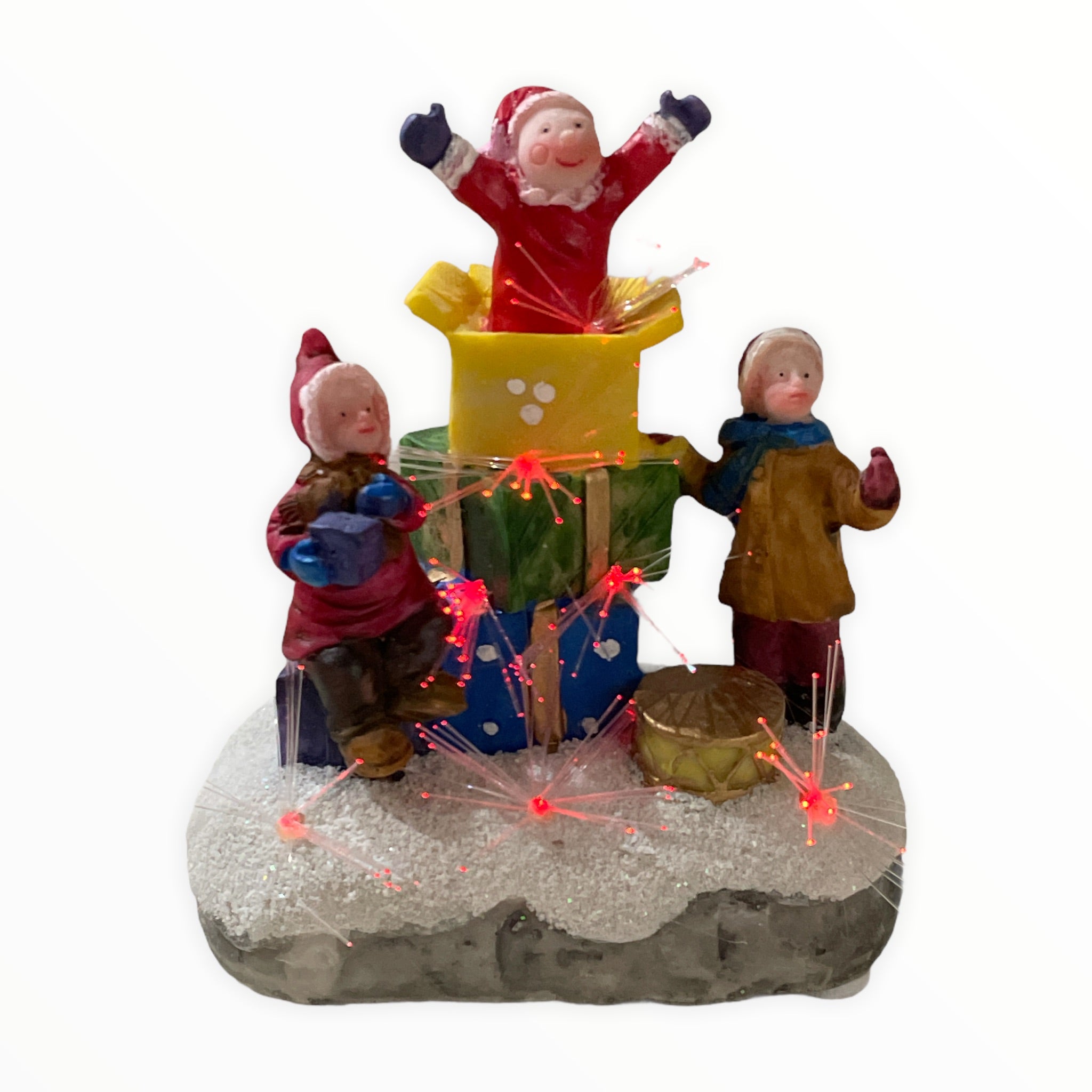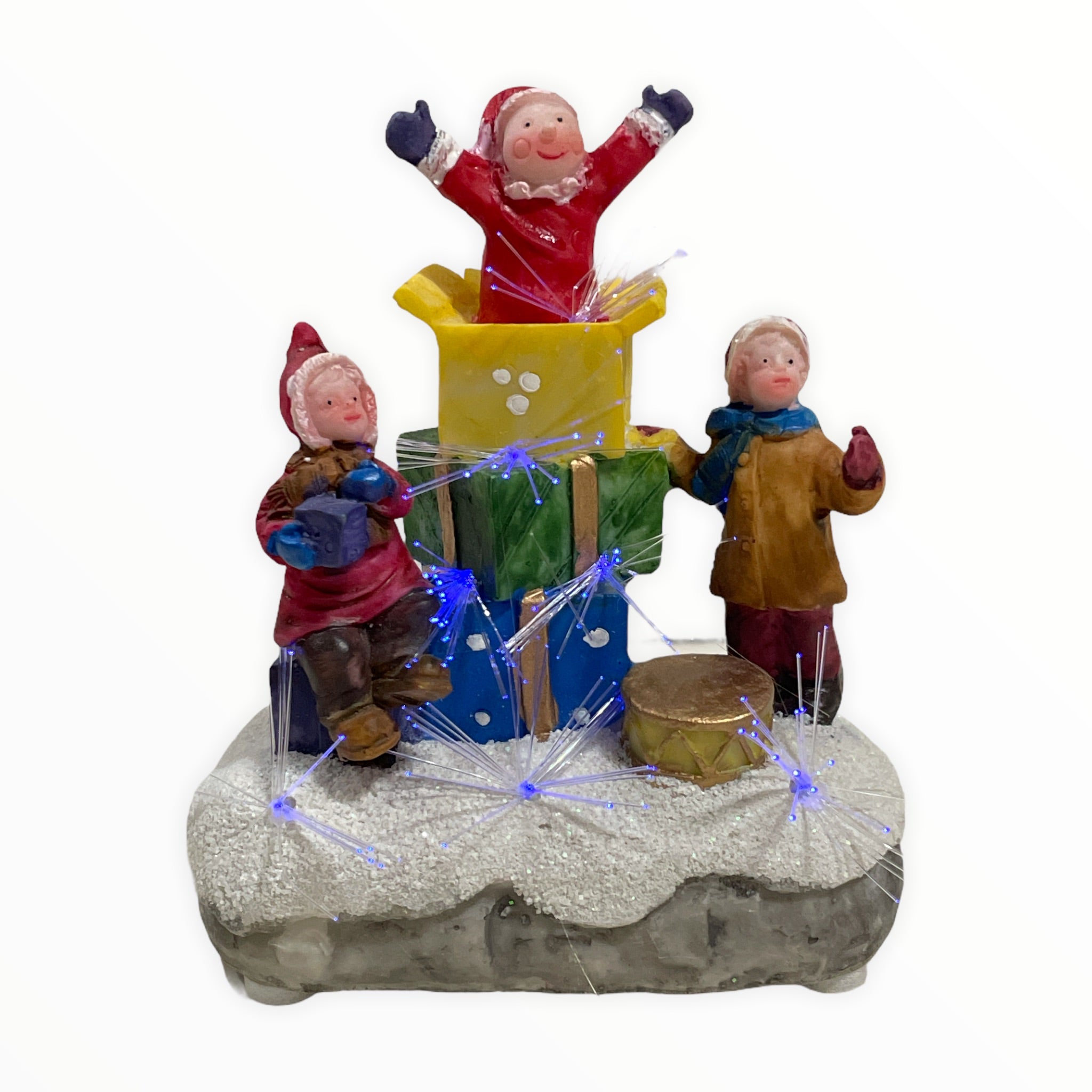 Figurina este realizată din polirășină vopsită și poate prezenta mici imperfecțiuni de turnare sau culoare și funcționează cu 2 baterii AAA.