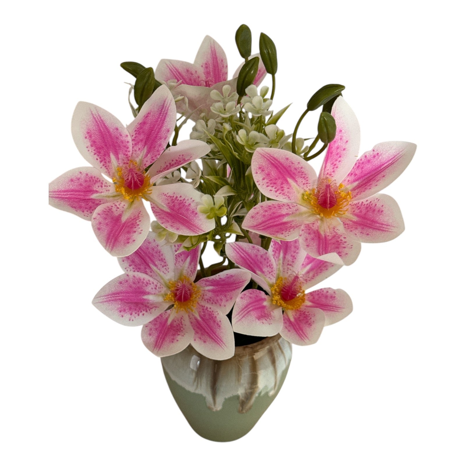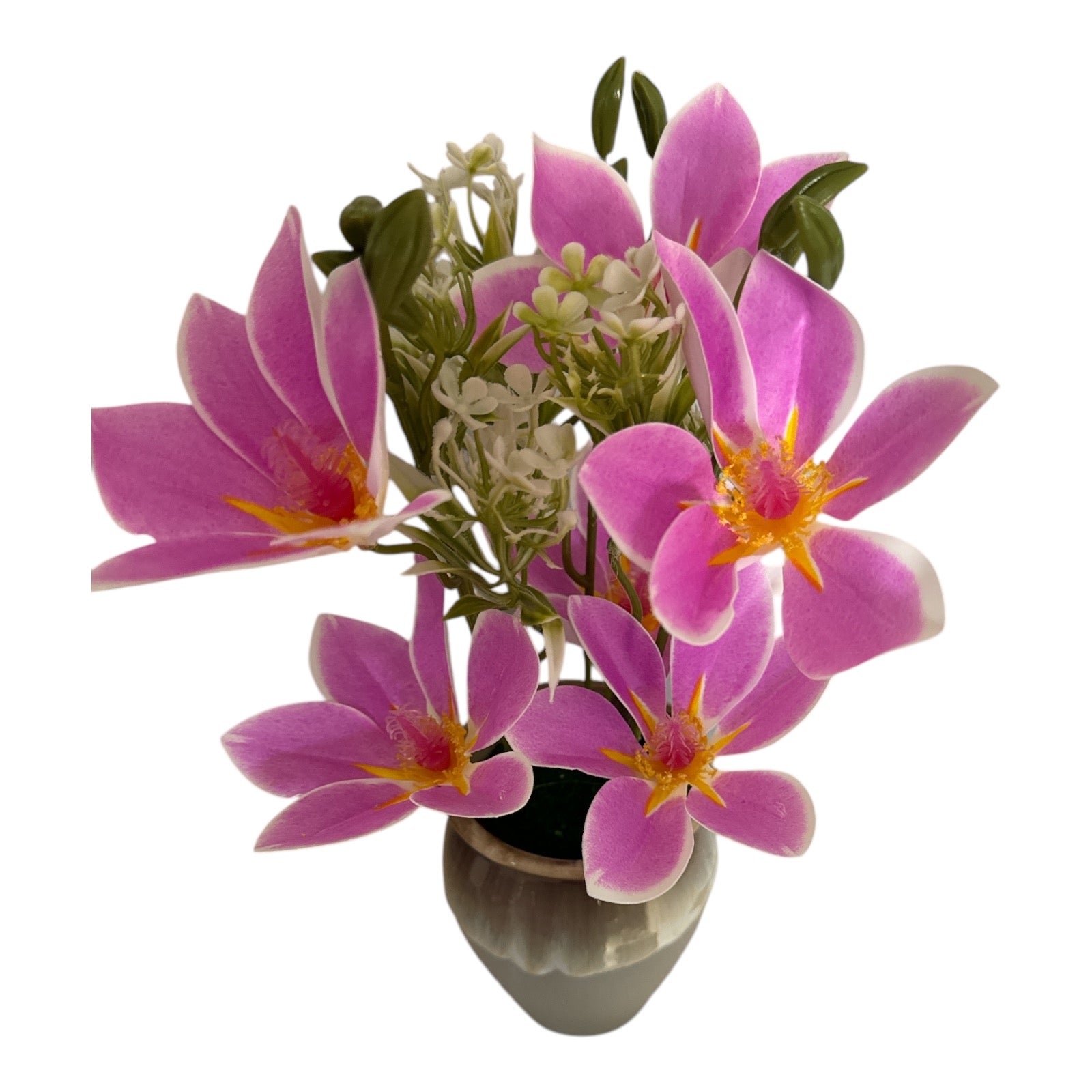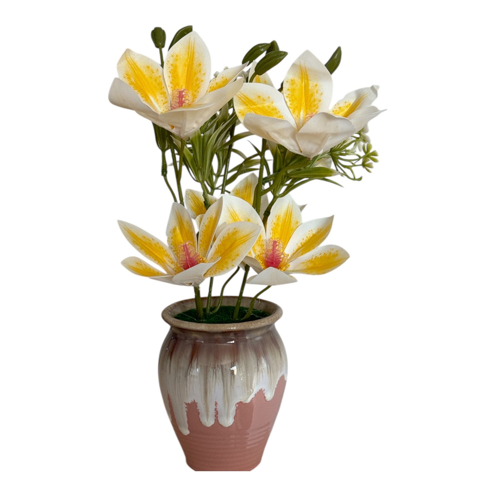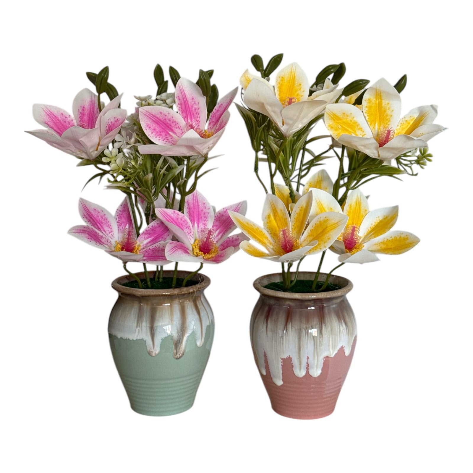 Adaugă un strop de prospețime și culoare în casa ta cu aceste flori artificiale, ce emană eleganță și naturalețe. Fiecare ghiveci este disponibil în nuanțe delicate de roz, alb și galben perfect pentru a completa orice stil de decor.