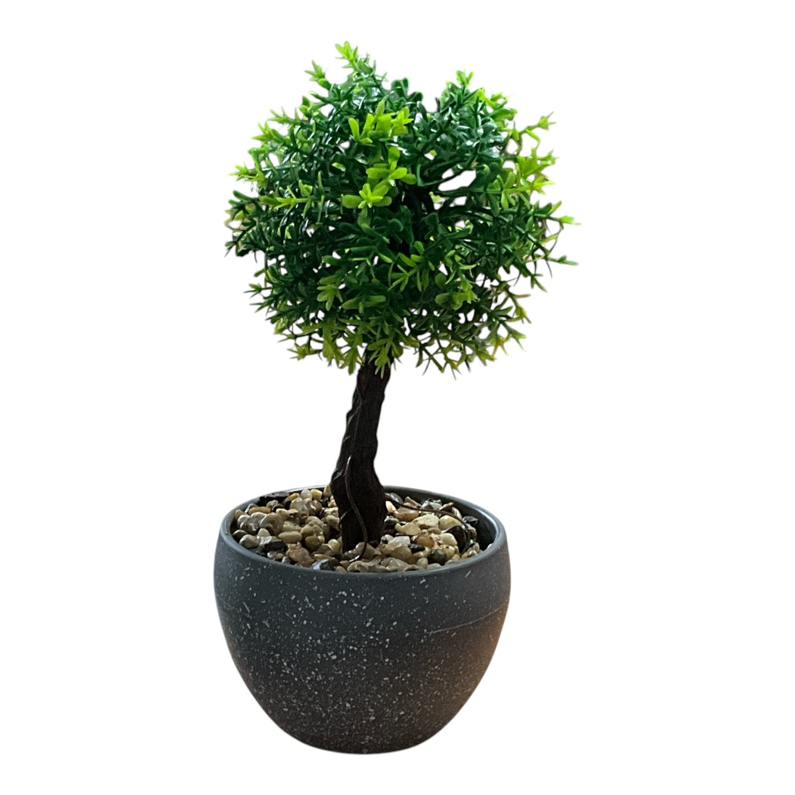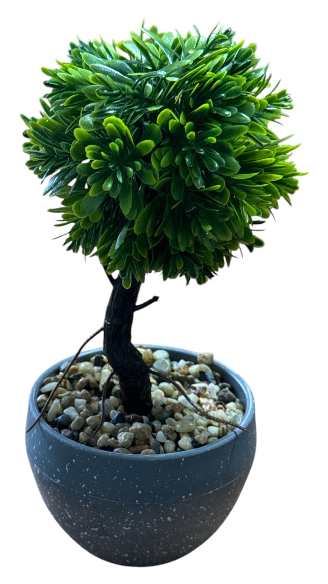Adaugă un strop de eleganță și prospețime în orice spațiu cu acest Bonsai decorativ de interior. Cu frunze verzi luxuriante și detalii realiste, această plantă artificială este perfectă pentru a obține o atmosferă tropicală fără a necesita întreținere. Ghiveciul gri adaugă un contrast modern și se integrează ușor în orice decor.