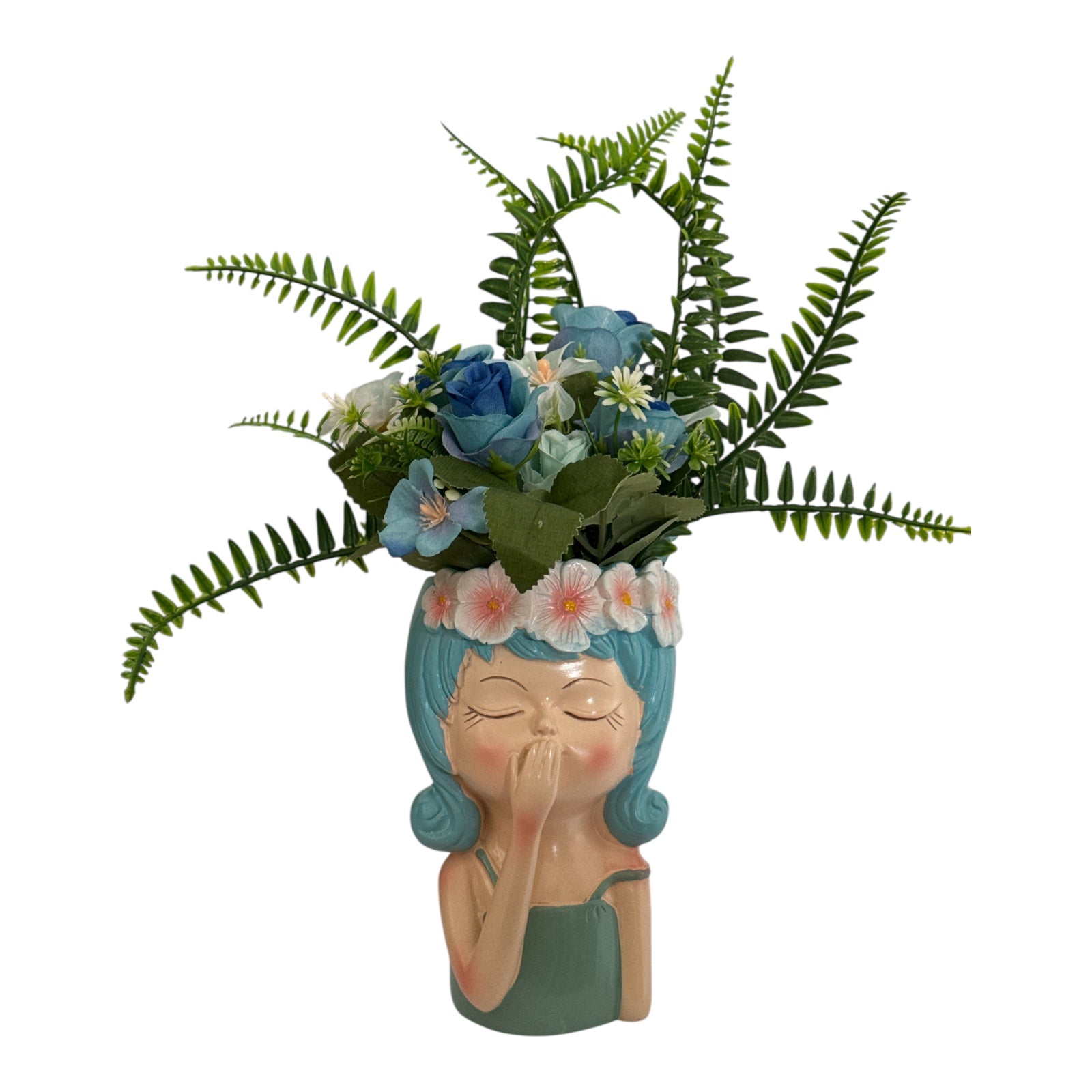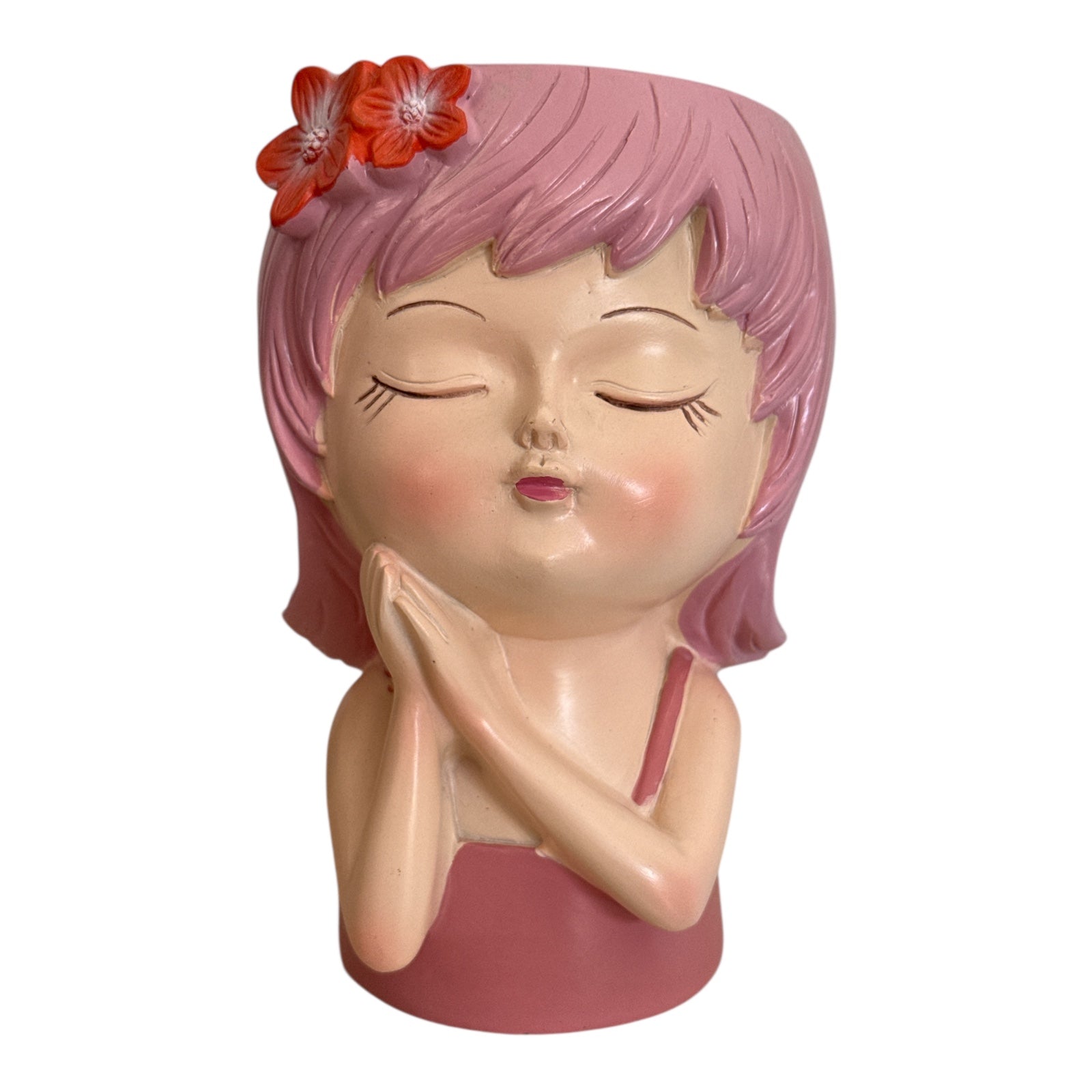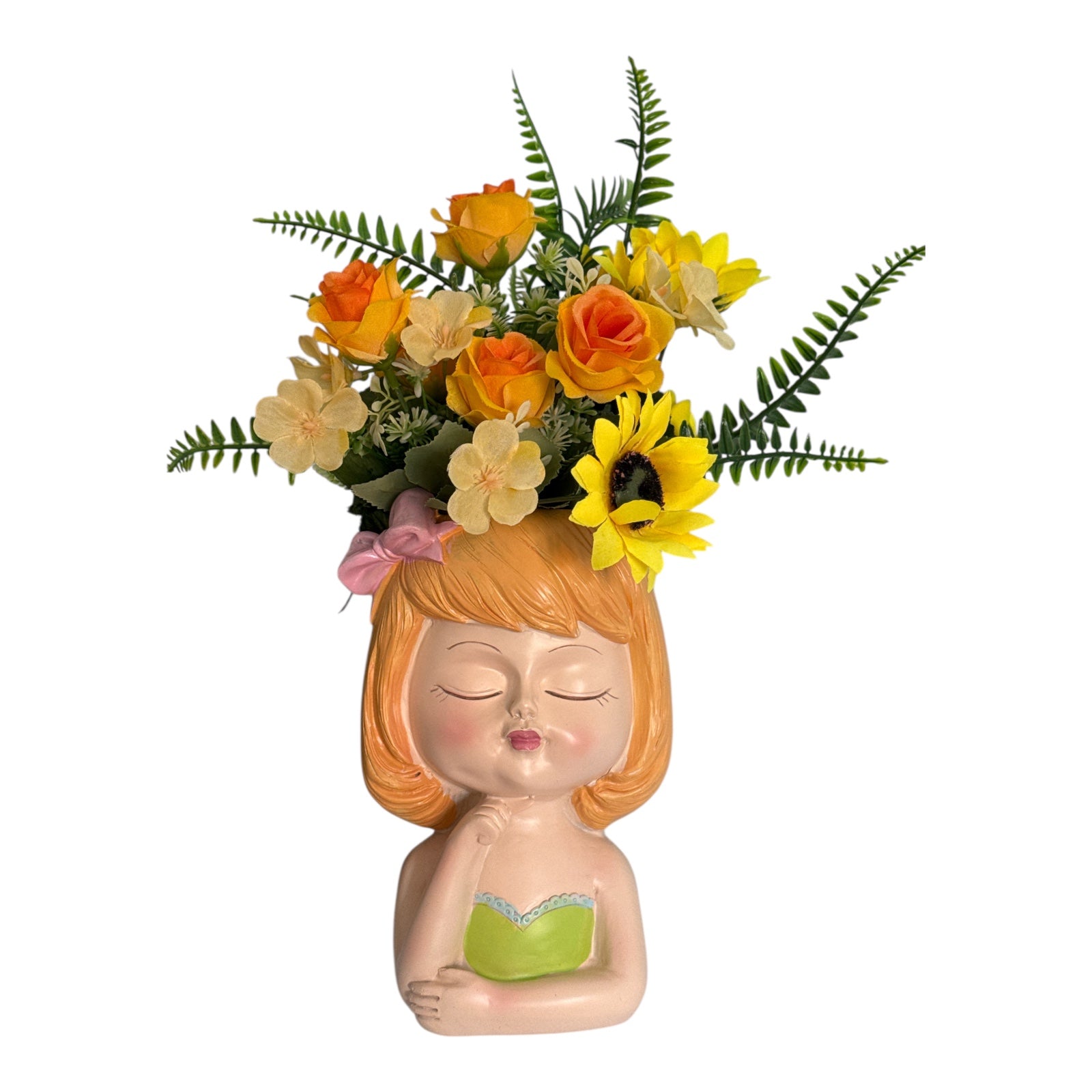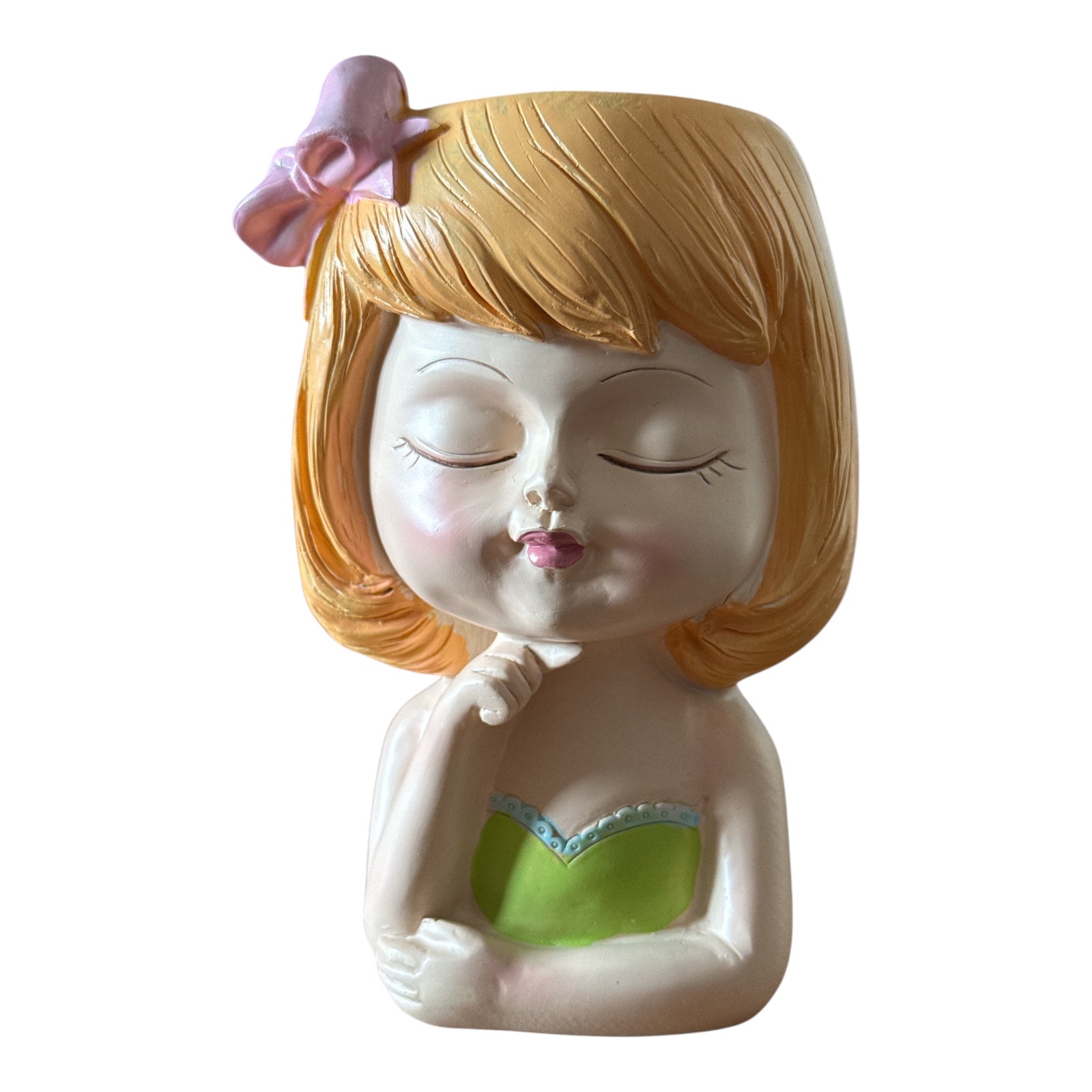 Adaugă un strop de veselie și creativitate decorului tău cu aceste ghivece adorabile, în formă de fetițe cu expresii drăgălașe. Fabricate din polirășină și vopsite în culori pastelate, aceste piese sunt ideale pentru plante suculente, cactuși sau flori artificiale.