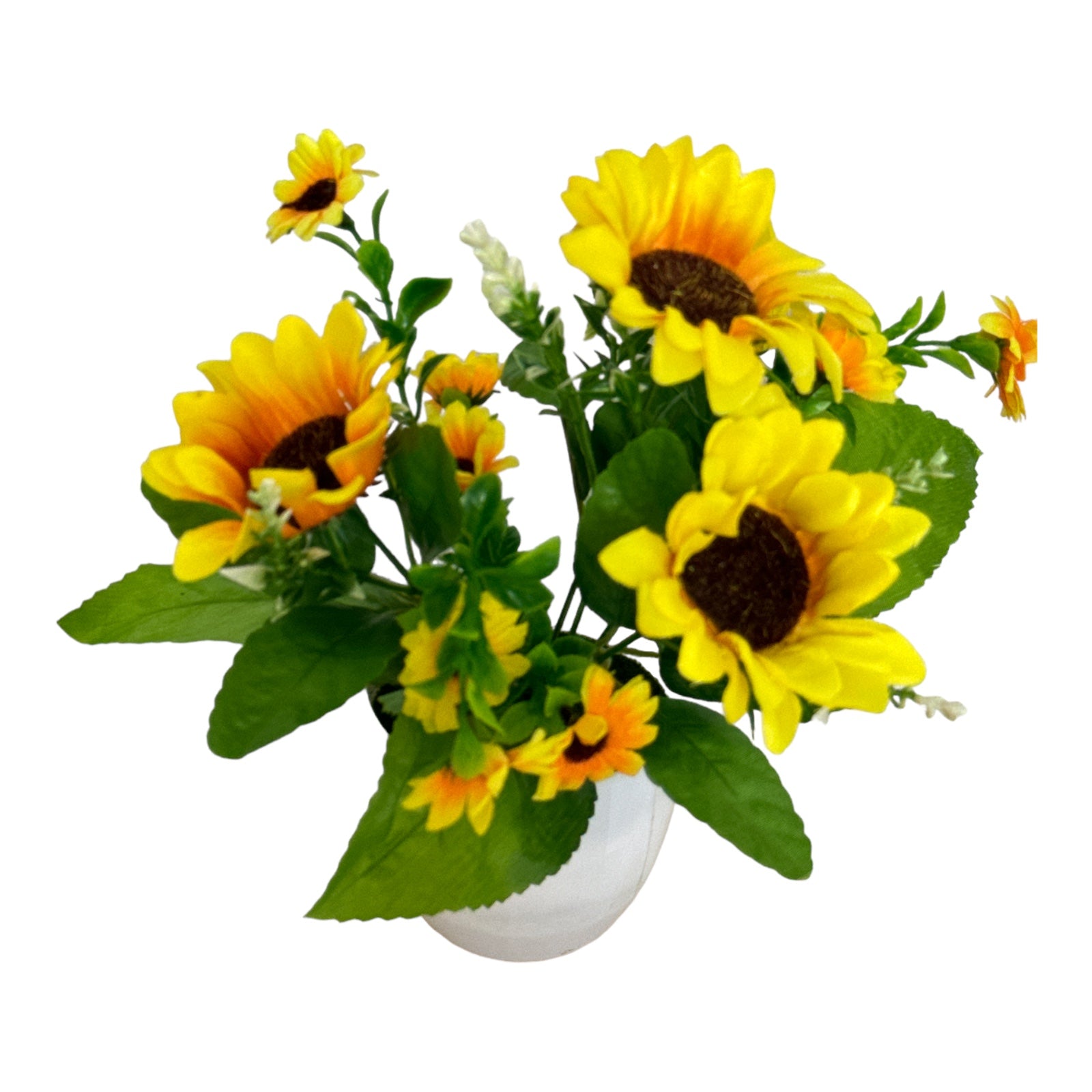 Este un produs elegant si rafinat care se îmbină perfect cu ambientul. Florile sunt artificiale din material textil și plastic.Ghiveciul este din material plastic.