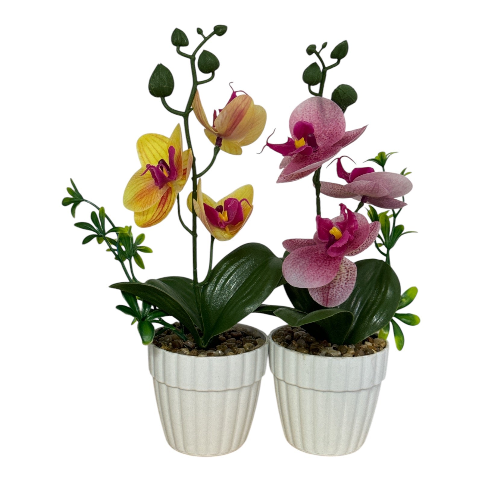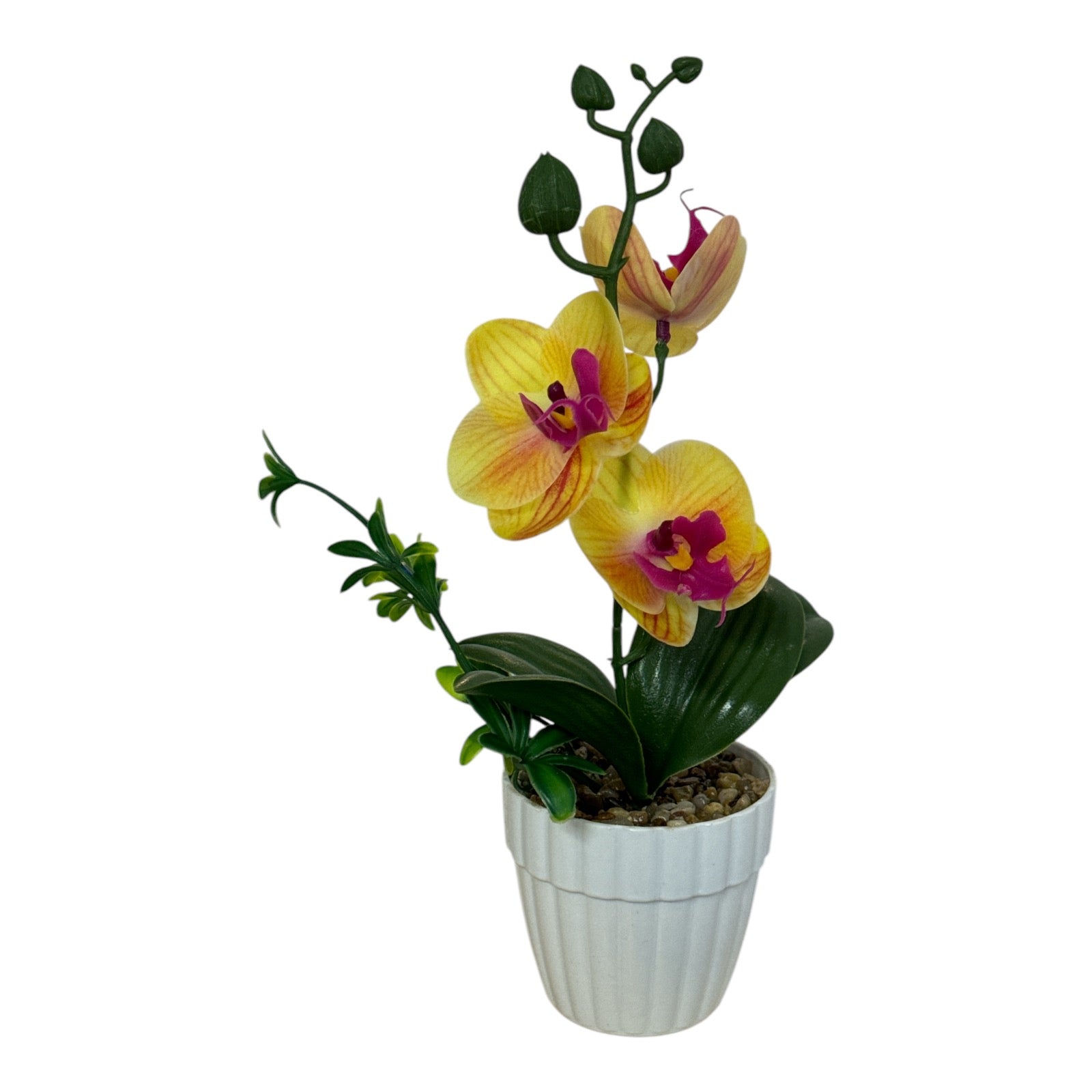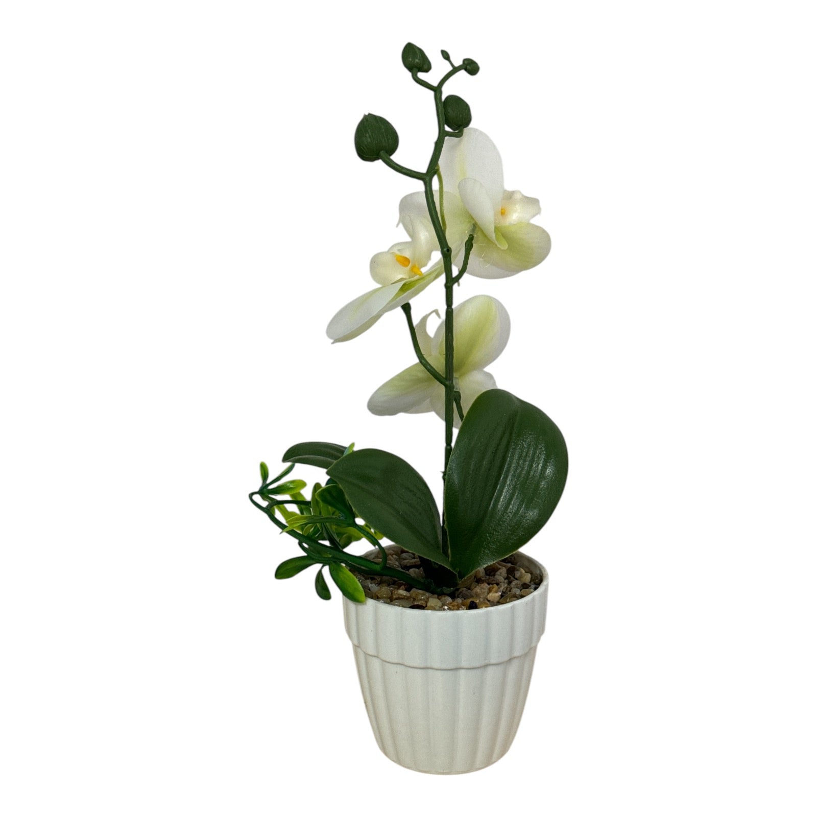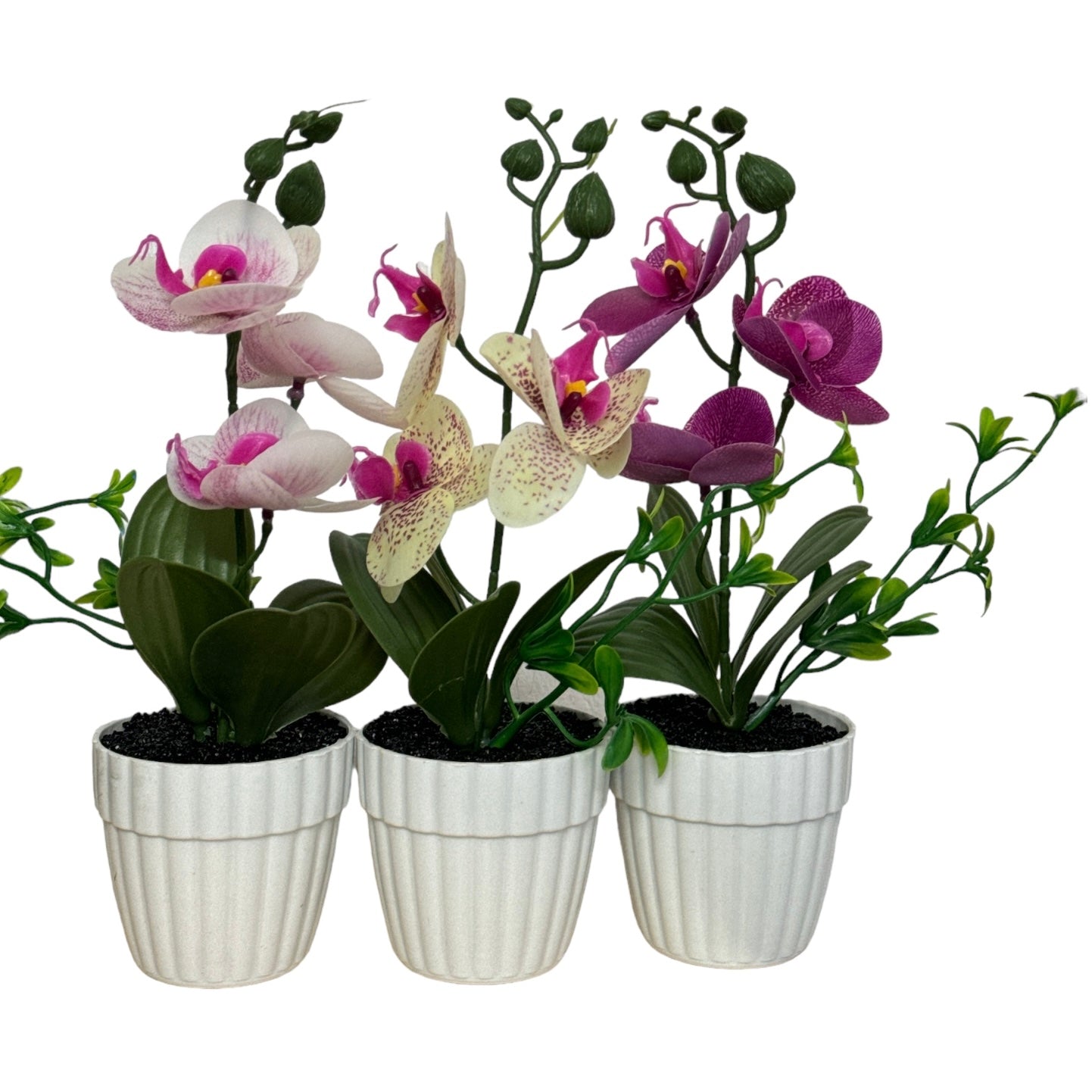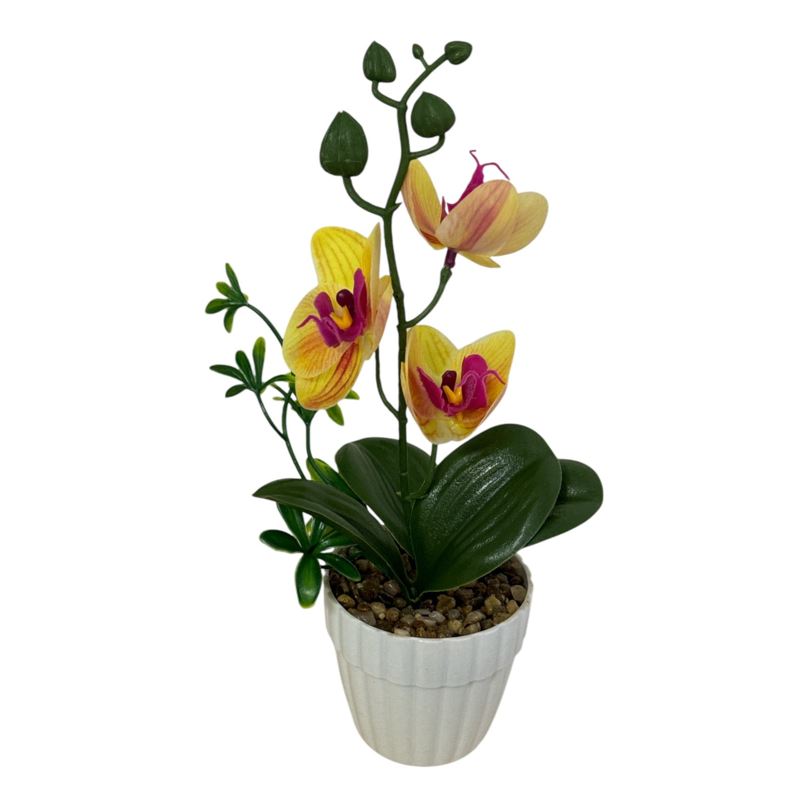 Este un produs elegant si rafinat care se îmbină perfect cu ambientul. Florile sunt artificiale din material textil și plastic. Ghiveciul este din material plastic.