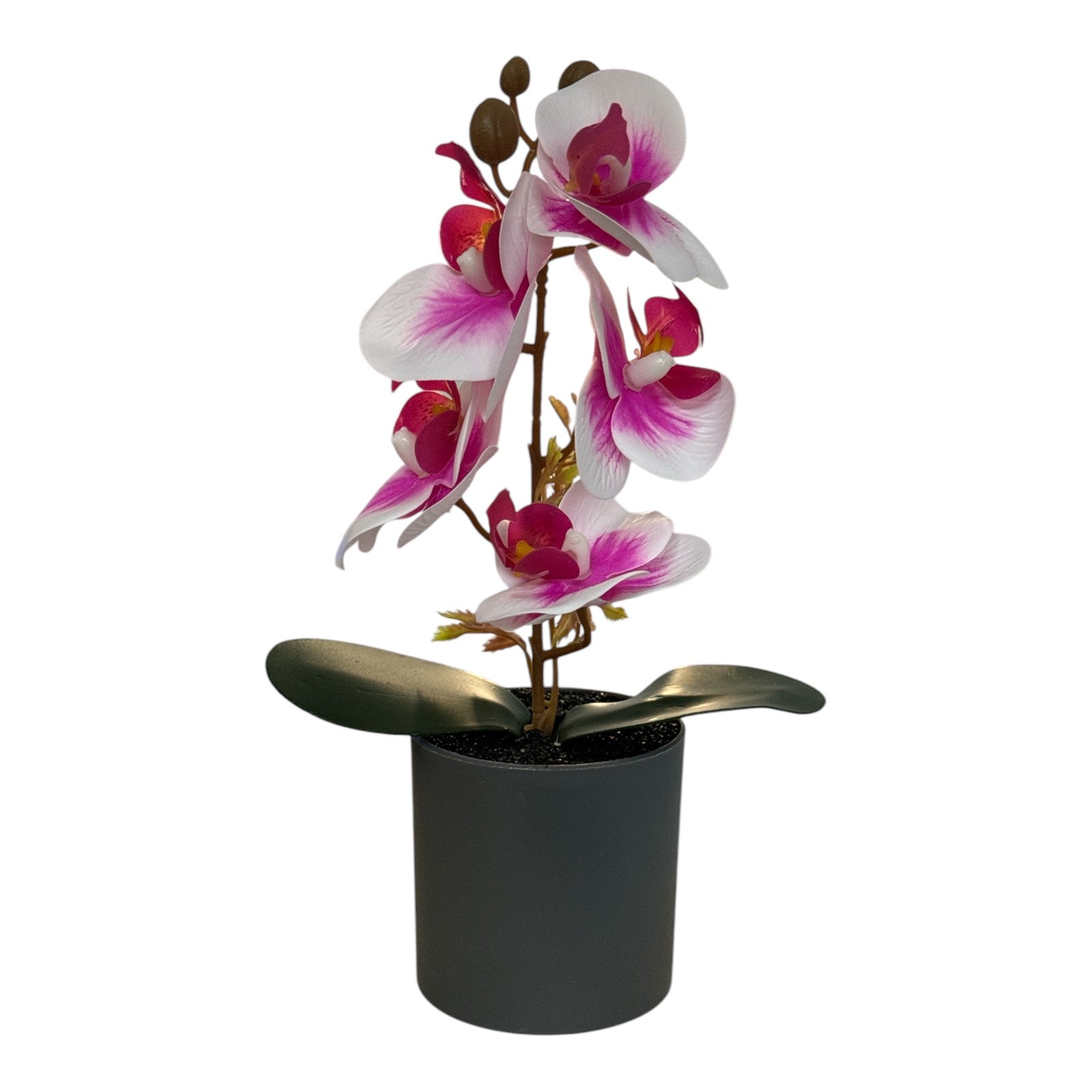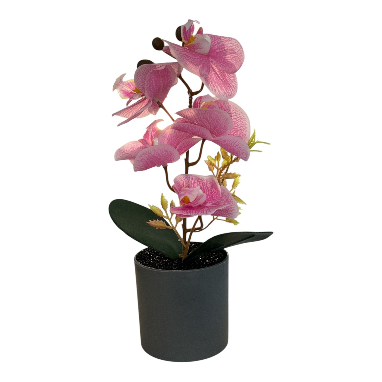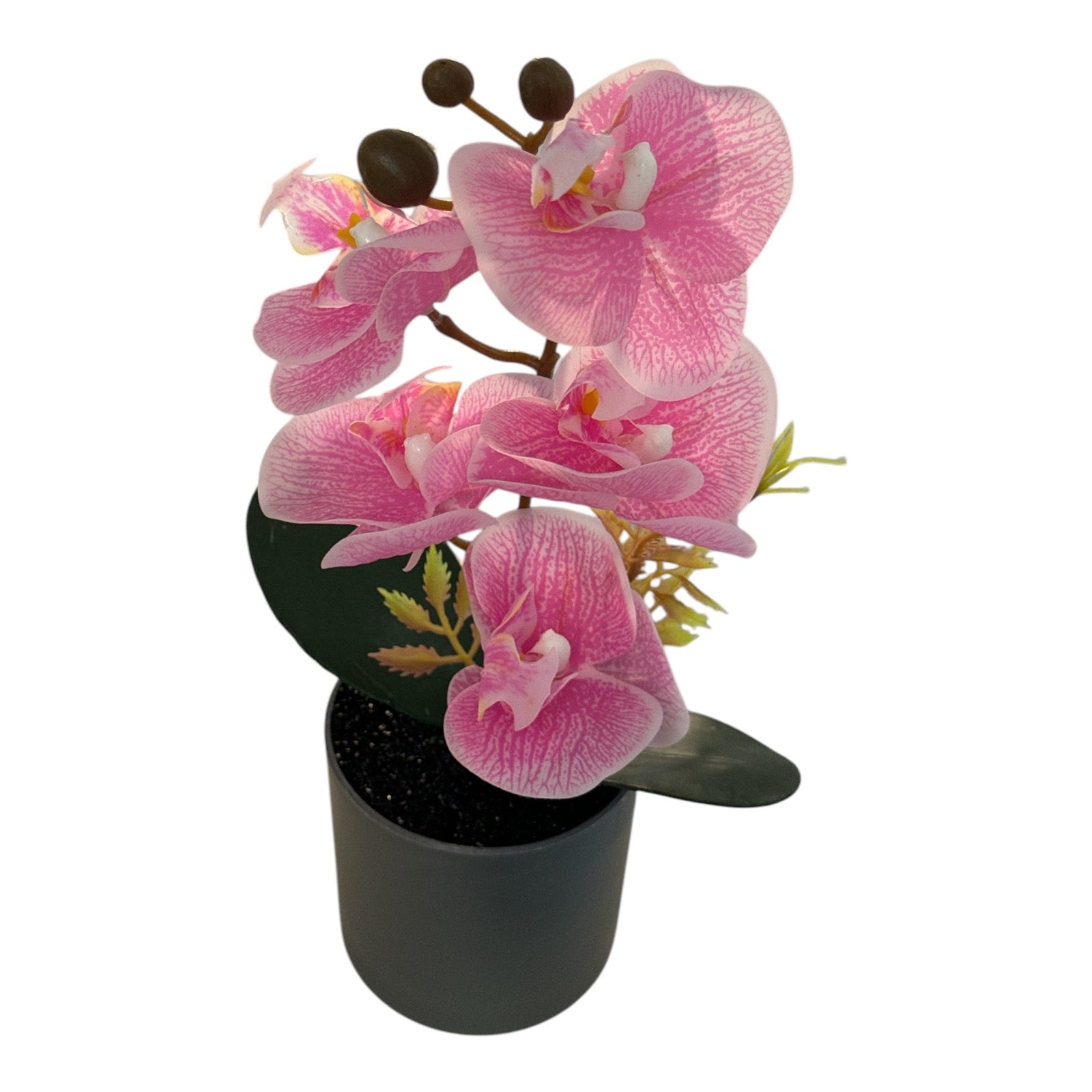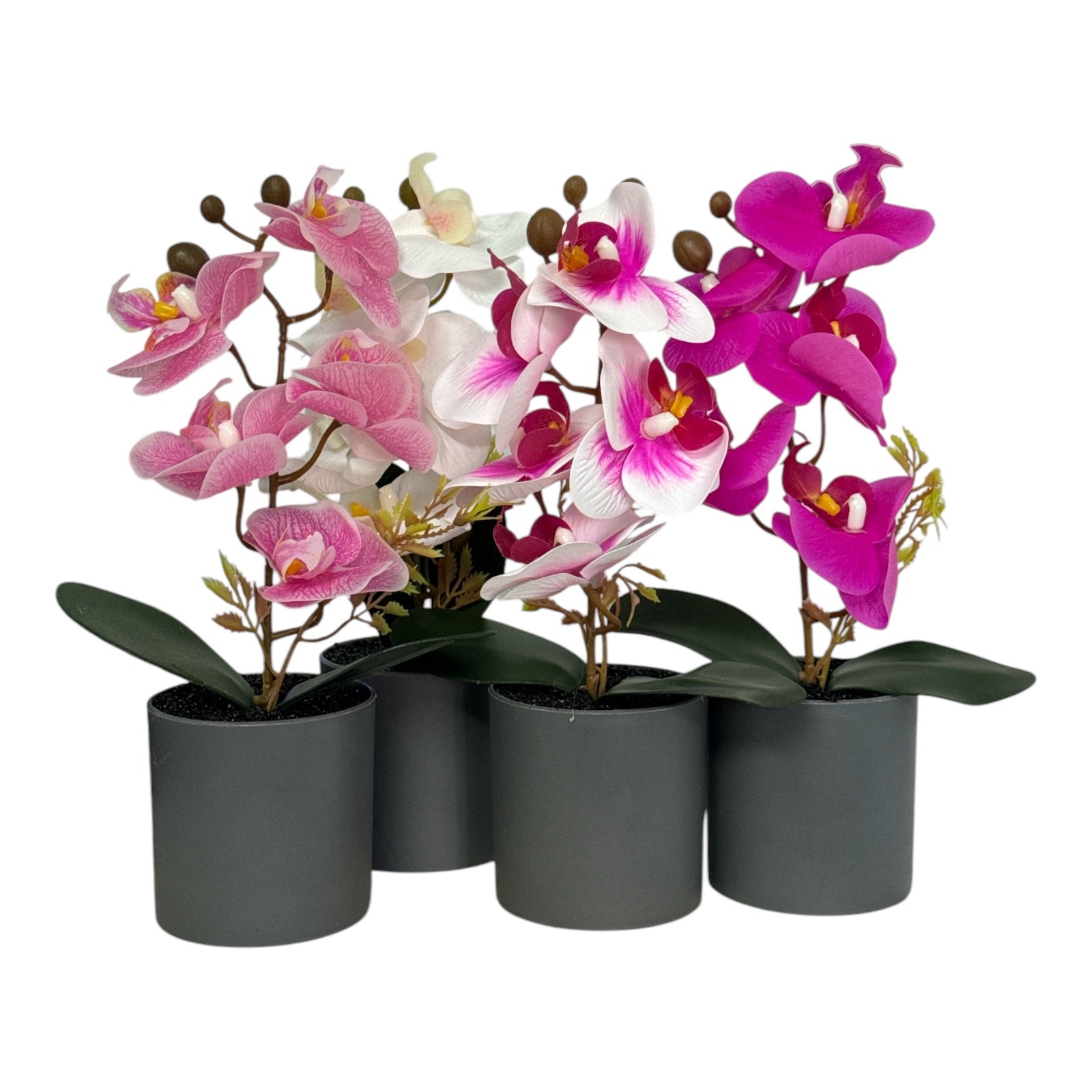 Adaugă un strop de eleganță și rafinament oricărui spațiu cu aceste orhidee artificiale de înaltă calitate! Fiecare plantă este amplasată într-un ghiveci gri modern, perfect pentru a completa orice decor interior, de la clasic la contemporan.
