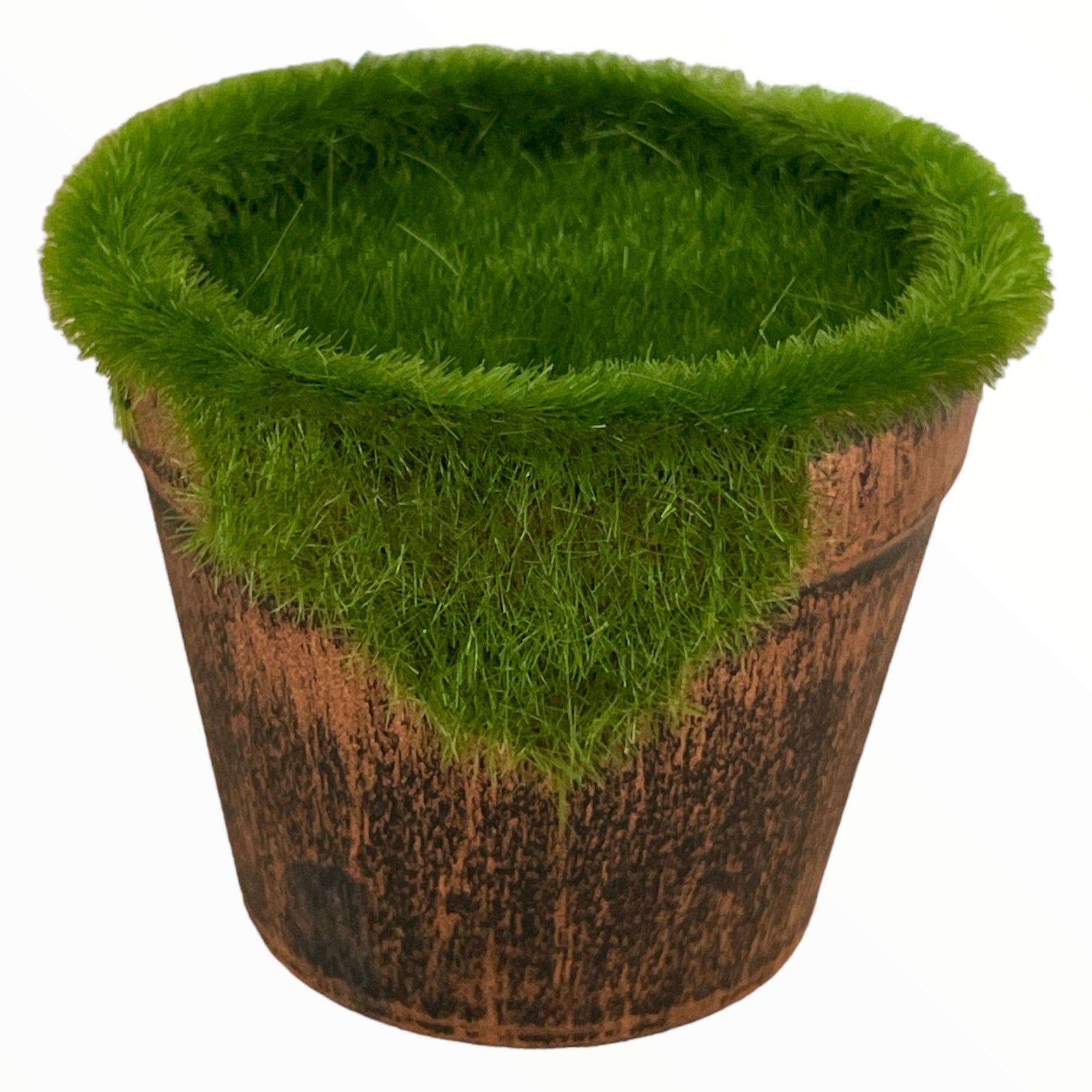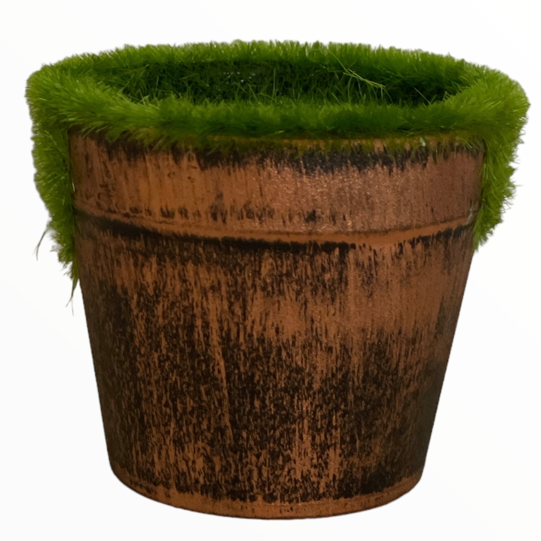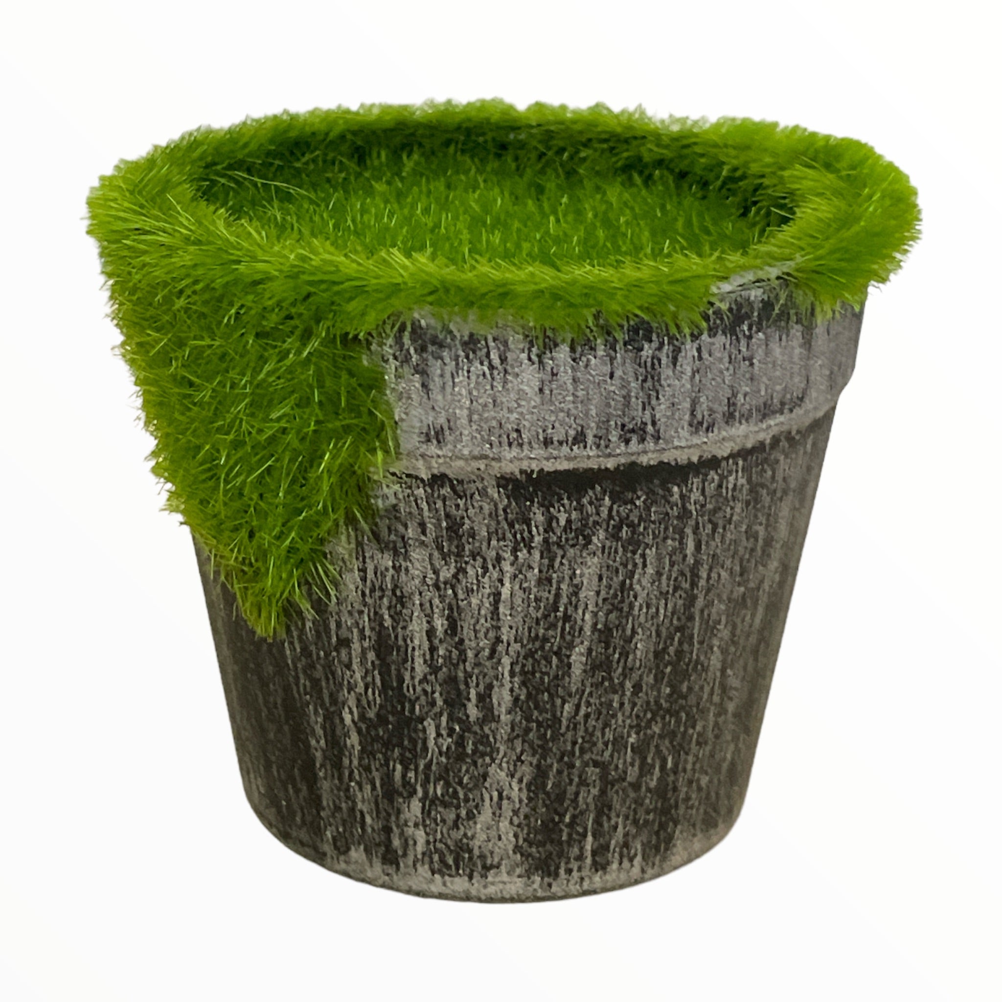 Aceste ghivece rotunde au un design modern cu un detaliu realist de mușchi la margine, oferind un aspect natural .