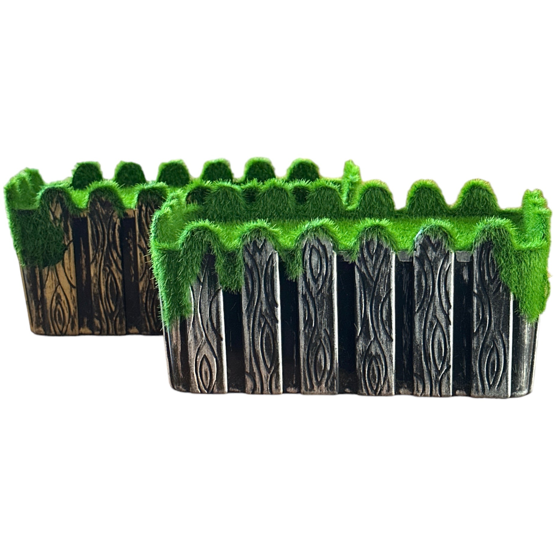Aceste ghivece pătrate au un design inspirat de gard rustic cu un detaliu realist de mușchi la margine, oferind un aspect natural cu efect de lemn îmbătrânit Sunt perfecte pentru a adăuga un strop de natură în orice încăpere.