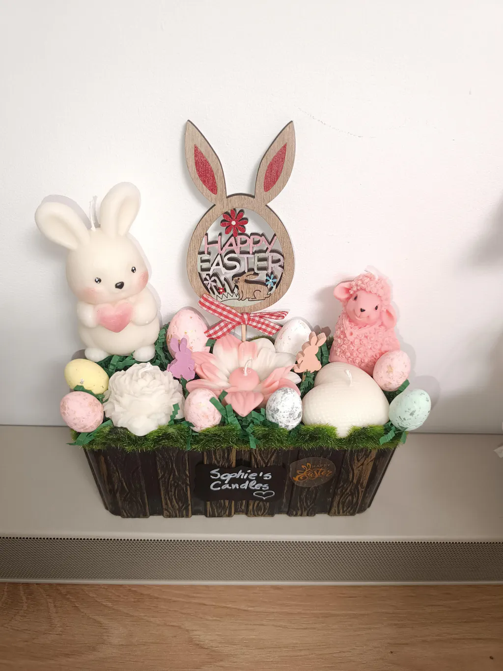 Ghiveciul este fabricat din polirășină vopsită , are în interior polistiren acoperit cu mușchi artificial verde în care puteți planta flori artificiale diverse și veți obține astfel un aranjament floral unic.
