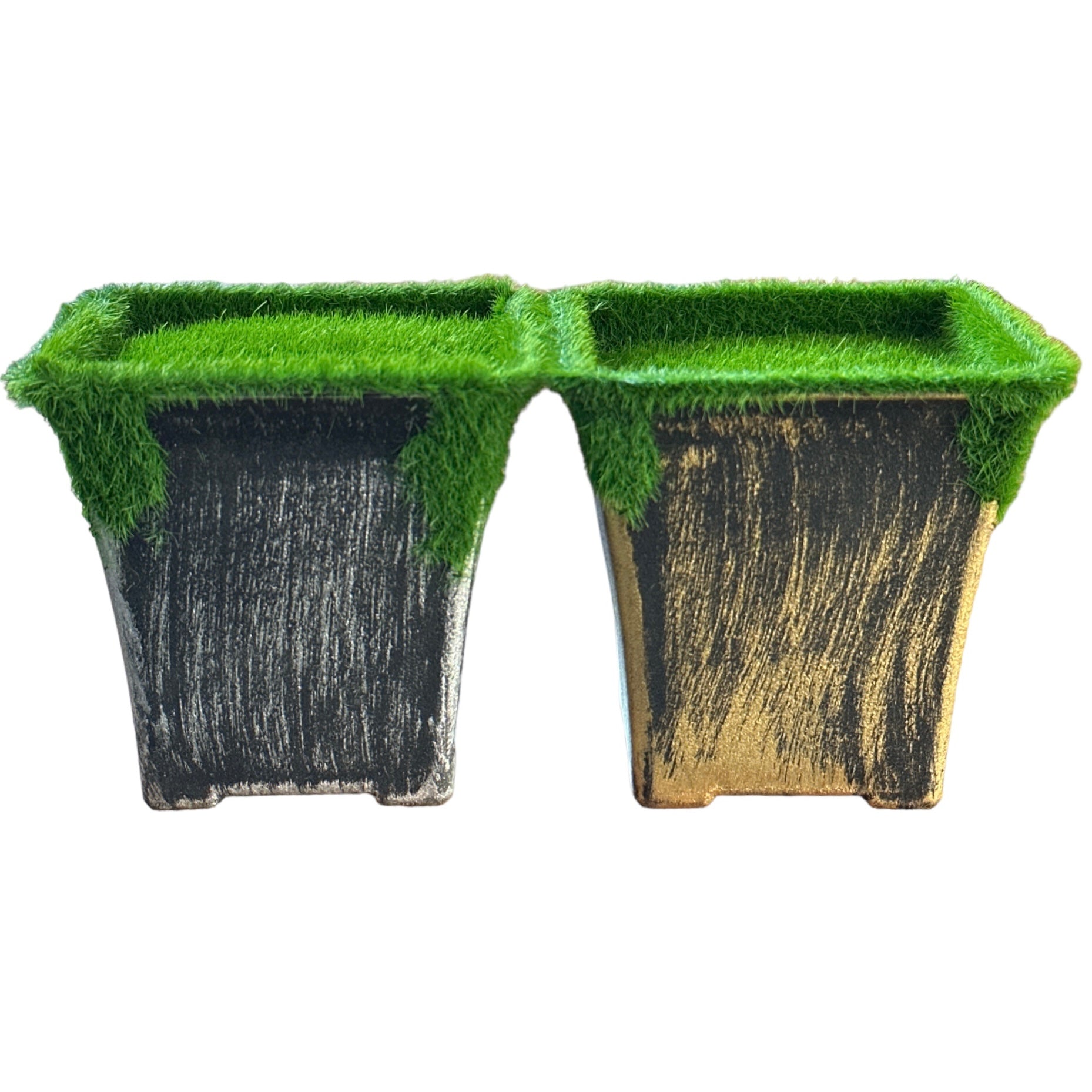 Aceste ghivece pătrate au un design modern cu un detaliu realist de mușchi la margine, oferind un aspect natural .