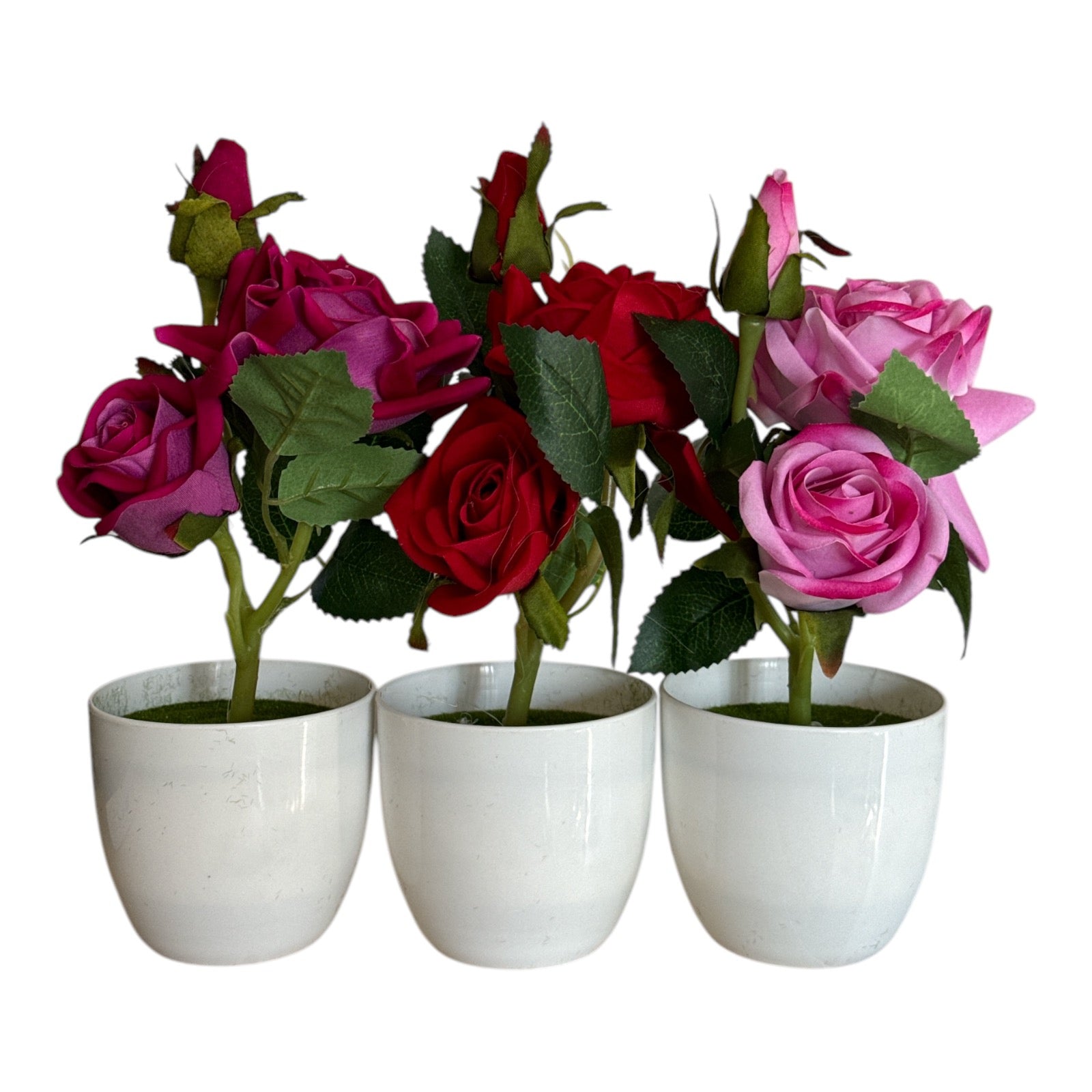 • Ghiveci Elegant: Fiecare trandafir este așezat într-un ghiveci alb, cu design clasic și rafinat.