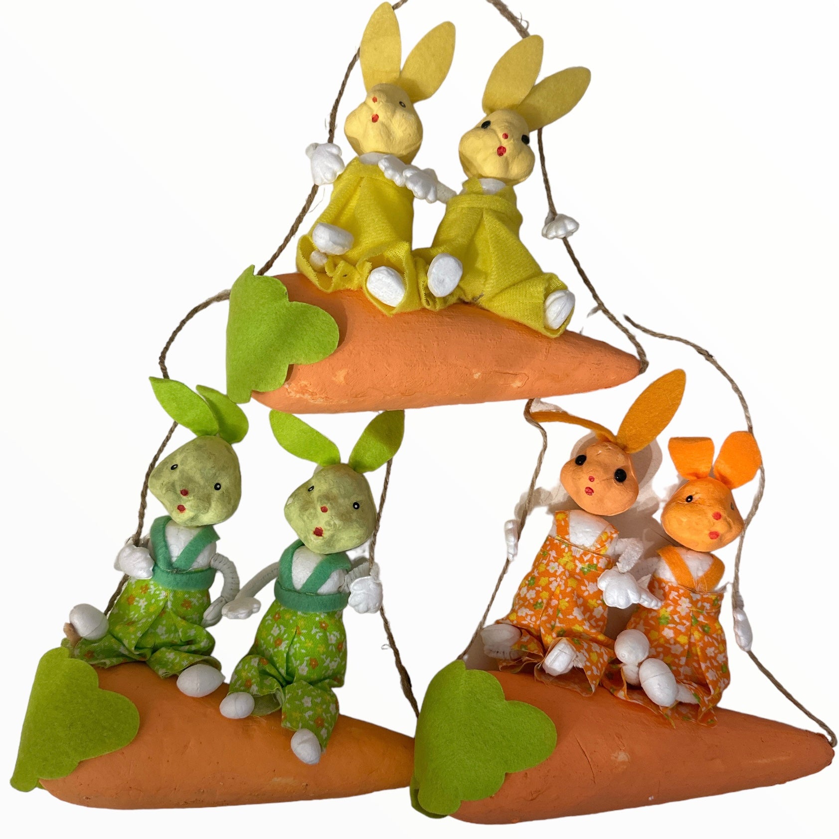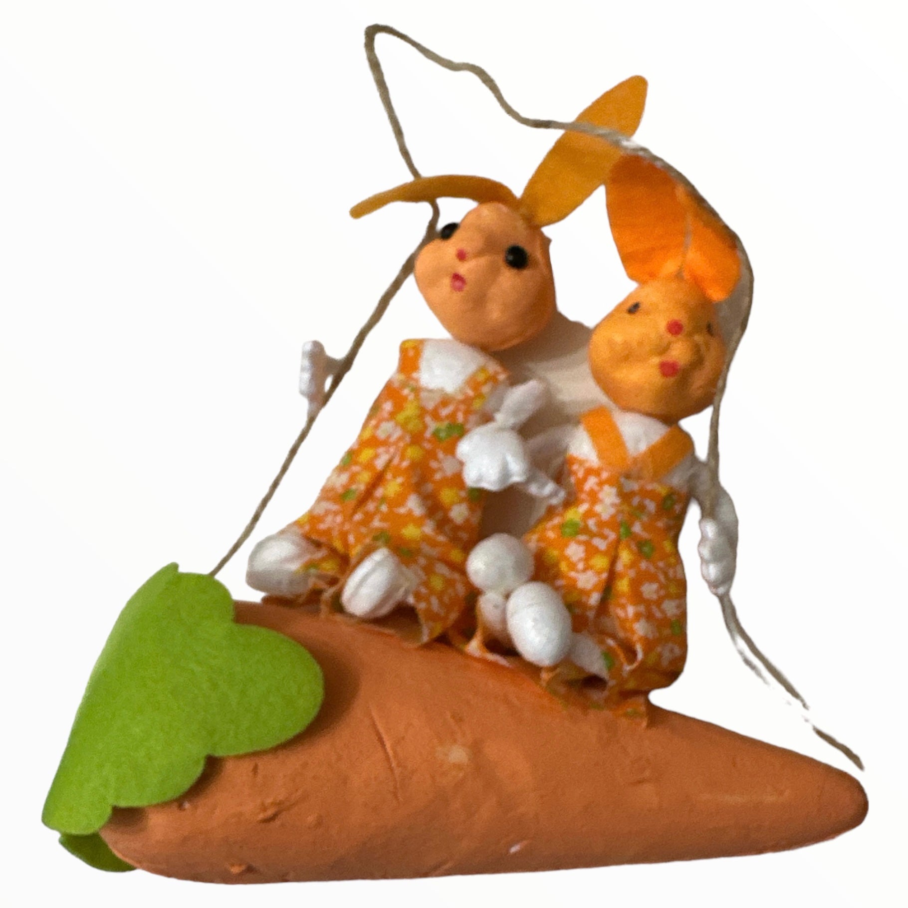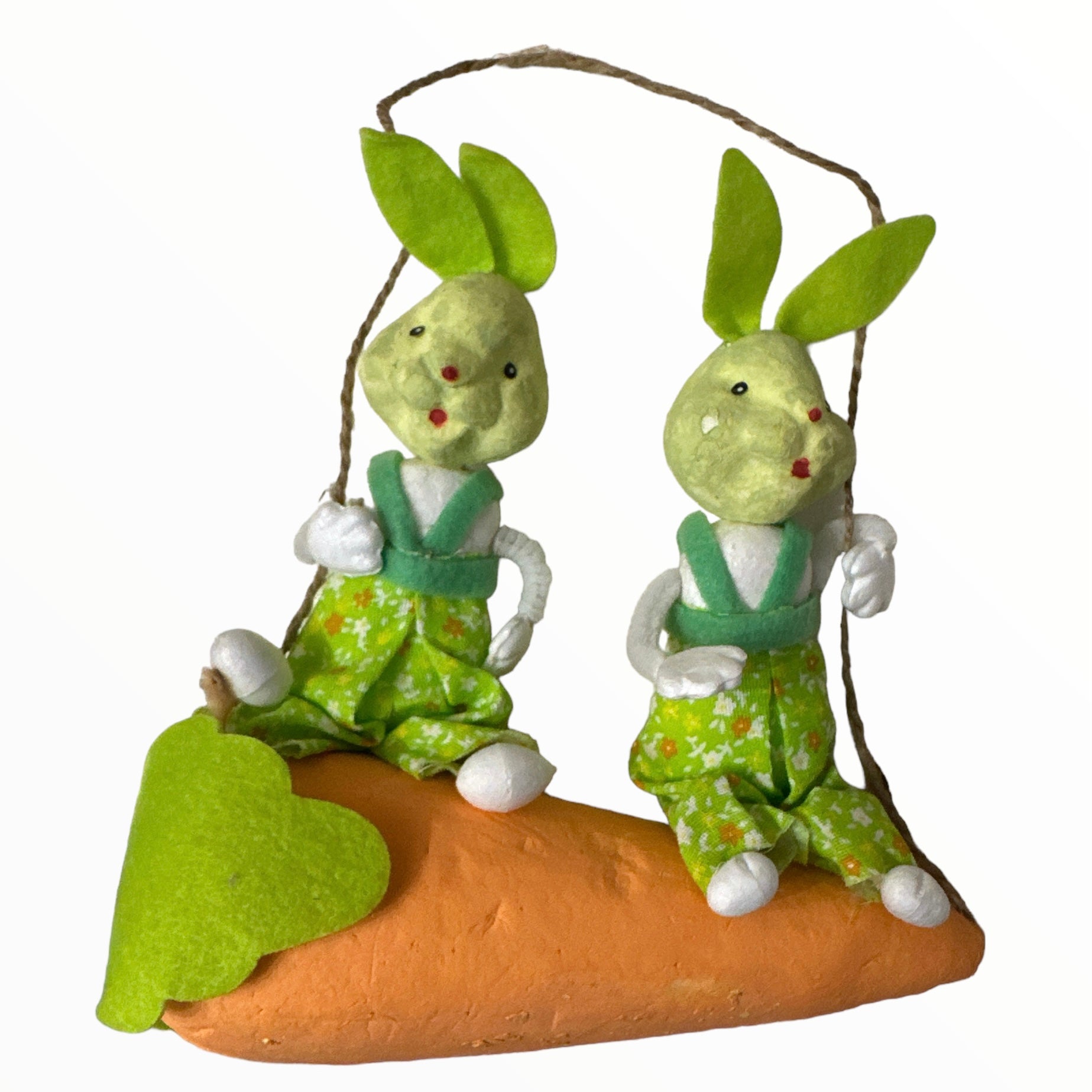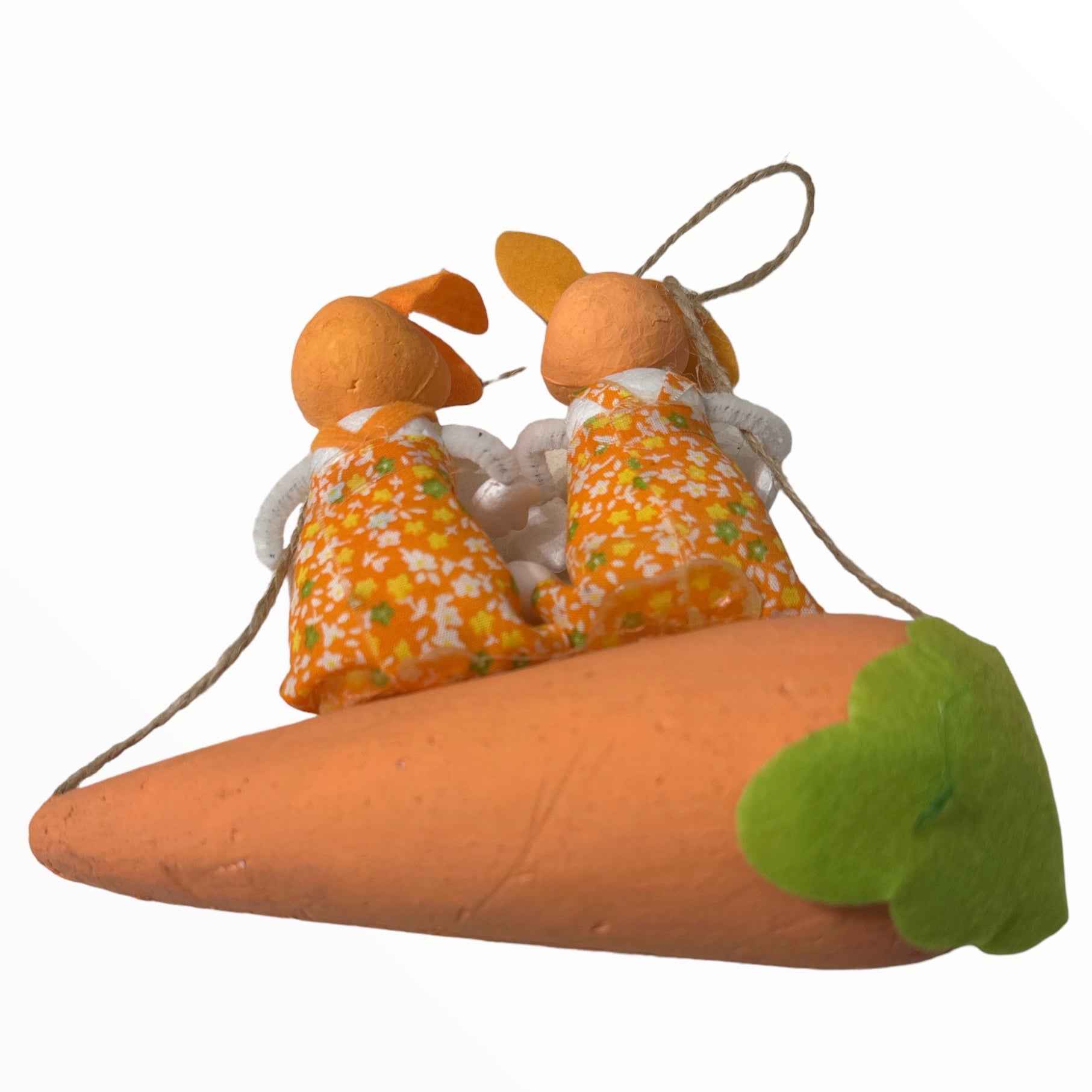 Iepurii și morcovul sunt fabricați din polistiren vopsit și pot suferi mici imperfecțiuni de presare și culoare.