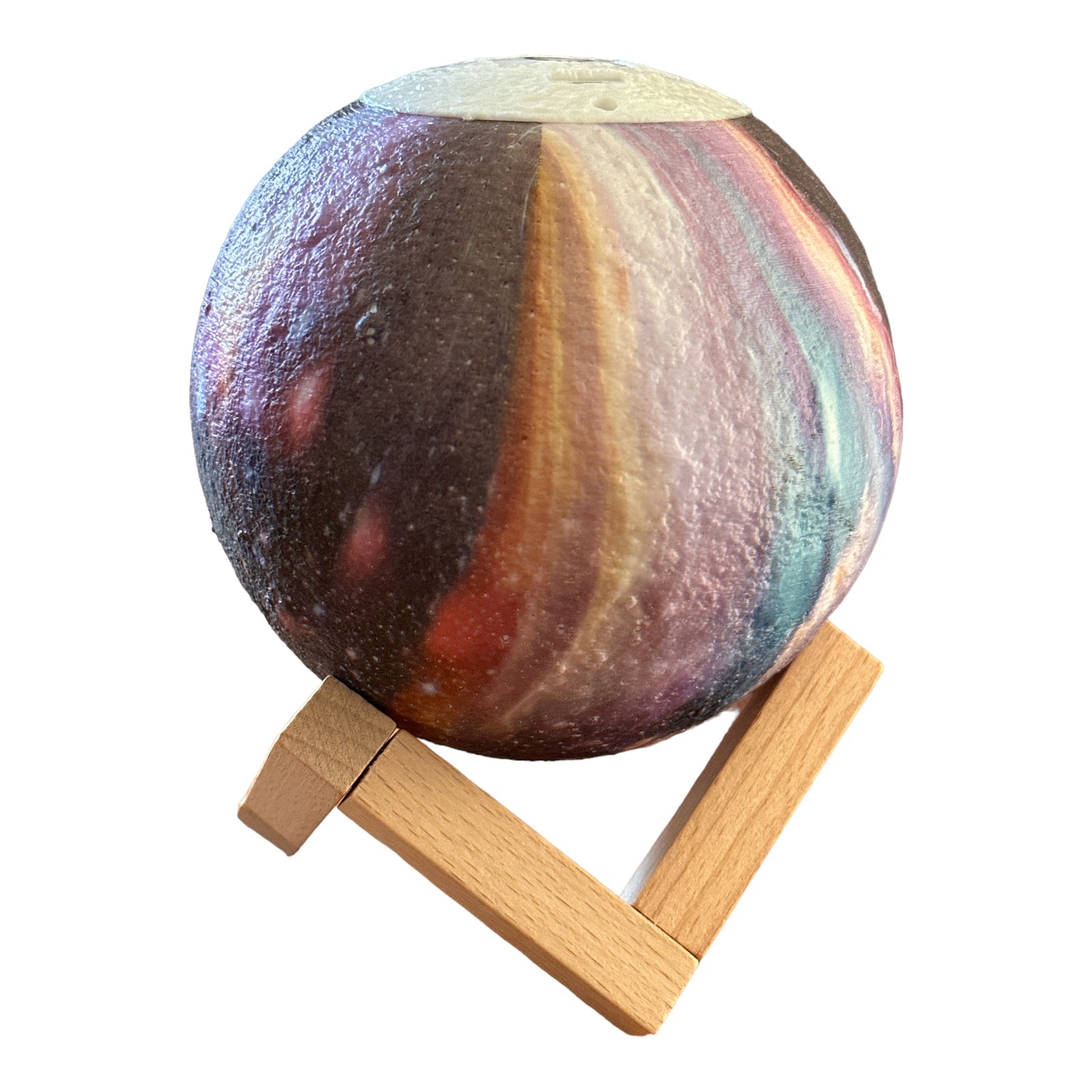 Moon Lamp este realizată prin tehnologie 3D obținându-se astfel prin straturi aspectul real al lunii.