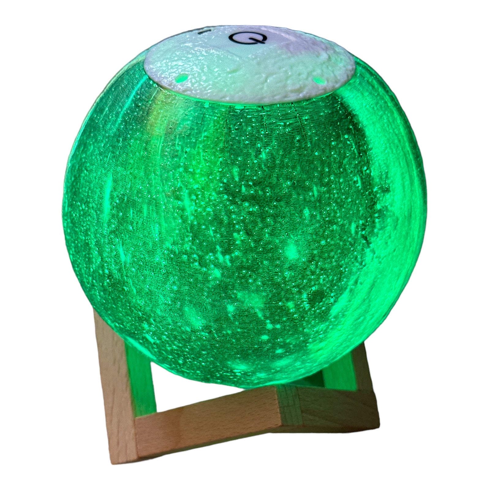 Luna are diametrul de 11 cm si este iluminată cu LED. Lampa este prevăzută cu 4 culori diferite de lumina: alb cald , roșu , verde și albastru.