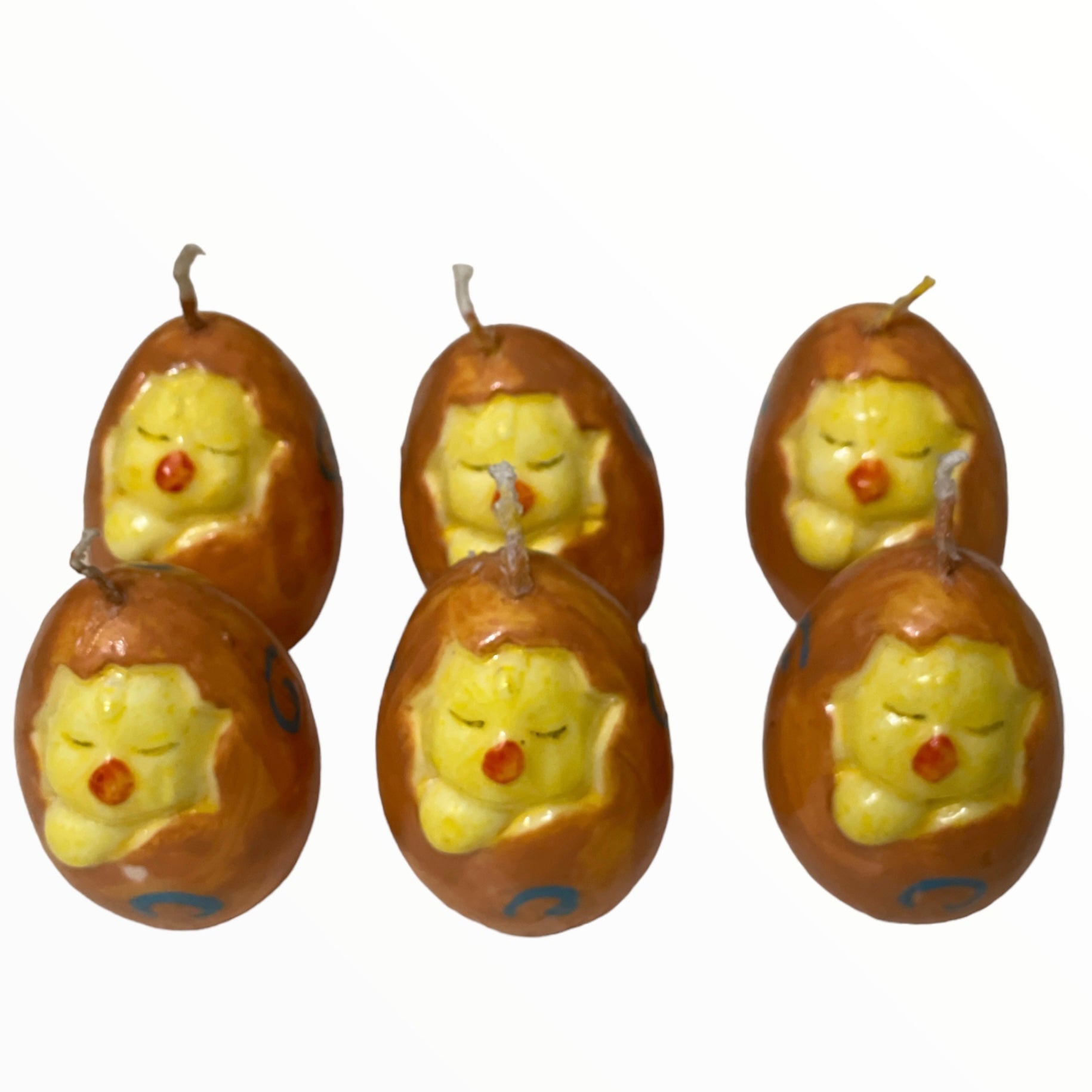 Setul de 6 de lumânări din ceară, în formă de Ou cu pui este ideal pentru mesele festive de Paști, dar poate decora cu succes si mesele din cluburi și restaurante din perioada Sărbătorilor Pascale.