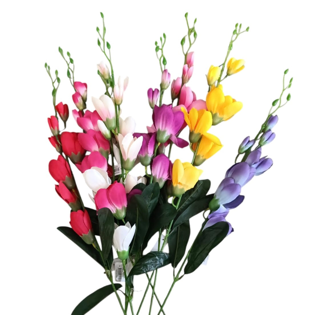 Adaugă o notă vibrantă decorului tău cu acest set de flori artificiale în culori vii și variate. Acest fir de Frezie este perfect pentru a înveseli orice spațiu, fie că este vorba de o masă, un birou sau o vitrină.
