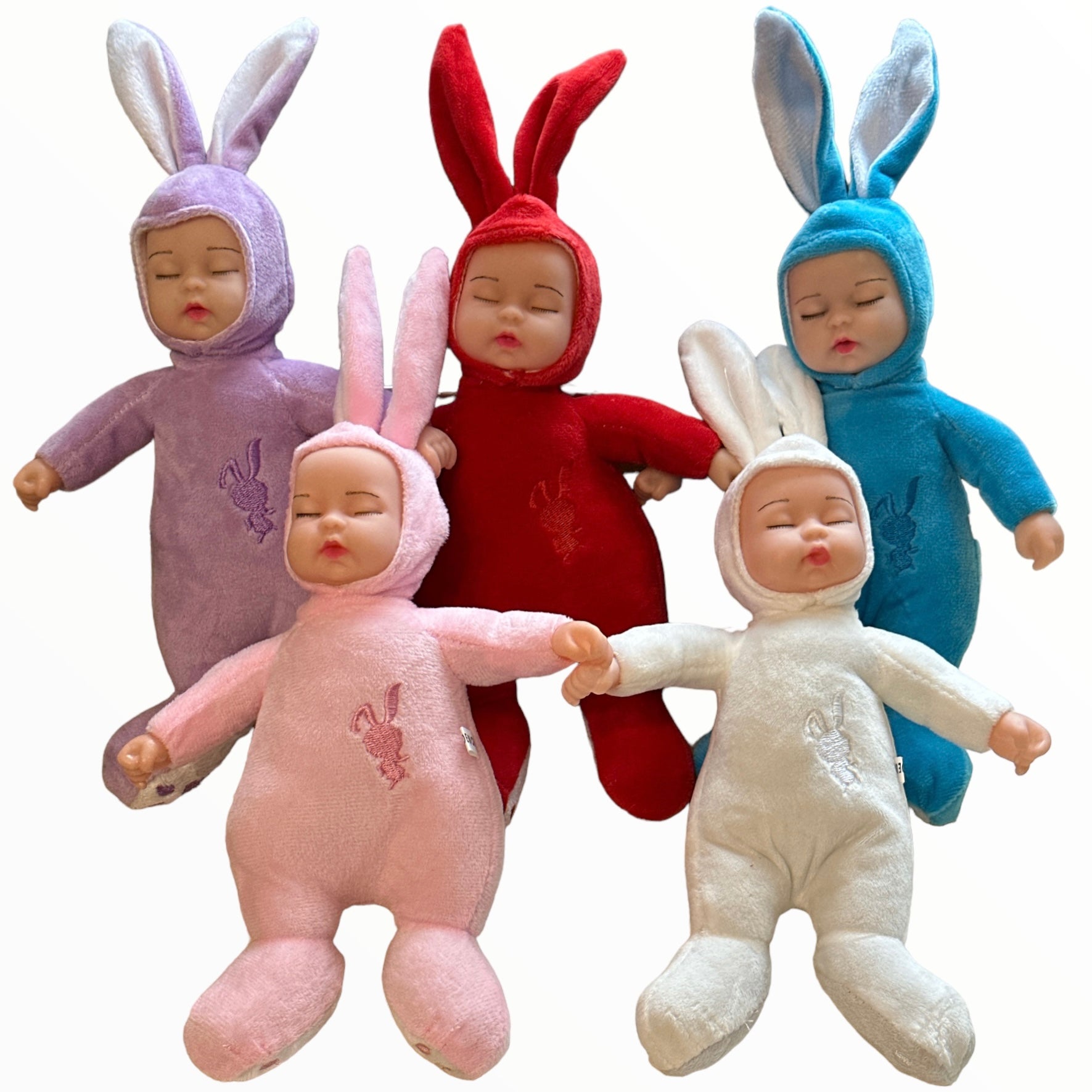 Păpușile adorabile din pluș îmbrăcate în costume de Iepuraș sunt perfecte pentru joaca în rolul de mămica, dezvoltând-i copilului abilități de atenție si grijă față de cei din jur. Păpușile au fața de cauciuc și corpul acoperit cu material plușat, moale și pufos, plăcut la atingere. Cu noul membru al familiei joaca poate începe imediat.