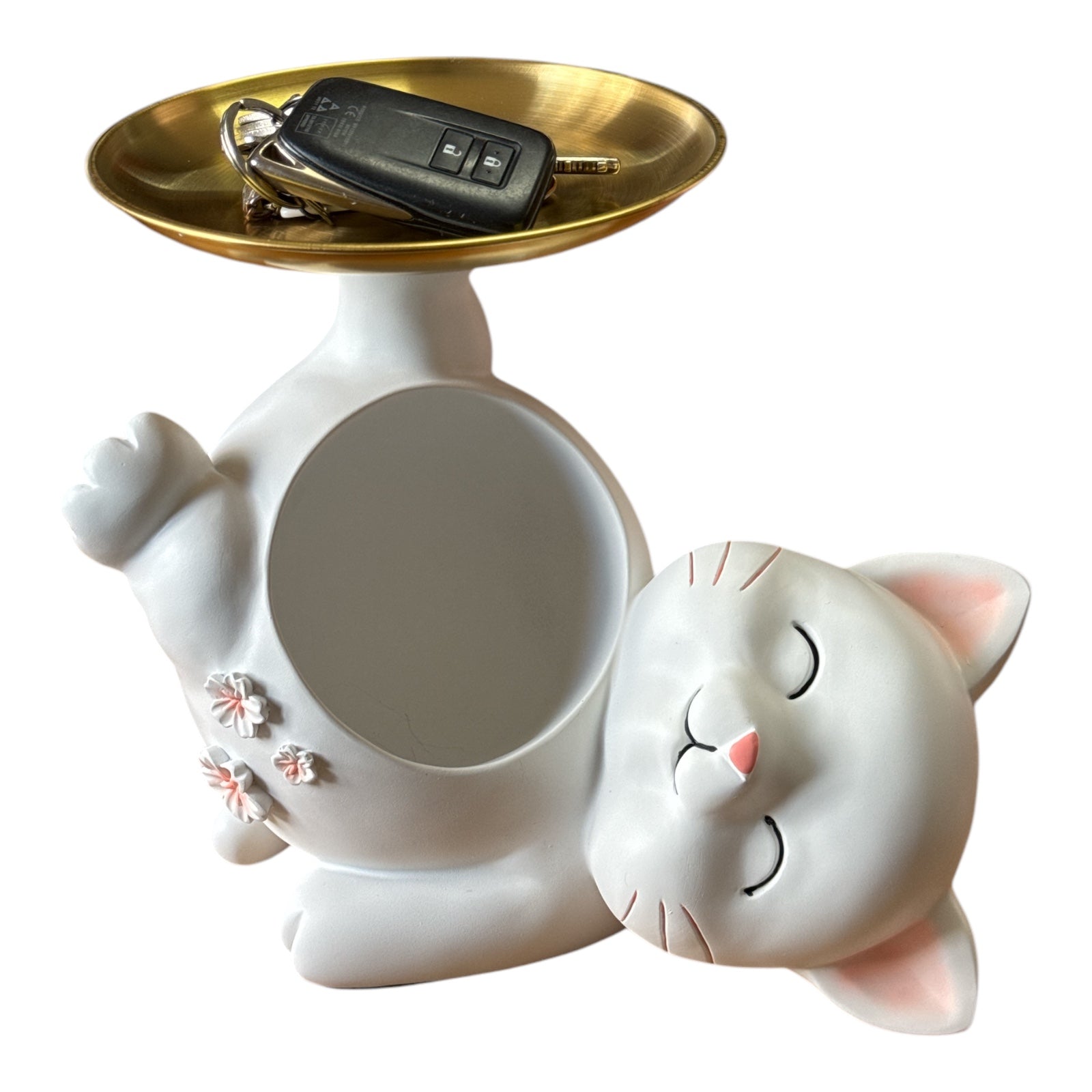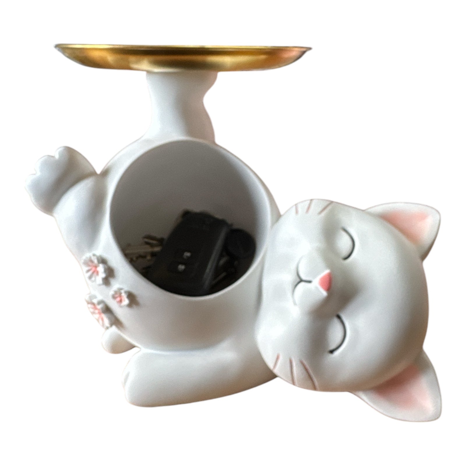 Această decorațiune de masă fantastică este fabricată din polirășină de calitate superioară și durabilă ușor de curățat și de întreținut. Pisica este o modalitate excelentă de a adăuga originalitate biroului, raftului sau mesei si de a păstra lucrurile tale organizate într-un singur loc .