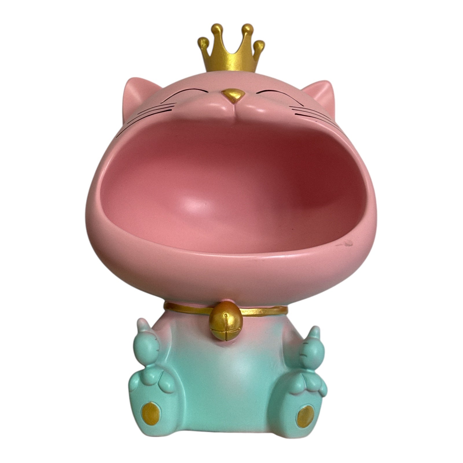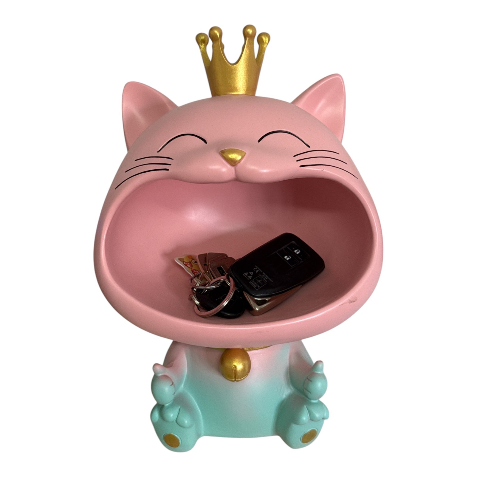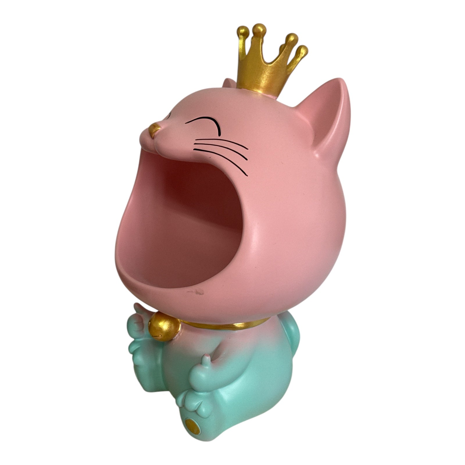 Această decorațiune de masă fantastică este fabricată din polirășină de calitate superioară și durabilă ușor de curățat și de întreținut. Pisica este o modalitate excelentă de a adăuga originalitate biroului, raftului sau mesei si de a păstra lucrurile tale organizate într-un singur loc .Îți tine telefonul, ochelarii, cheile, bomboanele, bijuteriile, telecomanda și multe altele