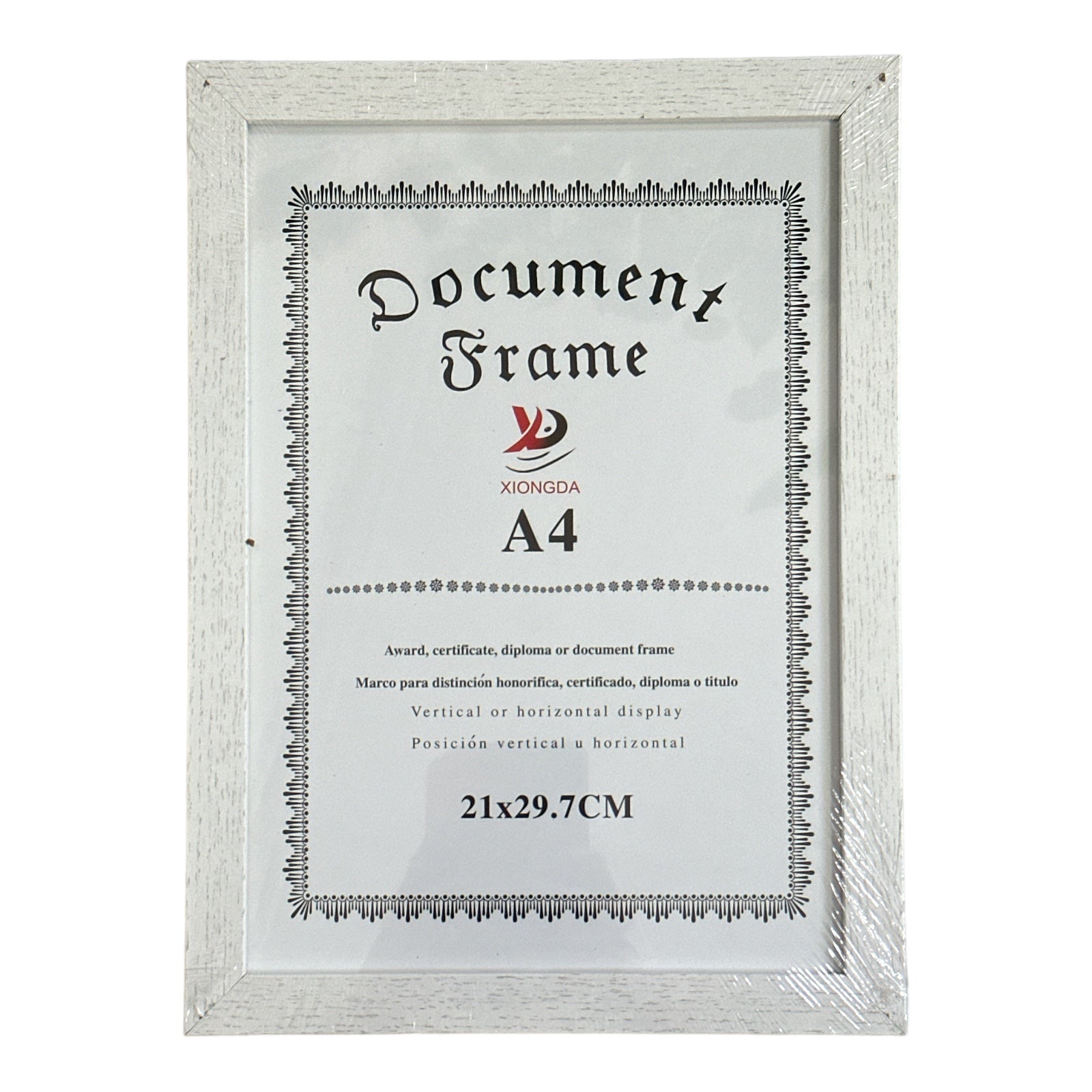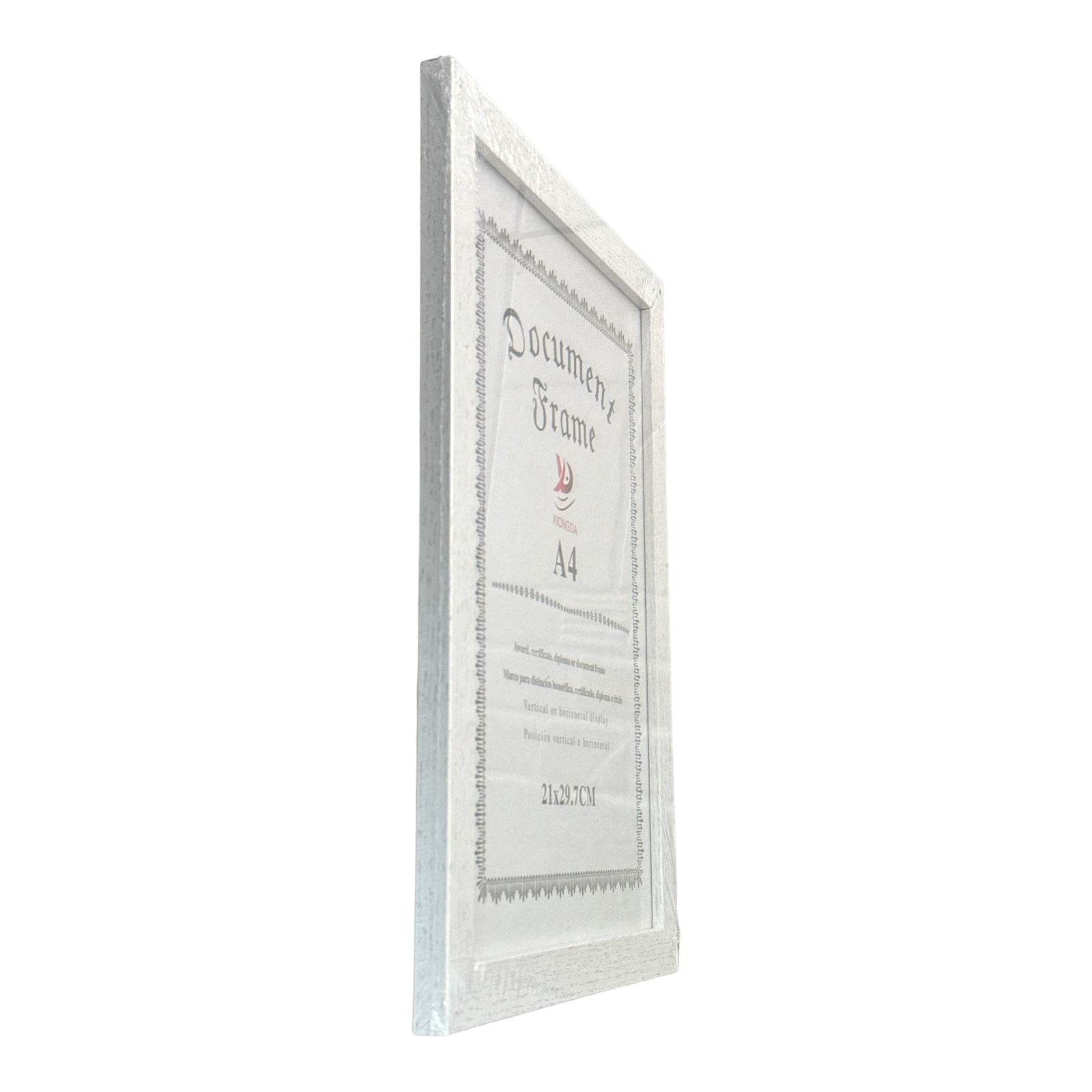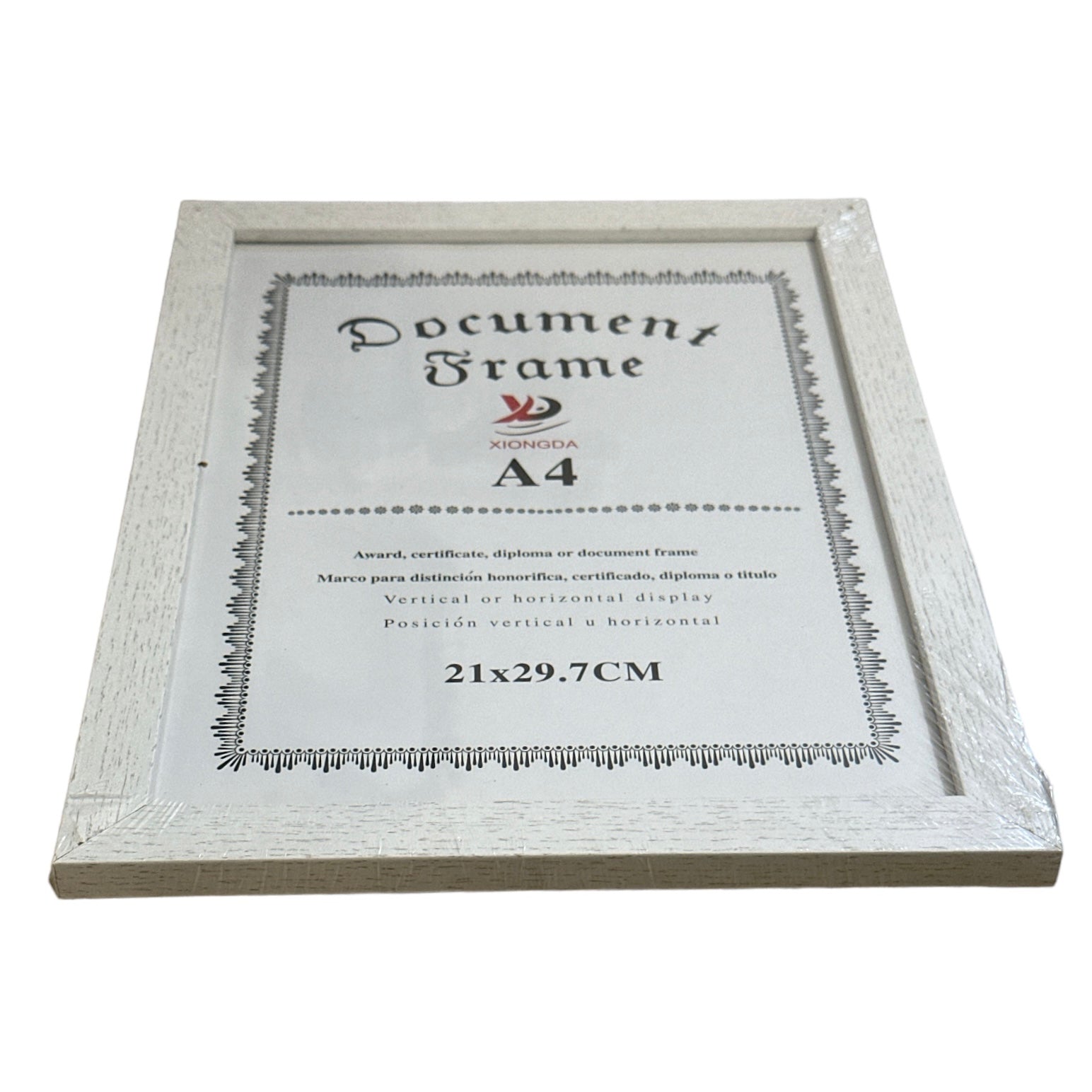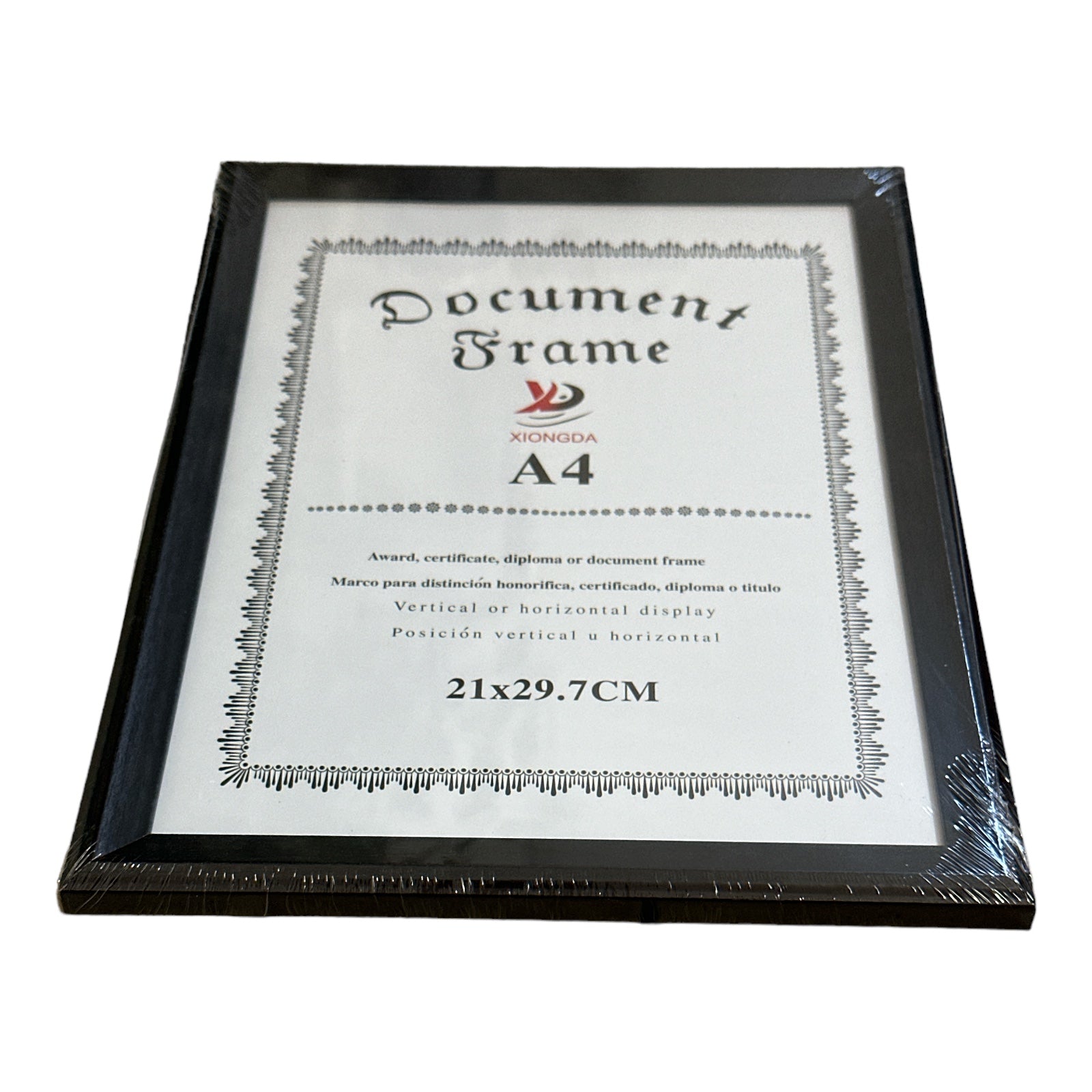 Rama este echipată cu un geam transparent care protejează diploma sau certificatul de praf, murdărie și deteriorări, în timp ce permite o vizualizare clară a documentului .
