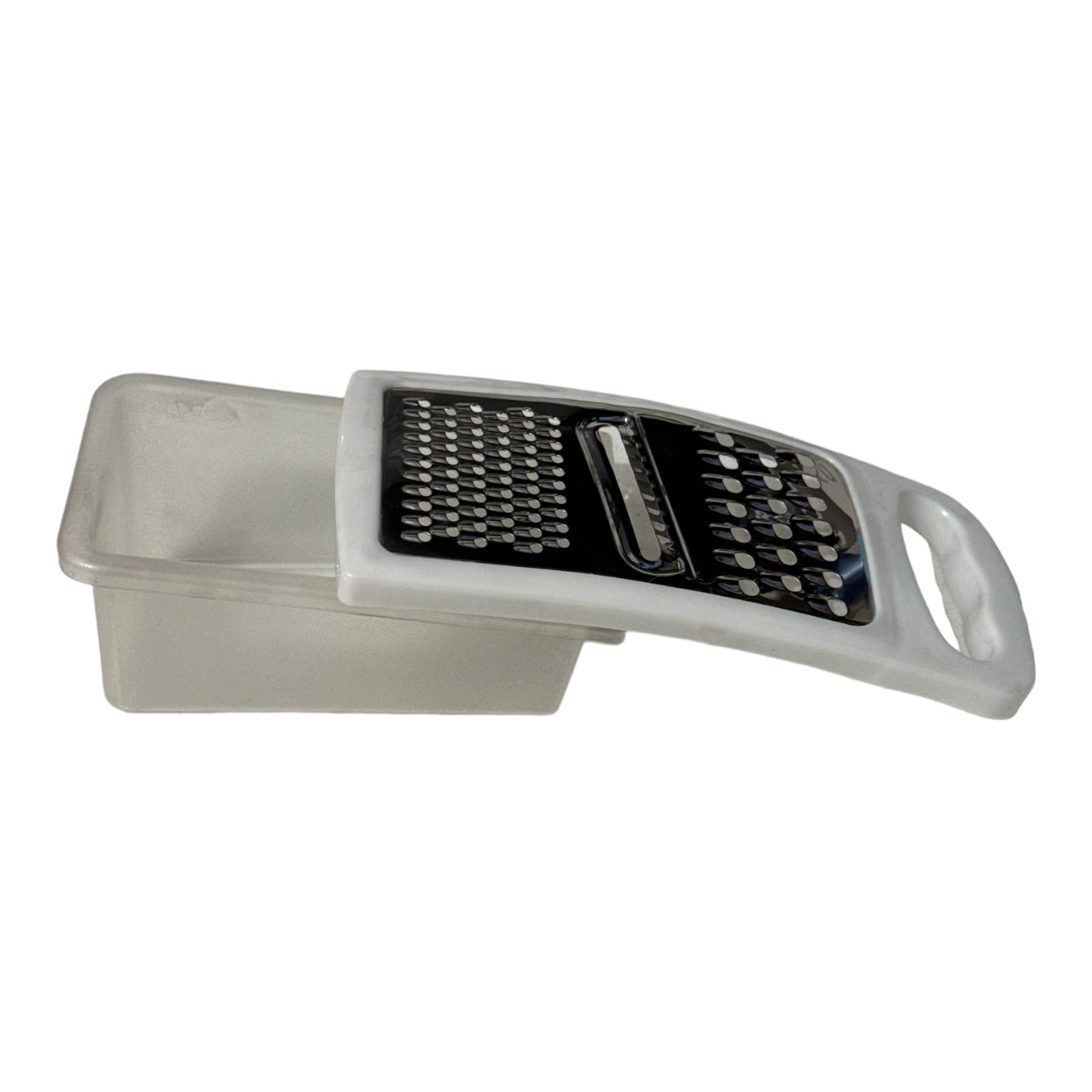 Răzătoarea este dotată cu o cutie atașată , care colectează alimentele răzuite și le păstrează împreună, astfel încât să puteți adăuga rapid și ușor ingredientele răzuite la diverse preparate.