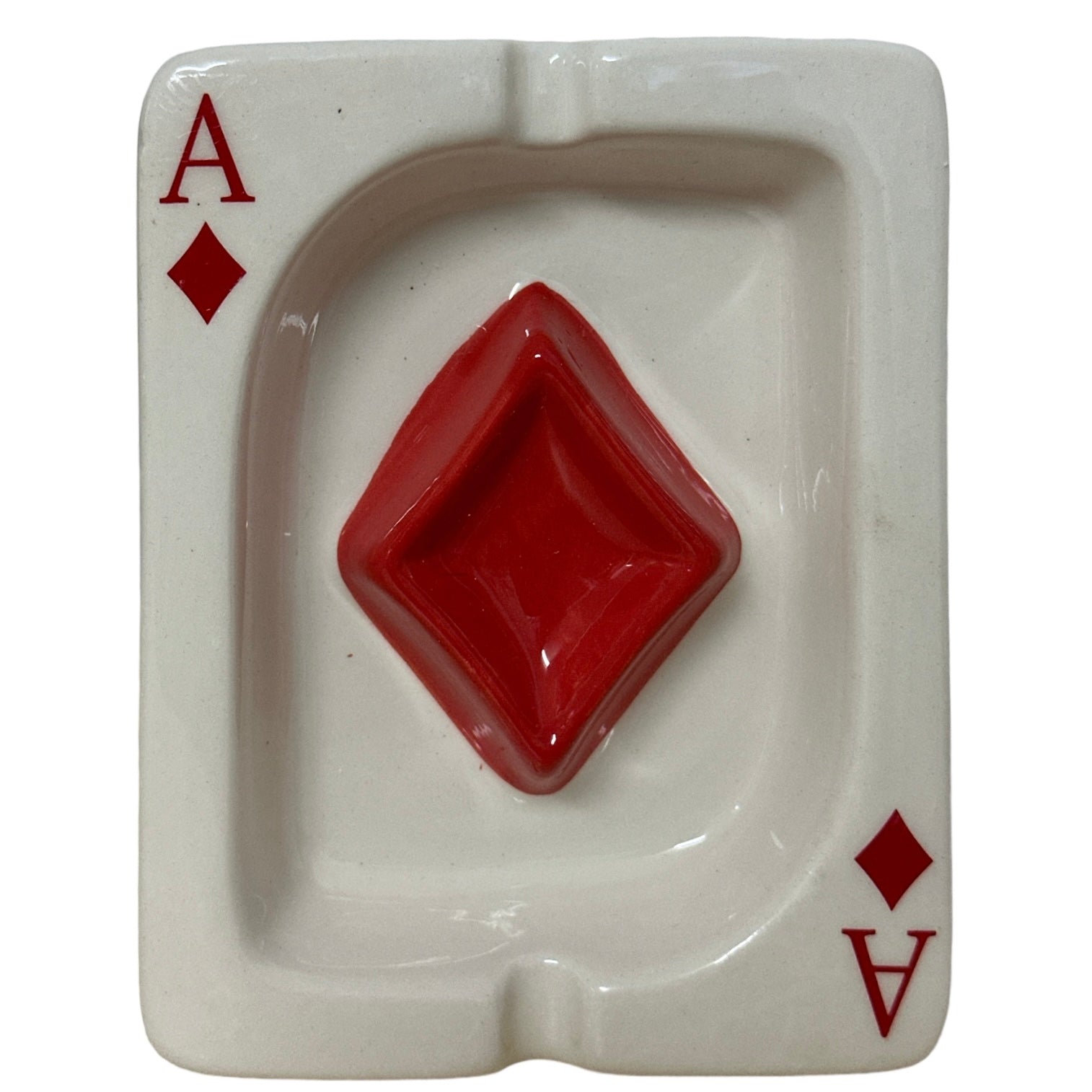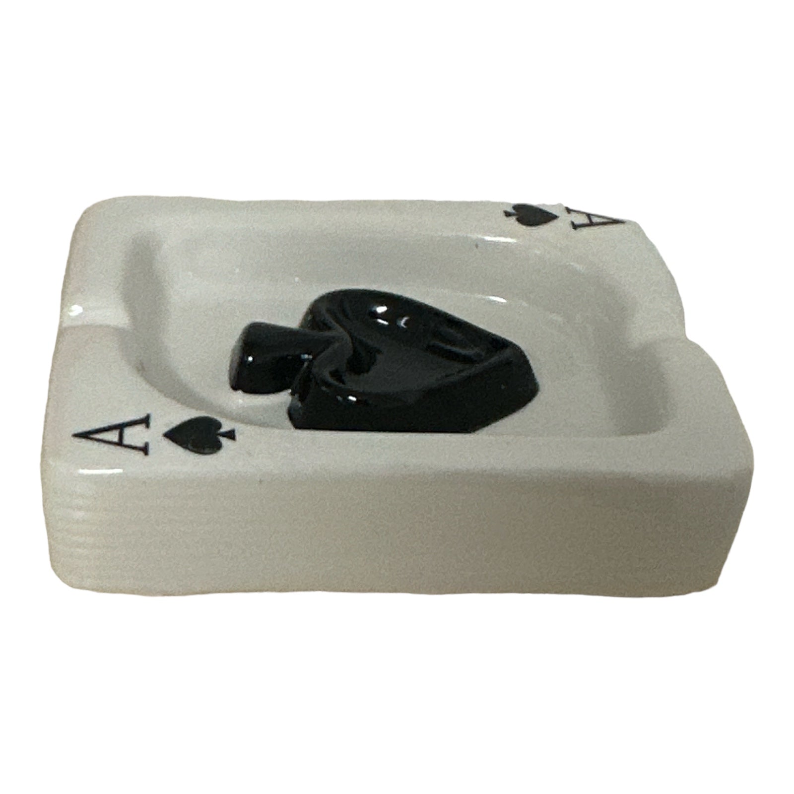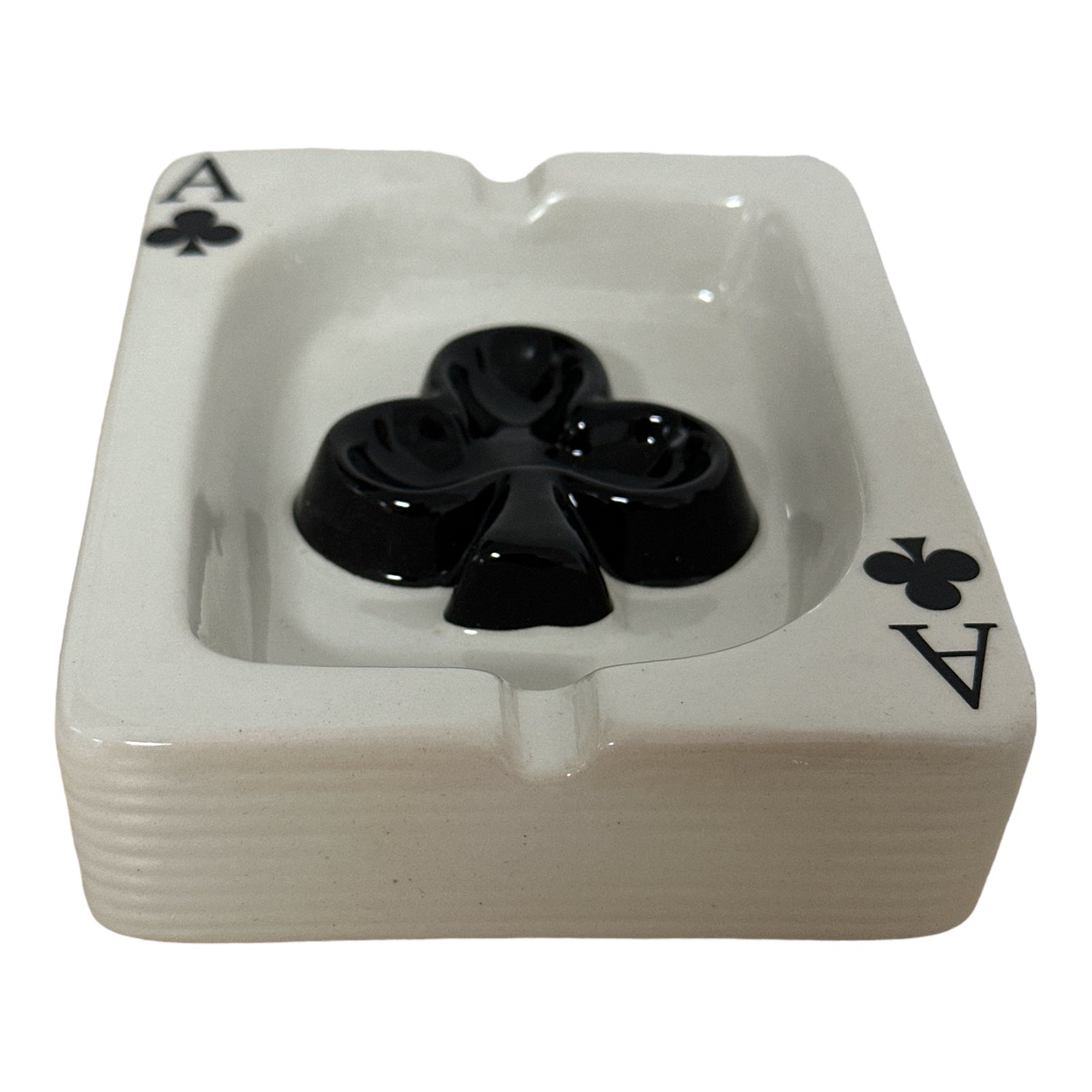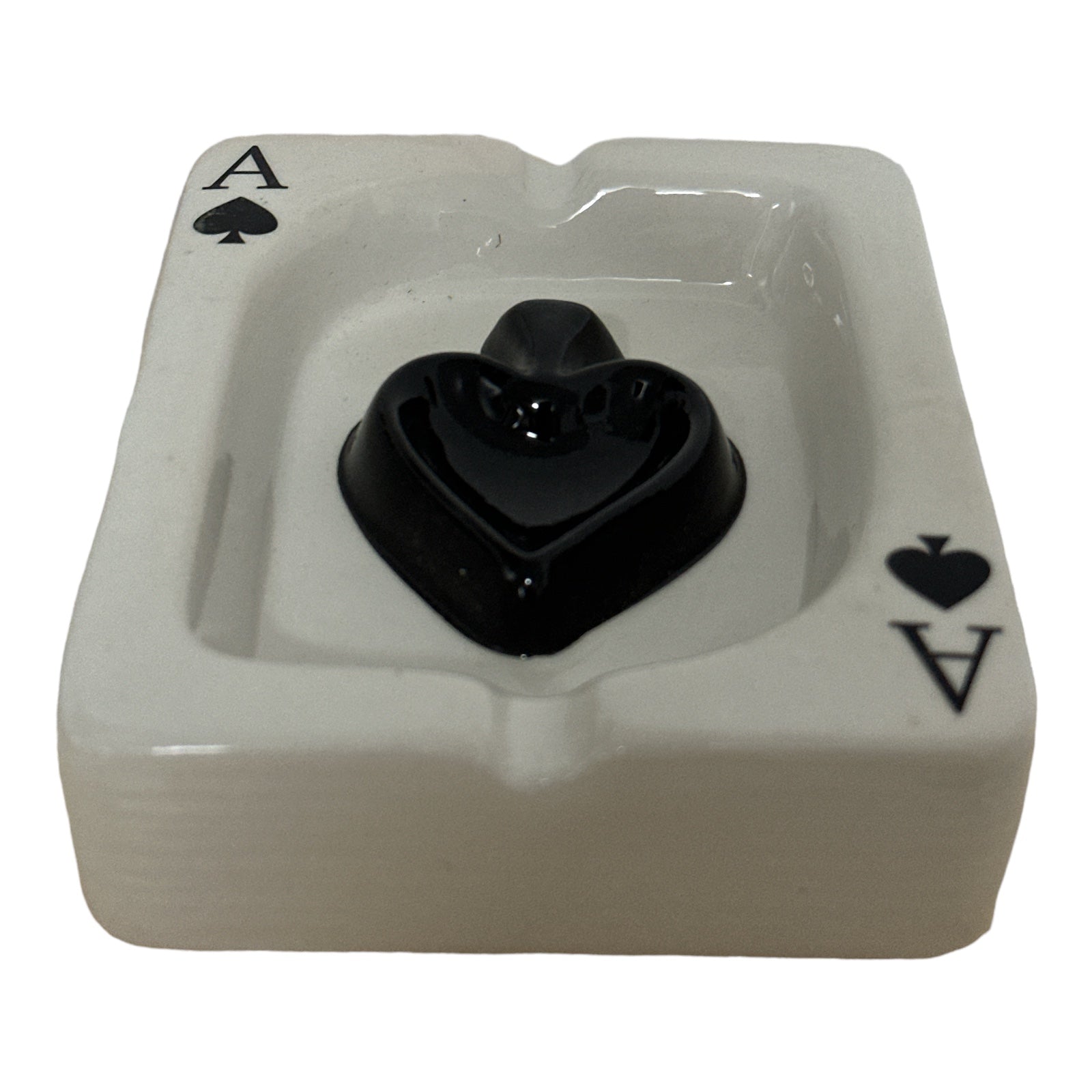 Scrumiera din ceramică cu forma de carte de joc este un obiect potrivit pentru un cadou la orice ocazie pentru adepții acestui viciu .