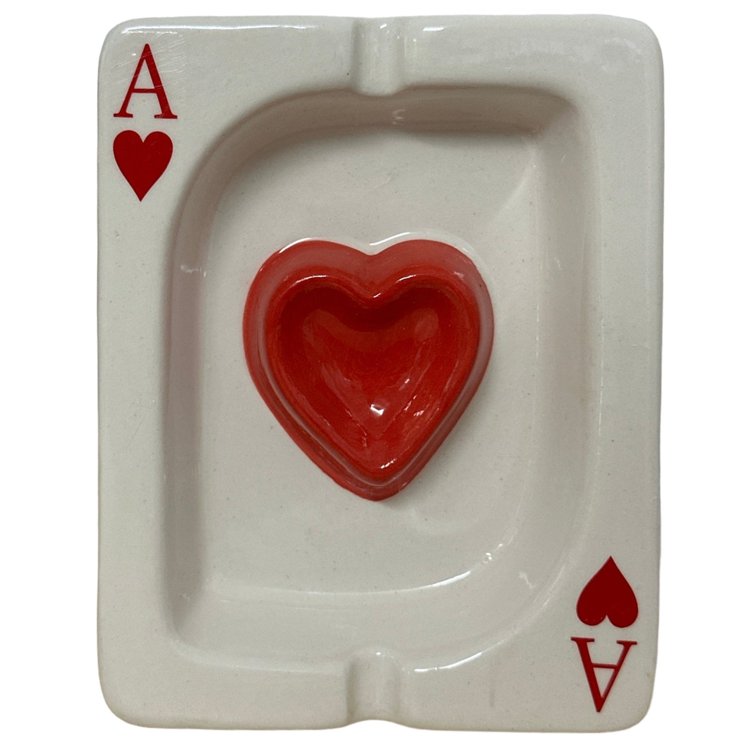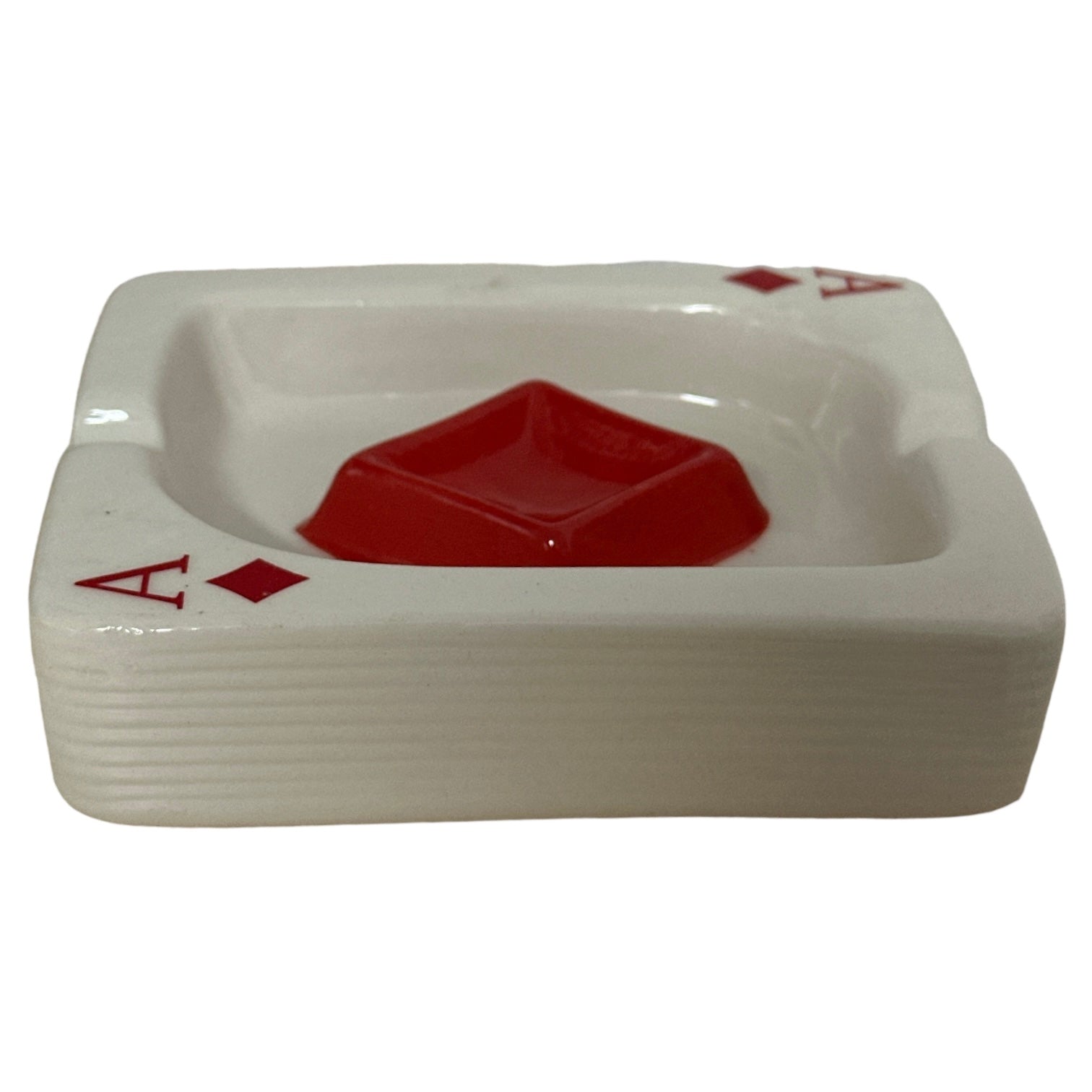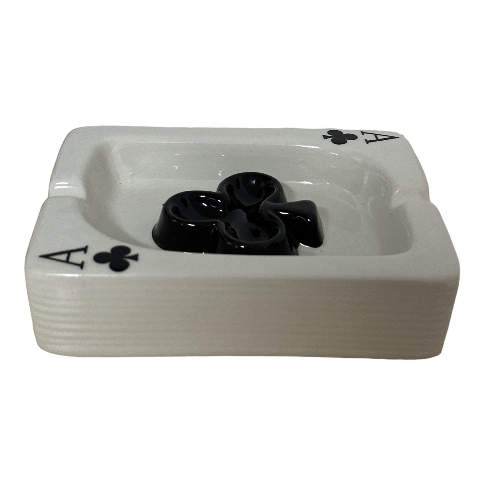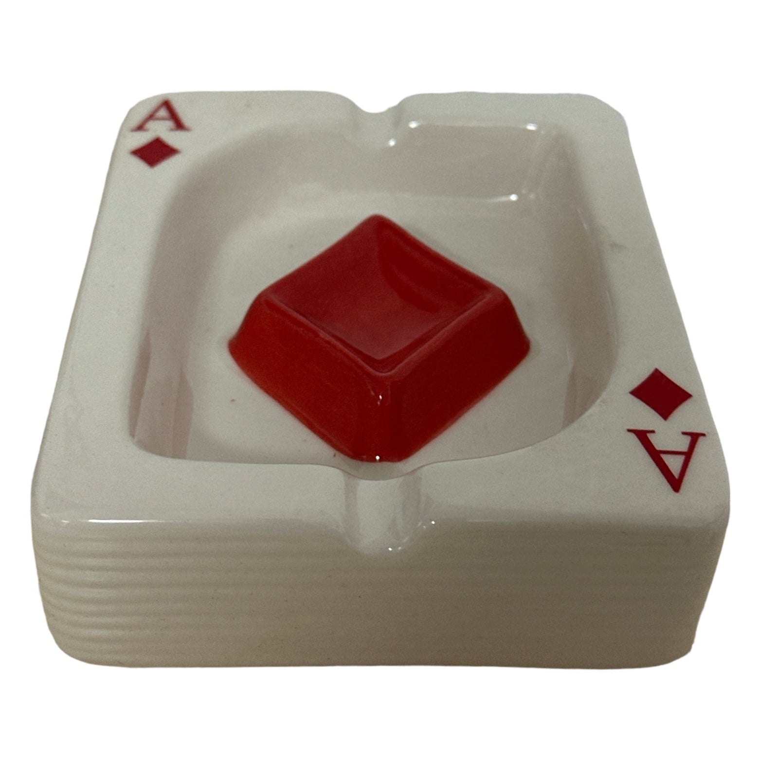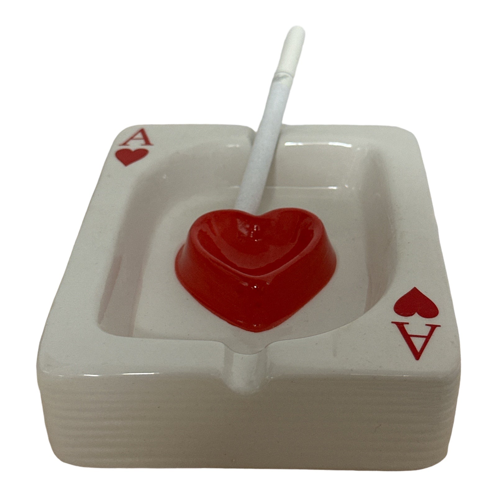 Scrumiera din ceramică cu forma de carte de joc este un obiect potrivit pentru un cadou la orice ocazie pentru adepții acestui viciu .
