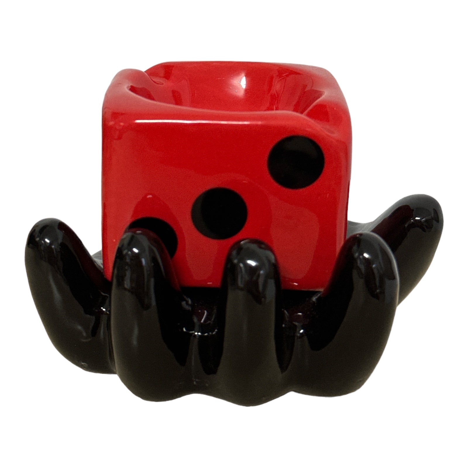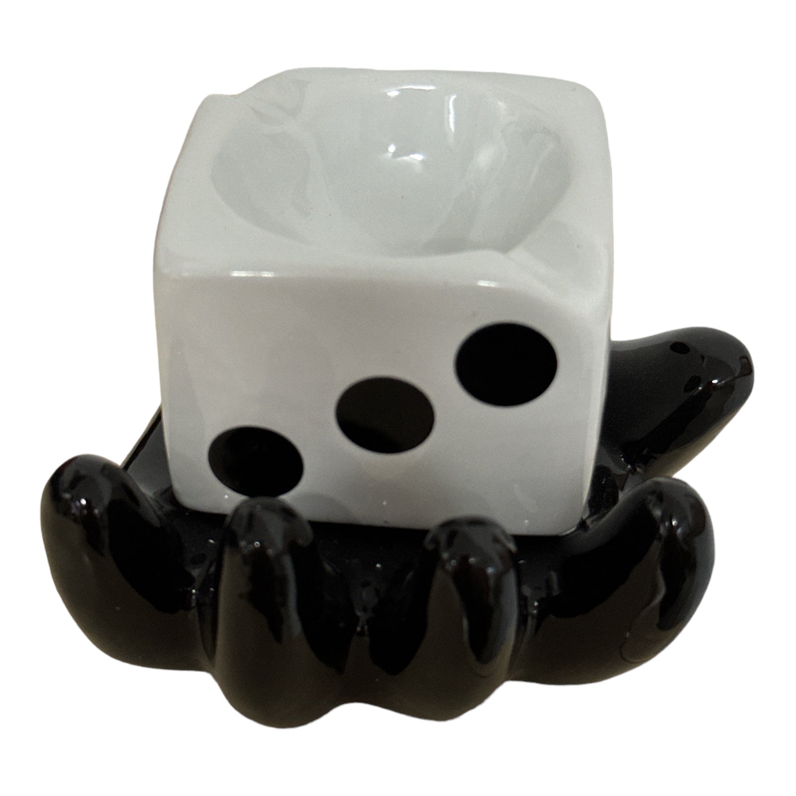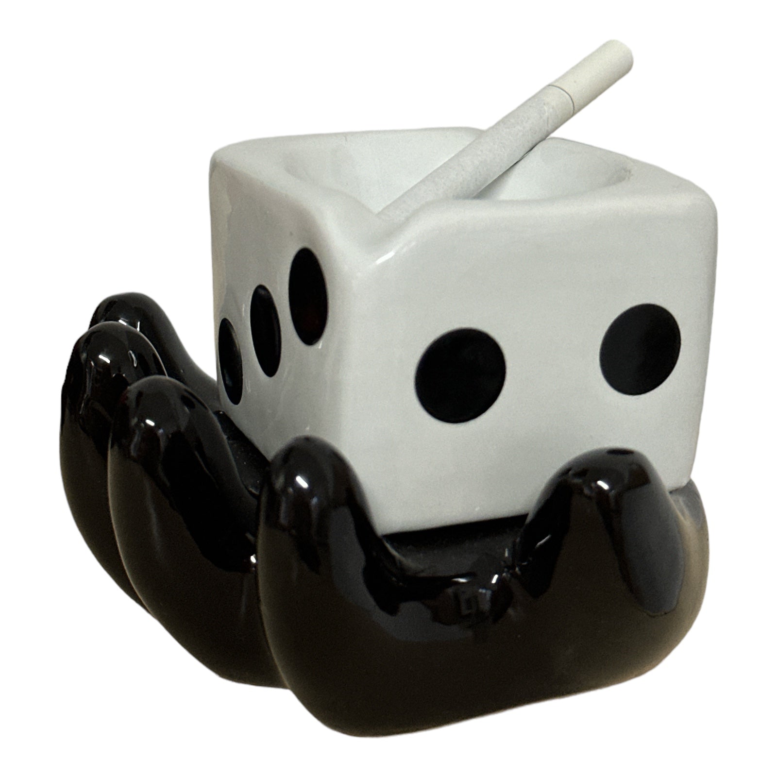 Scrumiera din ceramică cu forma de mână cu Zar este un obiect potrivit pentru un cadou la orice ocazie pentru adepții acestui viciu .