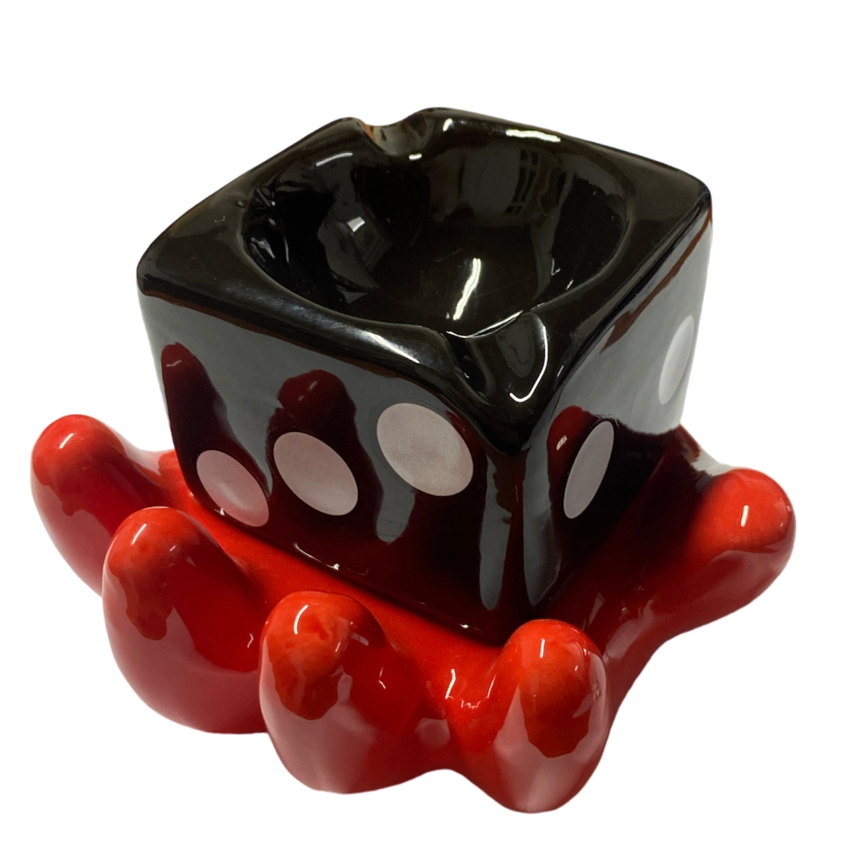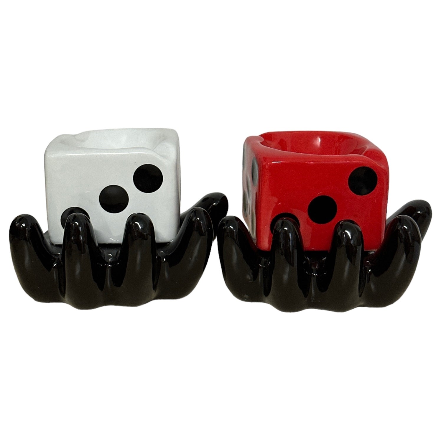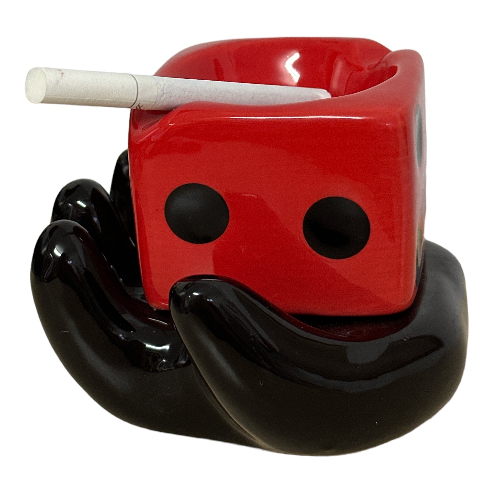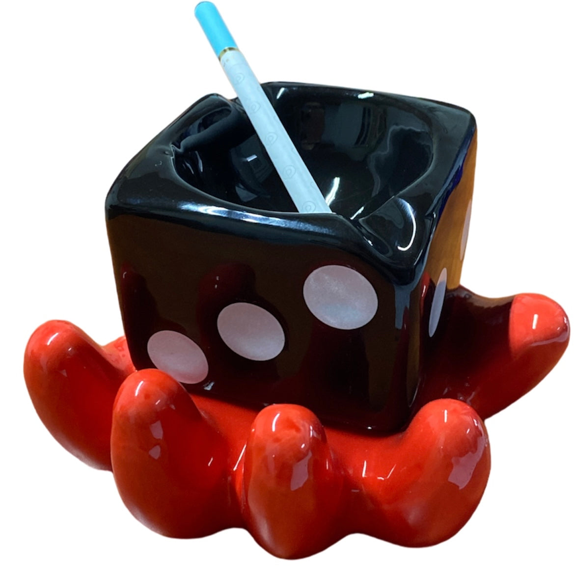 Scrumiera din ceramică cu forma de mână cu Zar este un obiect potrivit pentru un cadou la orice ocazie pentru adepții acestui viciu .