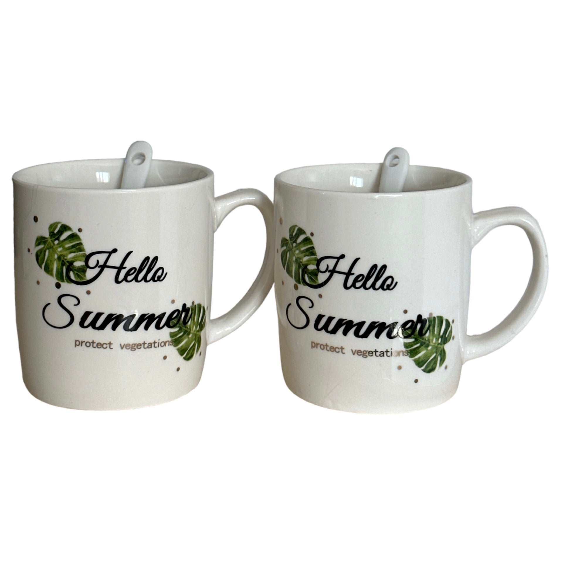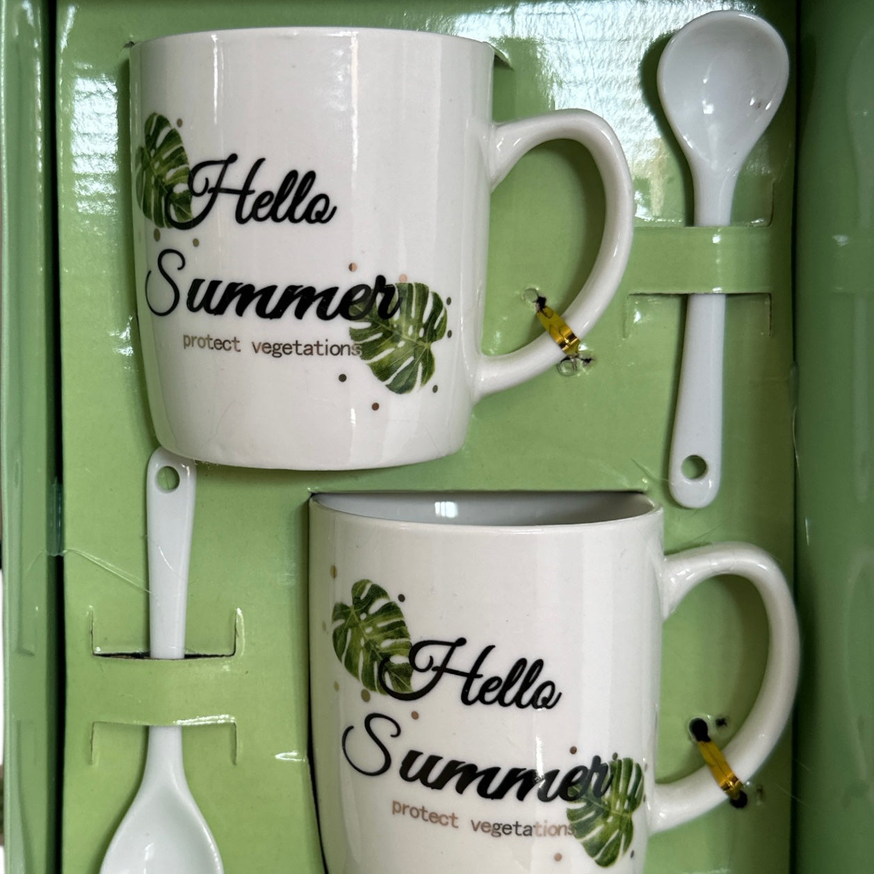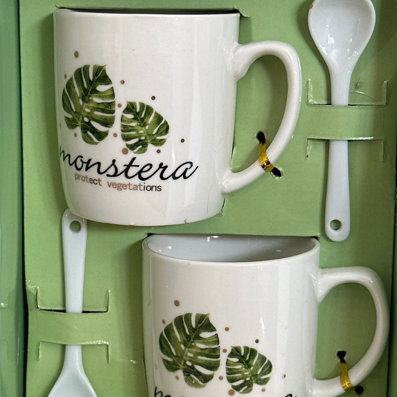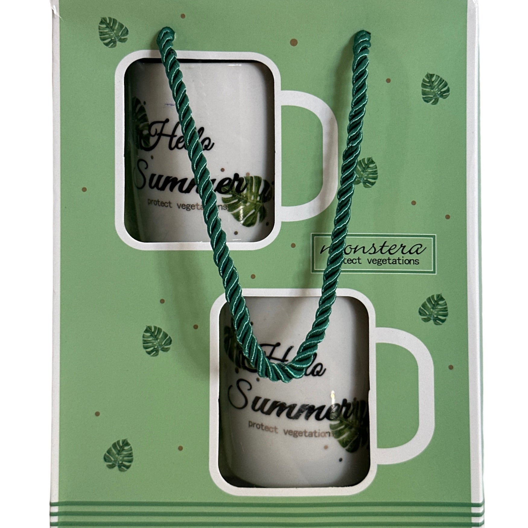 Setul este format din 2 căni cu linguriță și vine ambalat într-o cutie elegantă în formă de pungă de cadou cu șnur.