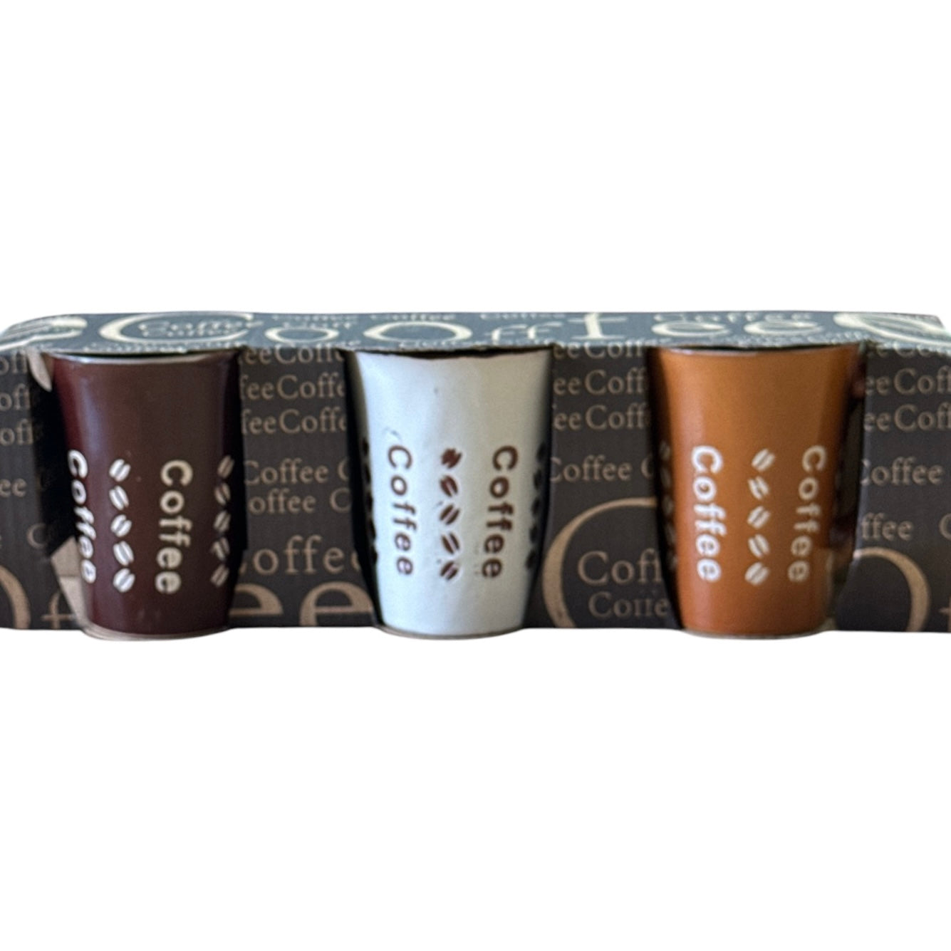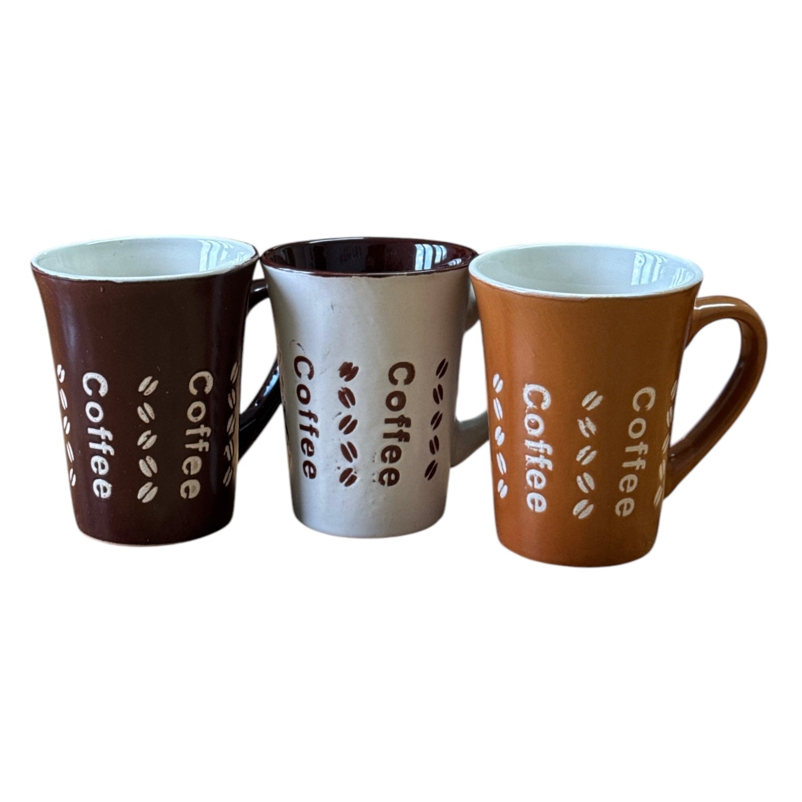 Setul este format din 3 căni frumos colorate și vine ambalat într-o cutie de carton imprimat cu Coffee.
