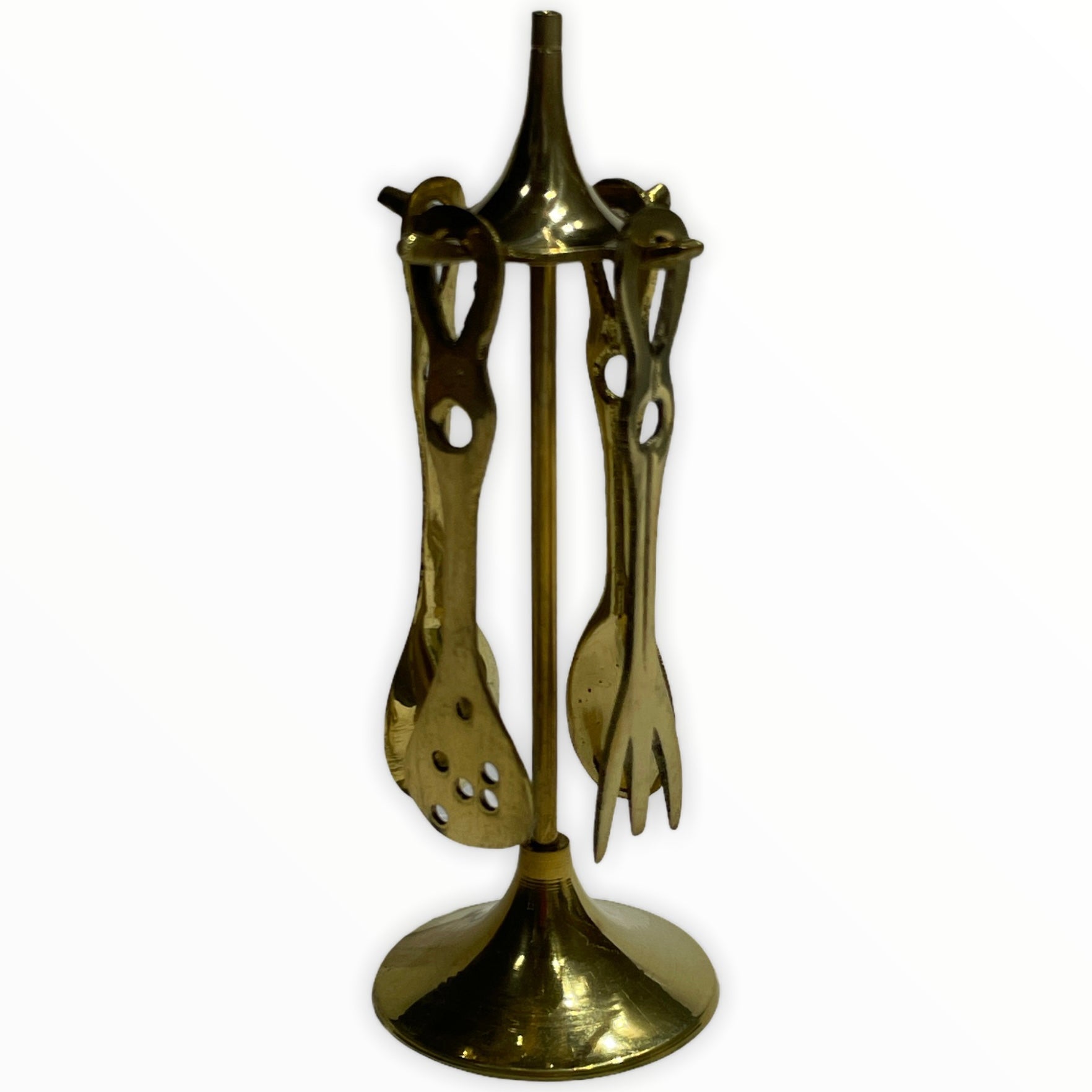 Setul se folosește ca suport pentru tacâmurile incluse și este potrivit în orice casă. Confecționat din alamaă, are un design rafinat datorită culorii antichizate. Este o piesă elegantă care te va ajuta să creezi un decor Vintage.