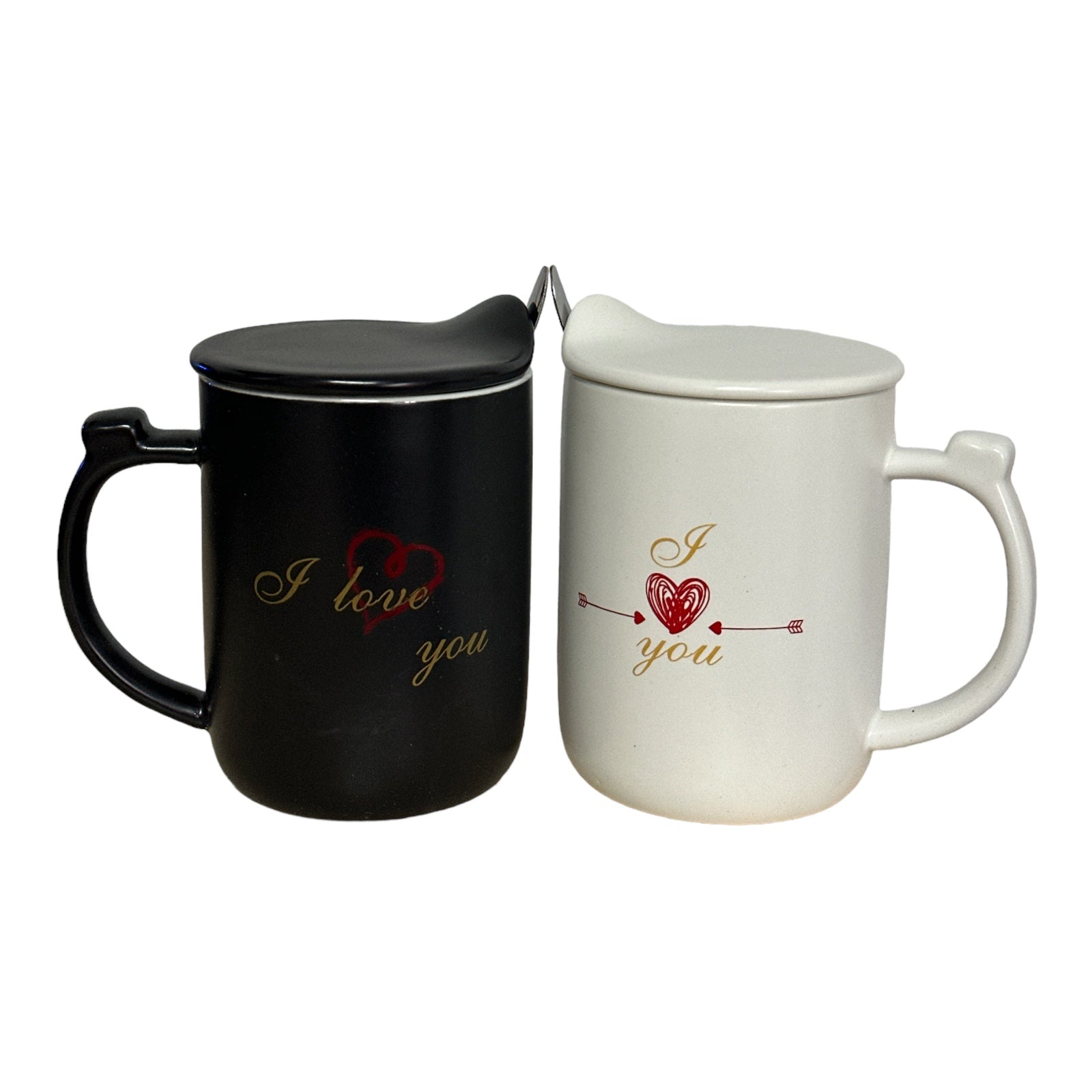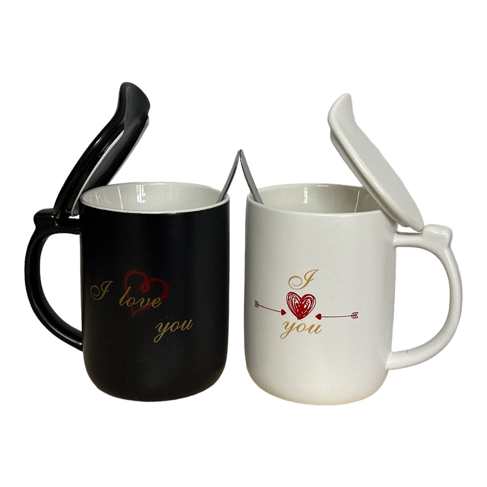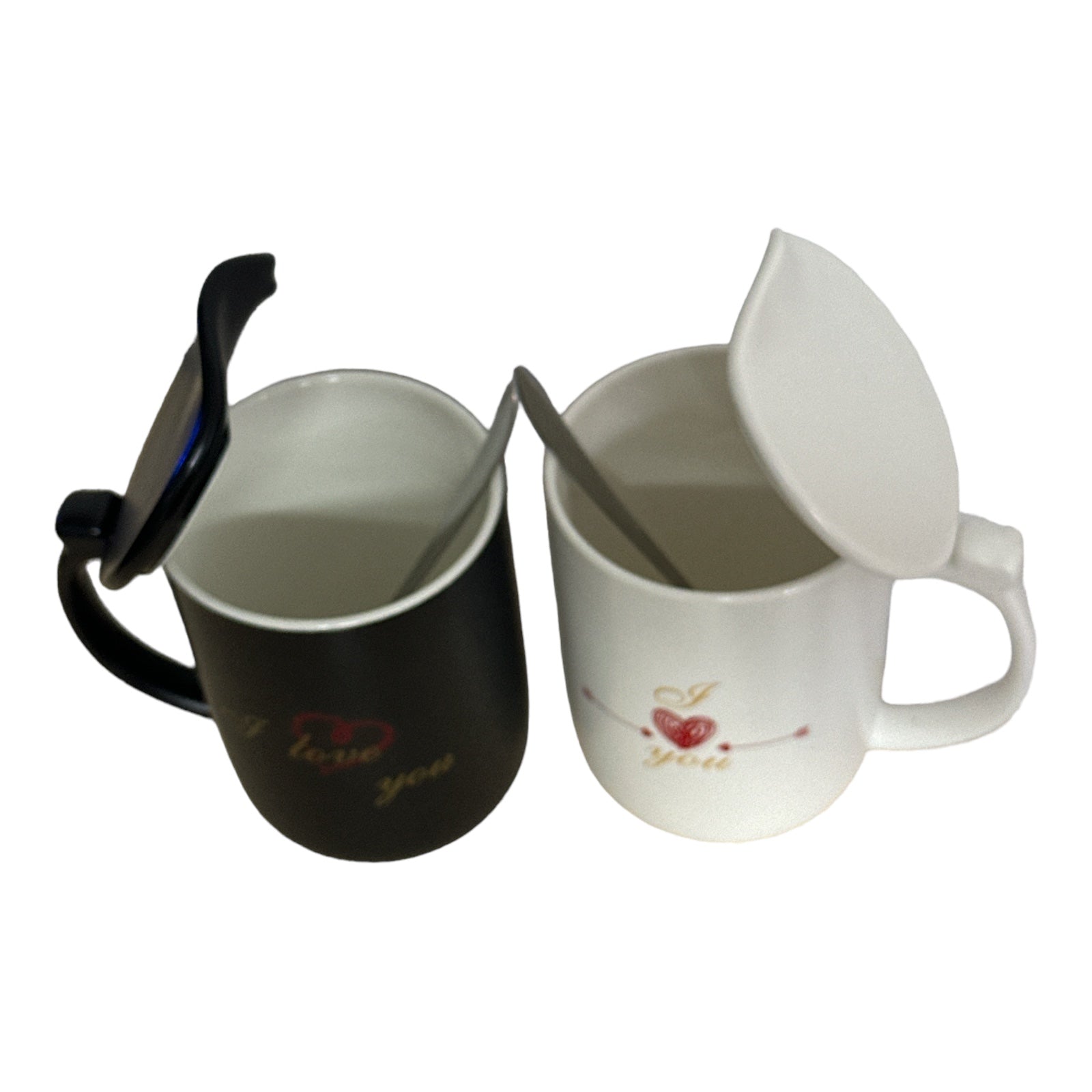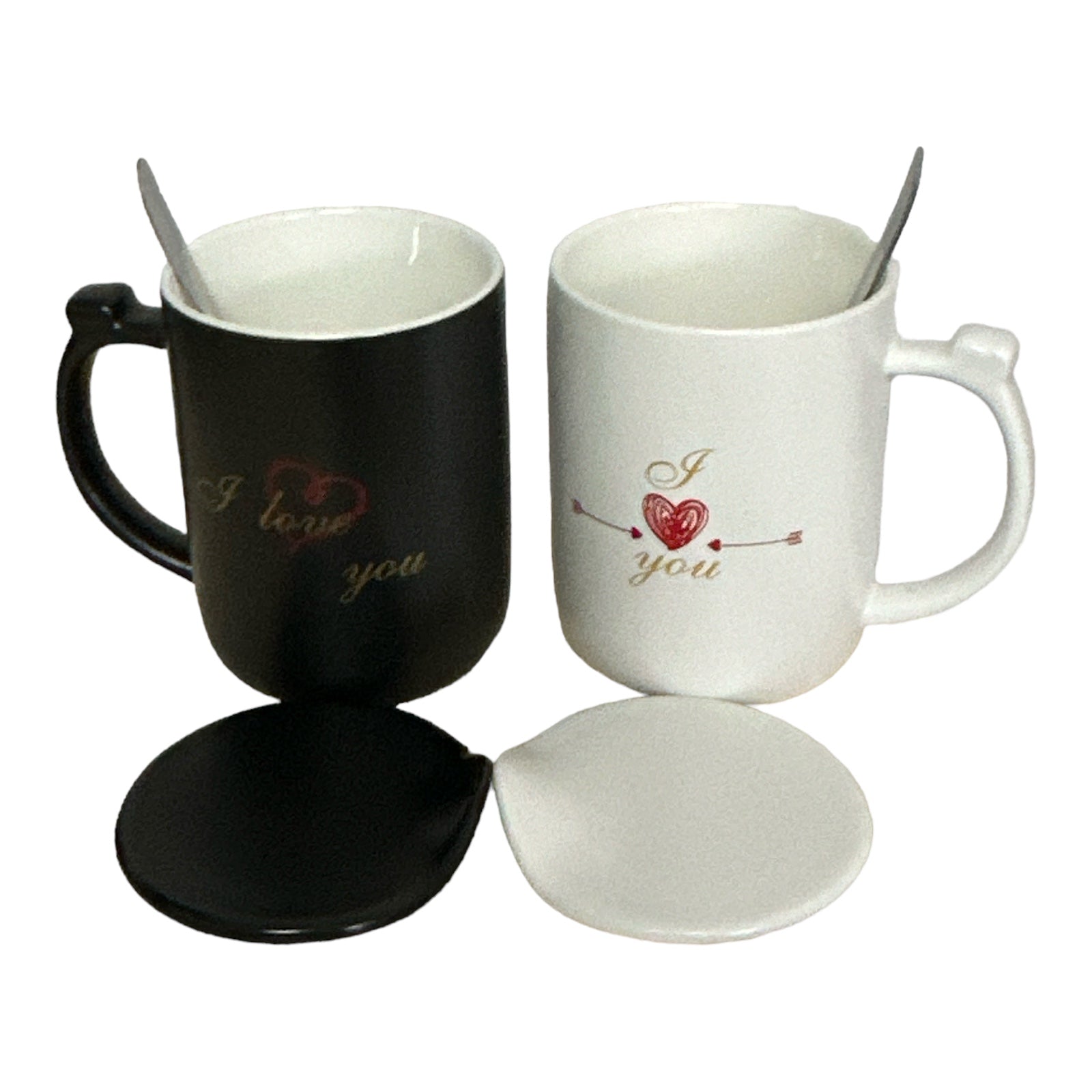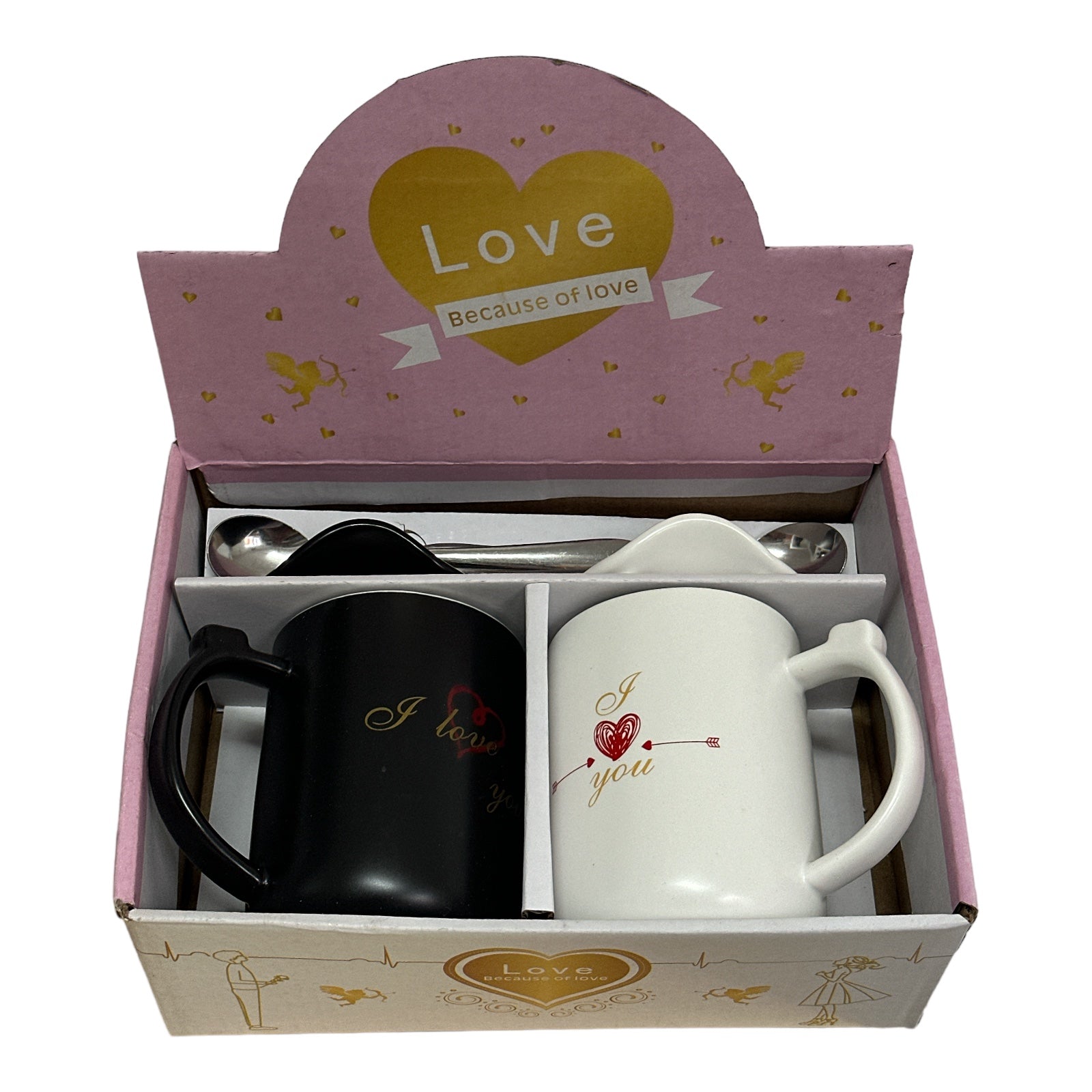 Setul este format din 2 căni cu capac și lingurițe metalice și vine ambalat într-o cutie din carton colorată, perfectă pentru un cadou plin de bun gust.