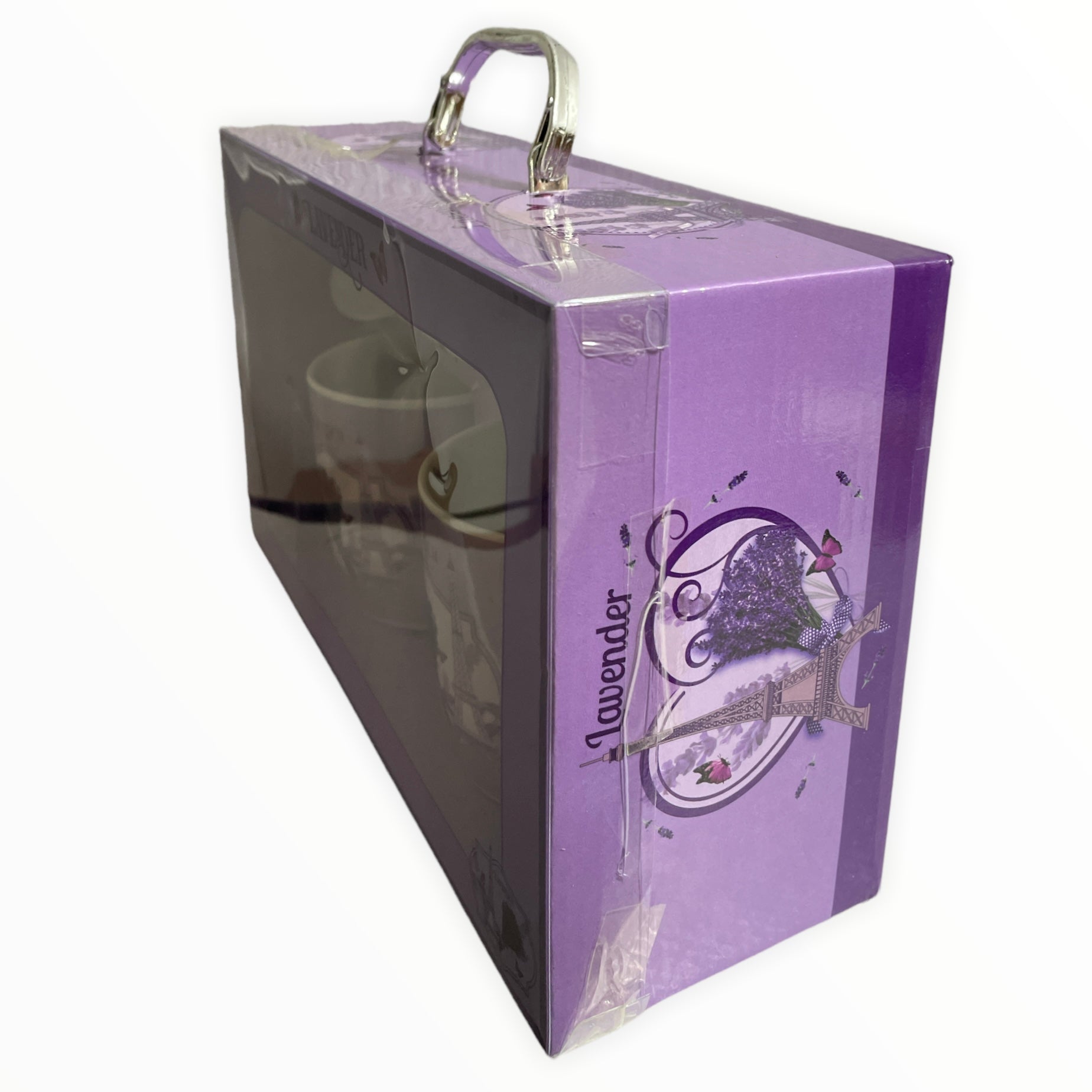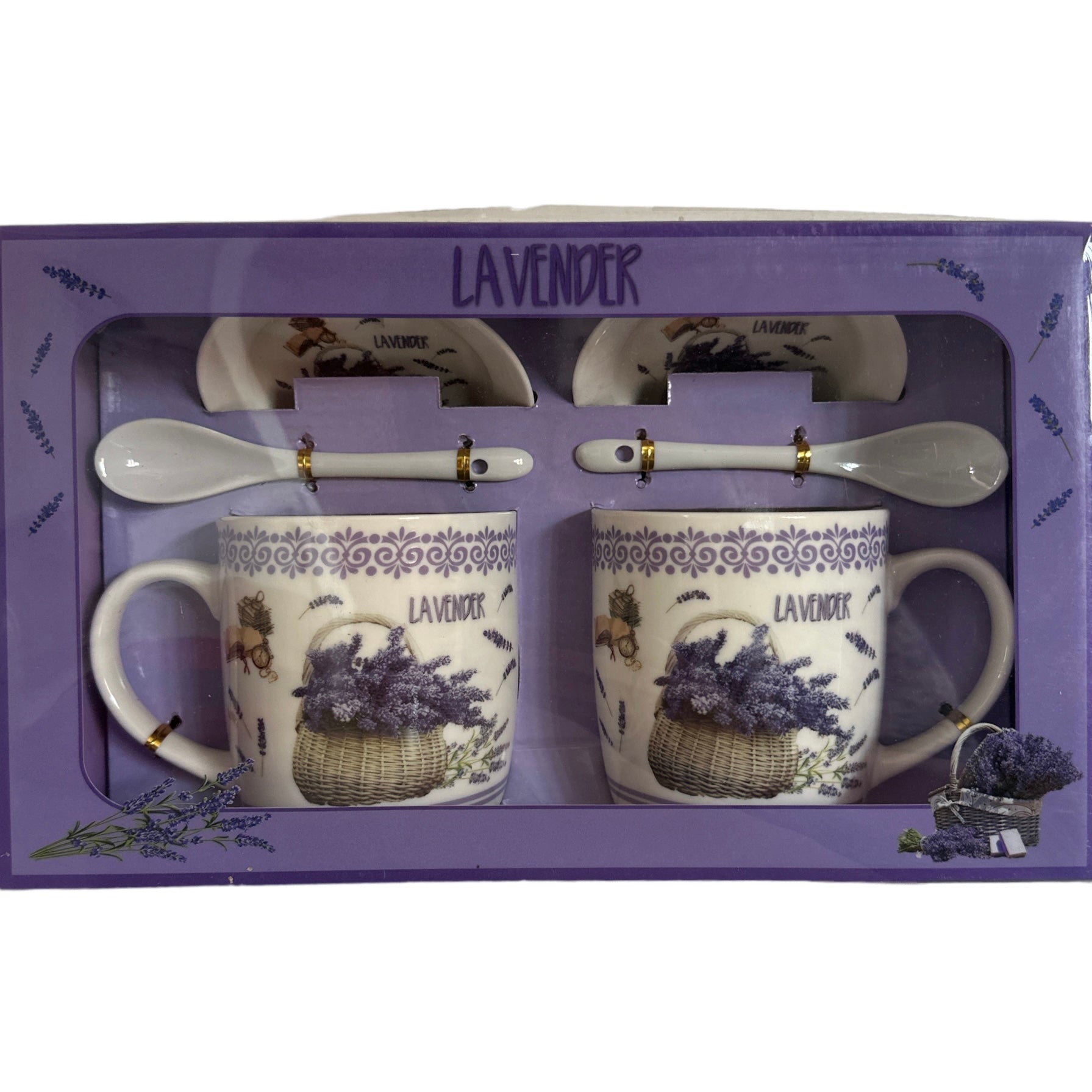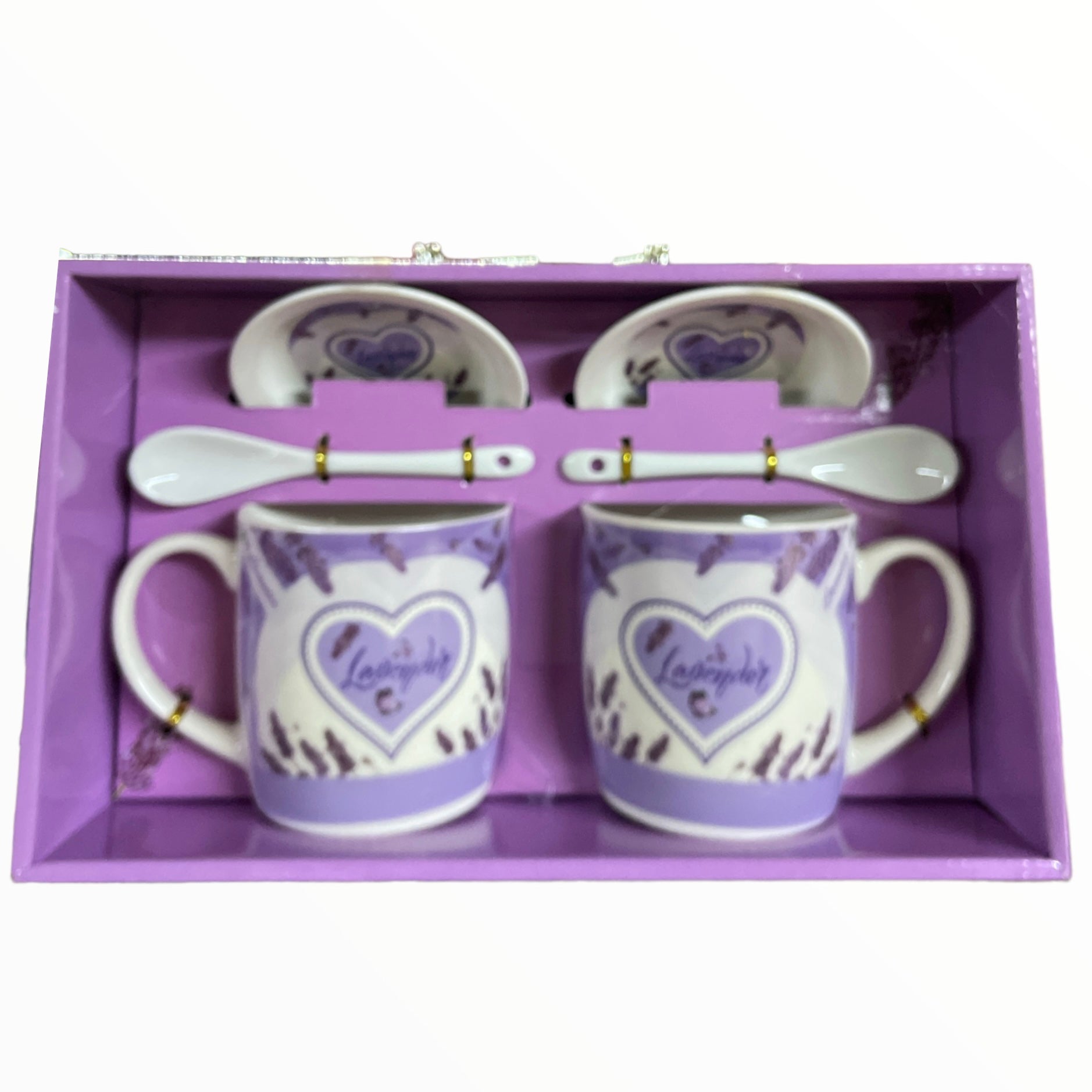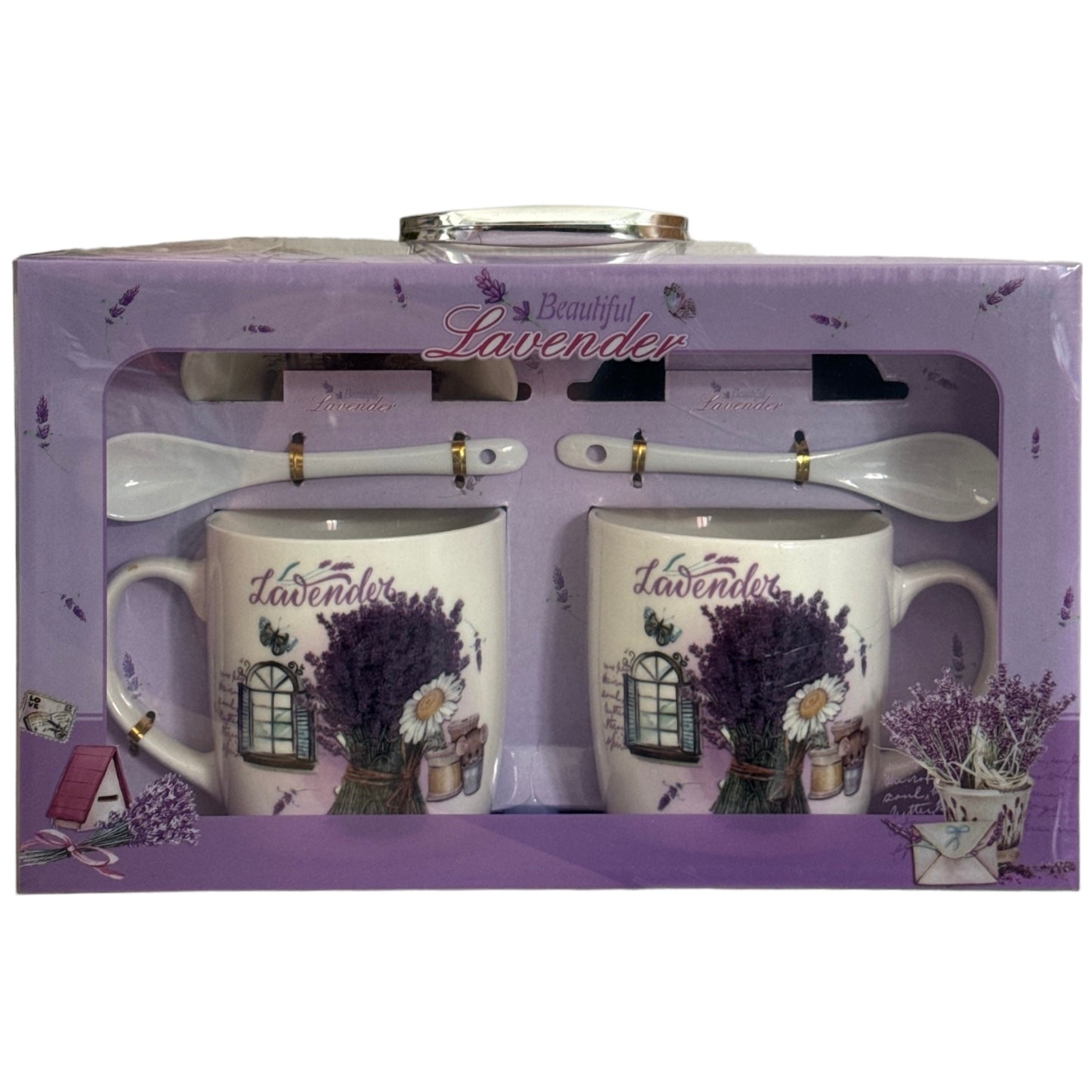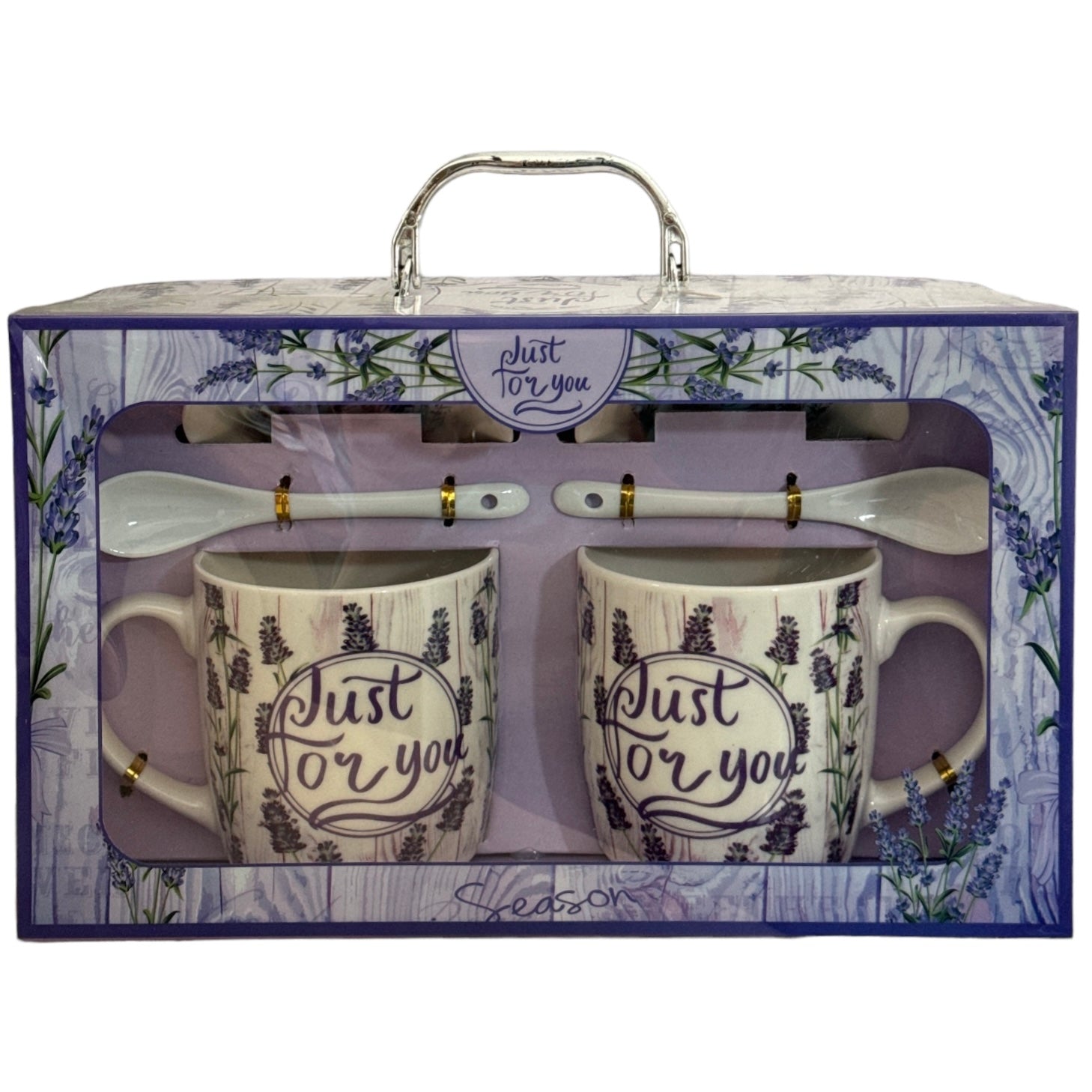 Setul este format din 2 căni cu capac și linguriță și vine ambalat într-o cutie elegantă cu mâner.
