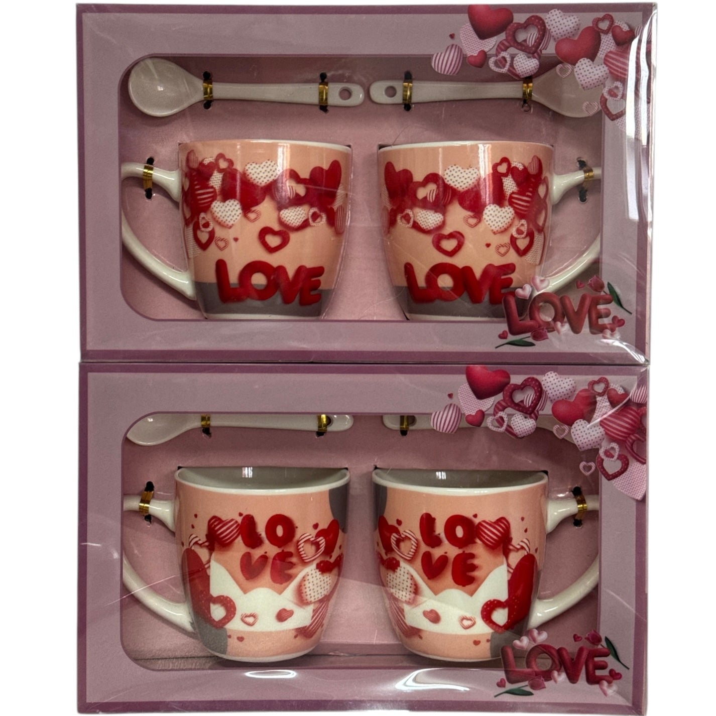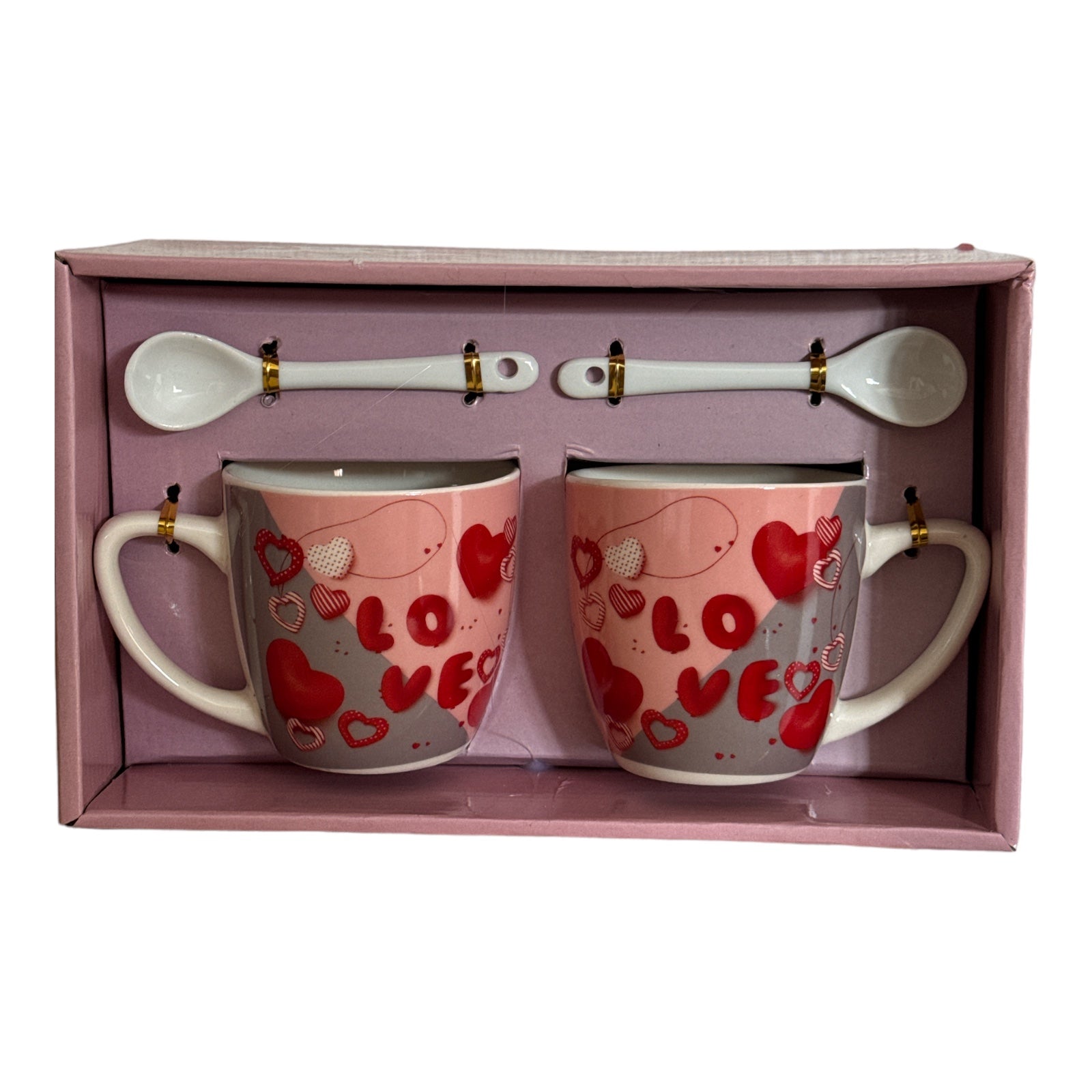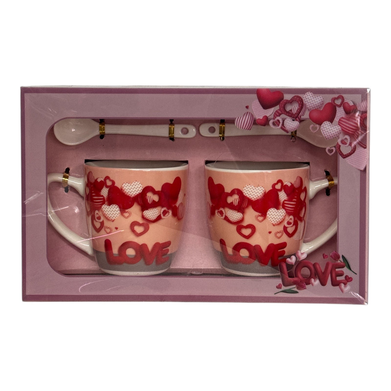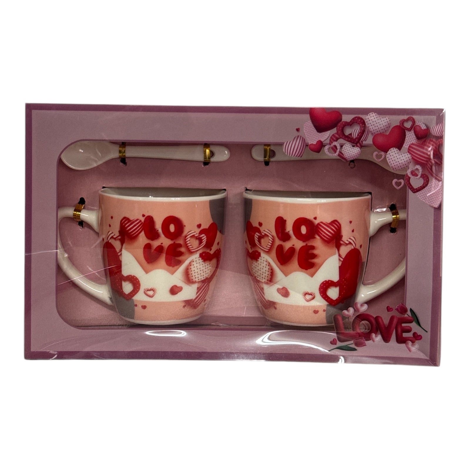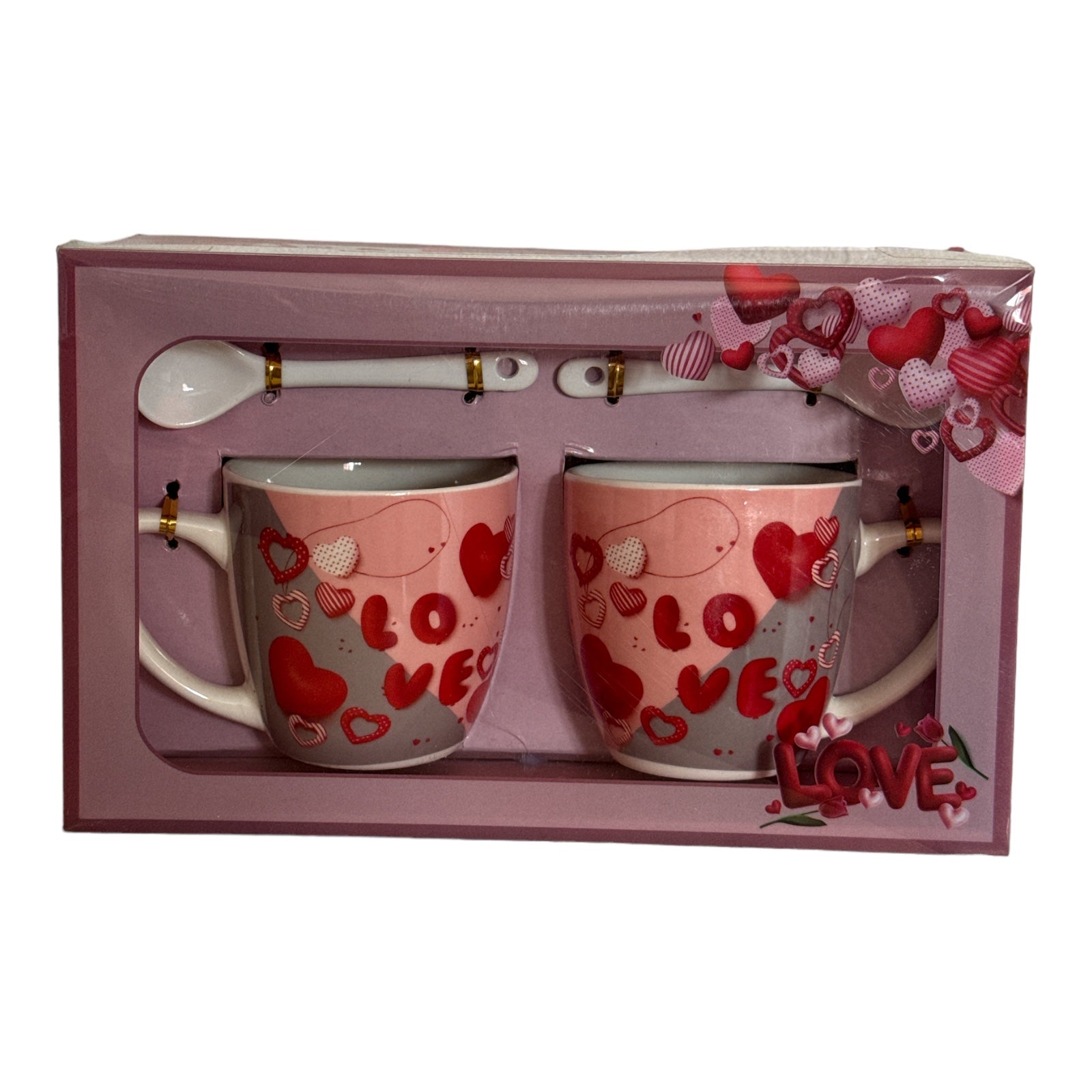 Setul este format din 2 căni cu linguriță și vine ambalat intr-o cutie elegantă de cadou.