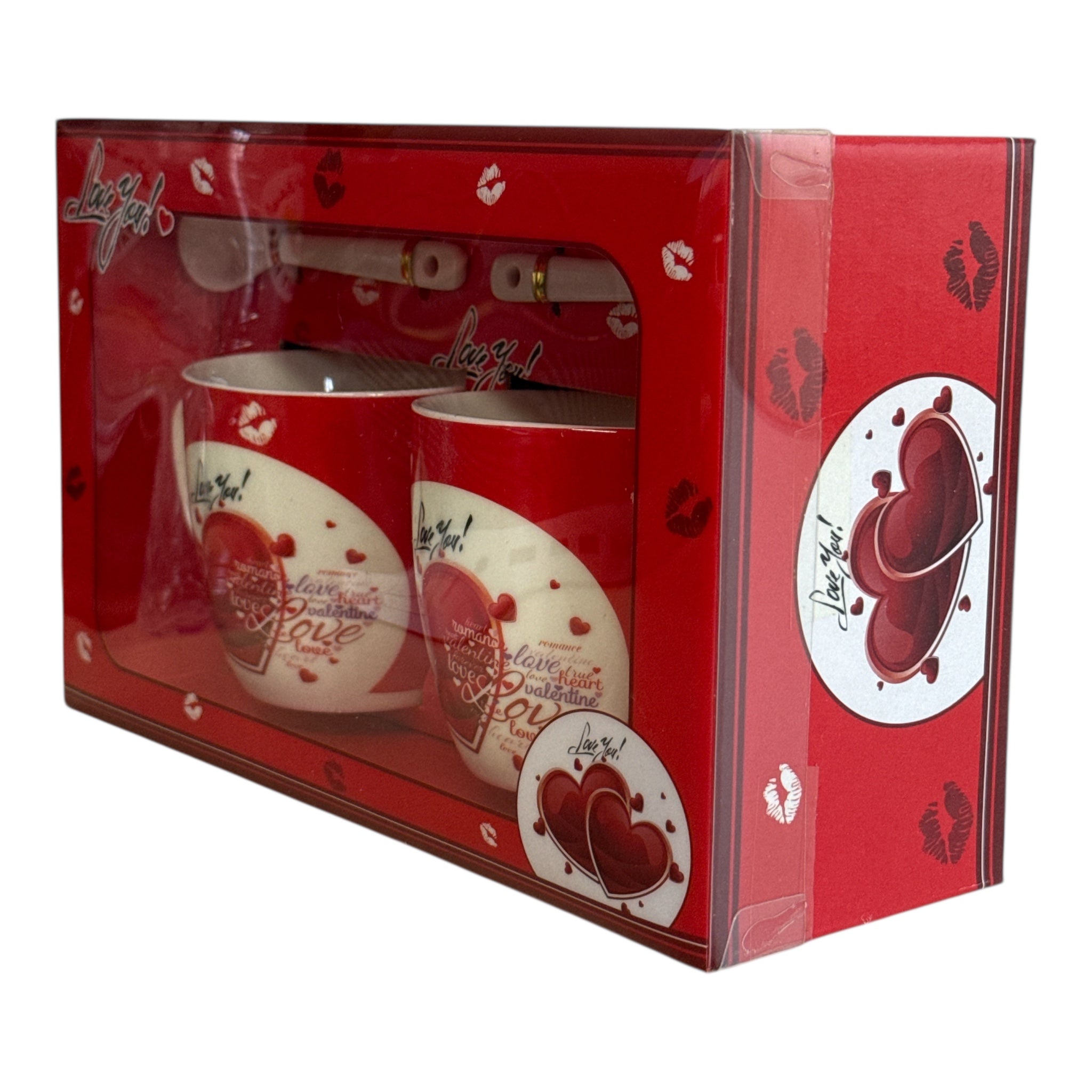 Setul este format din 2 căni cu linguriță și vine ambalat intr-o cutie elegantă de cadou.