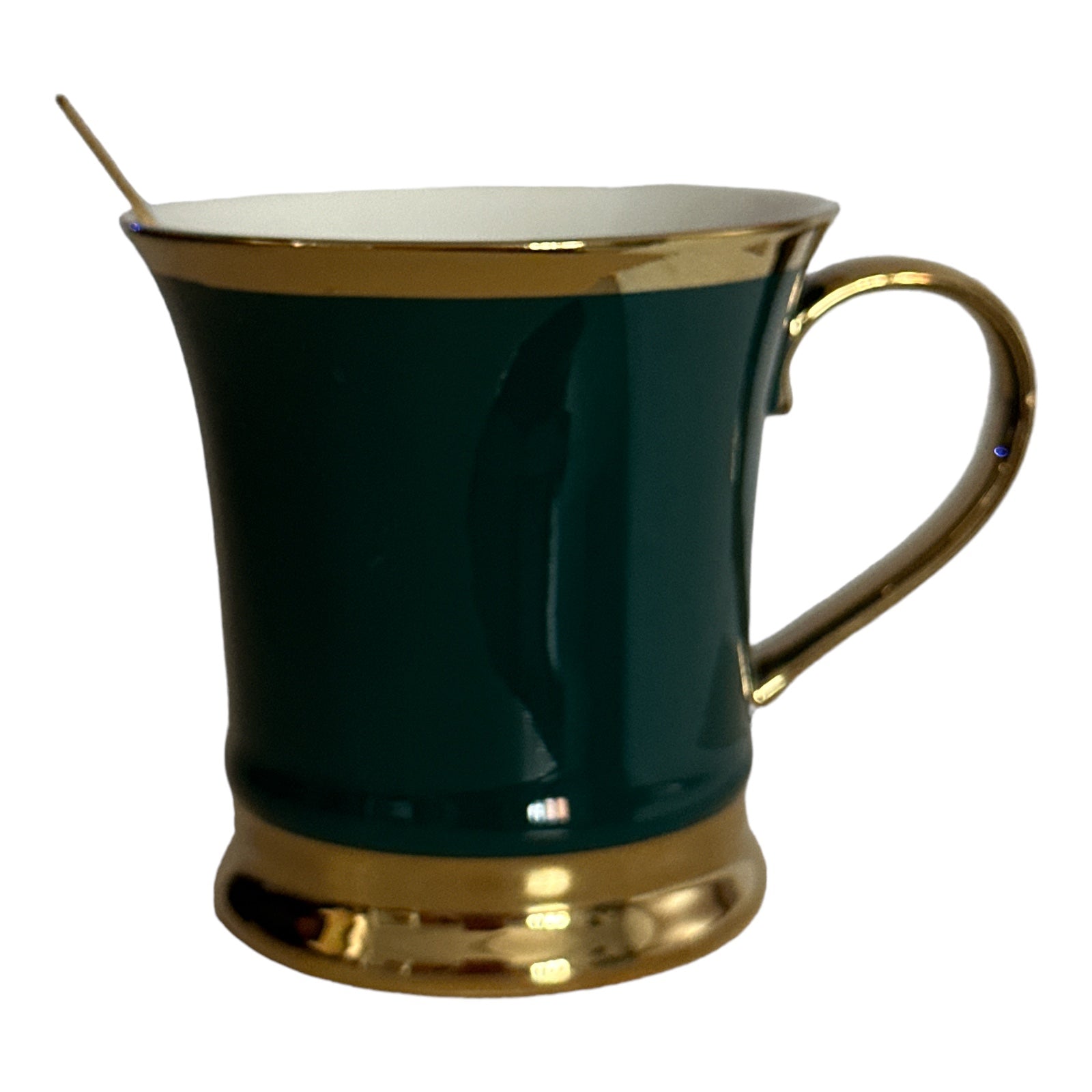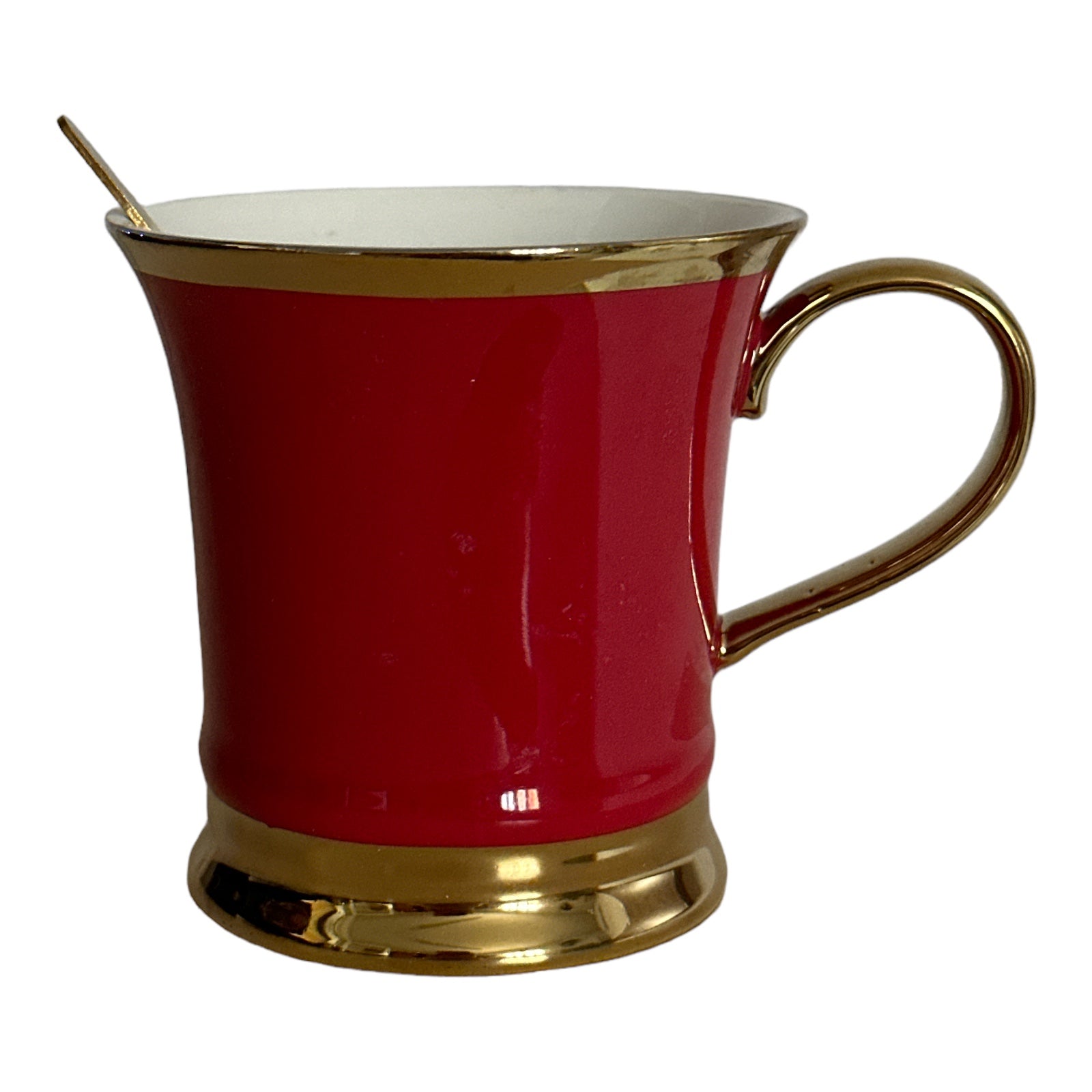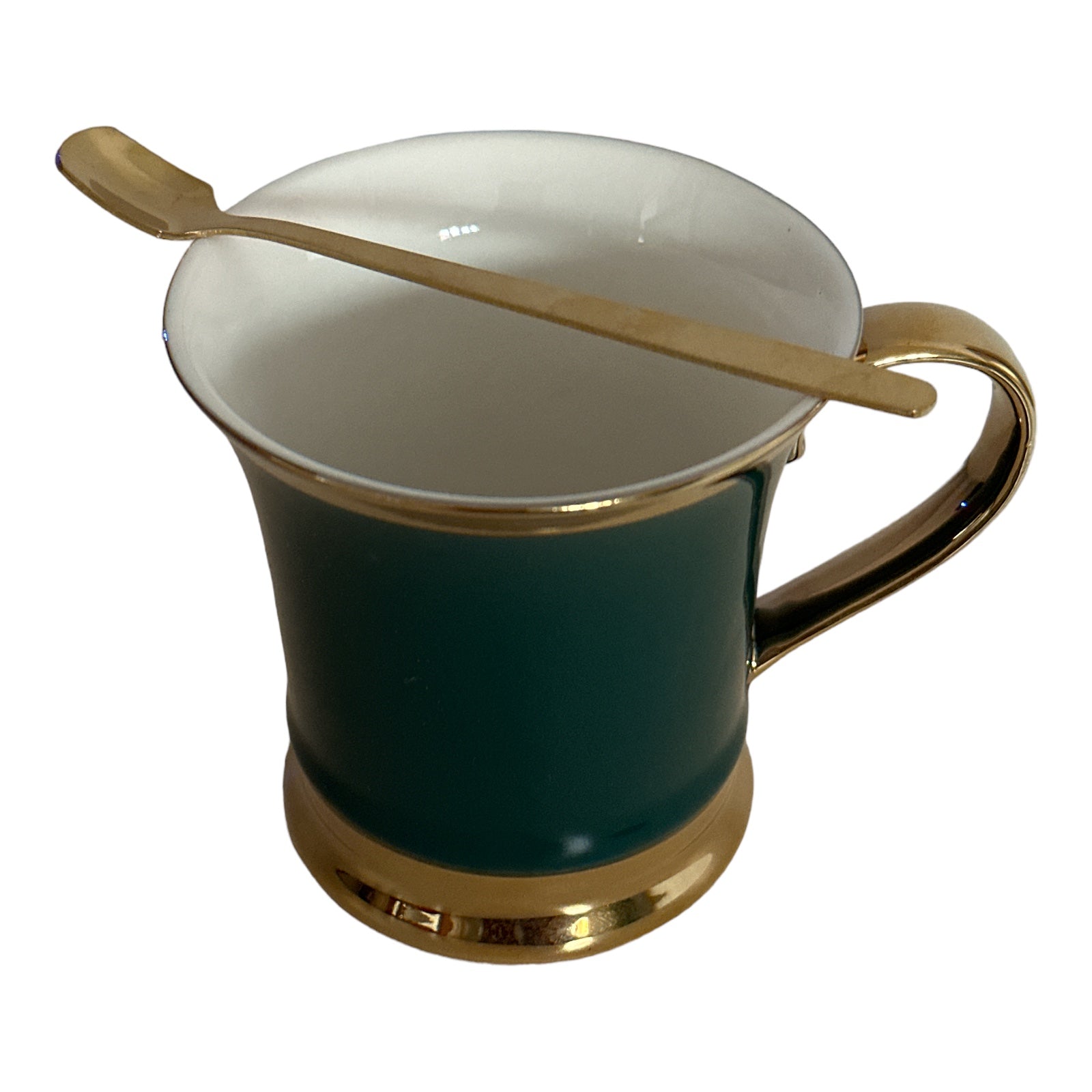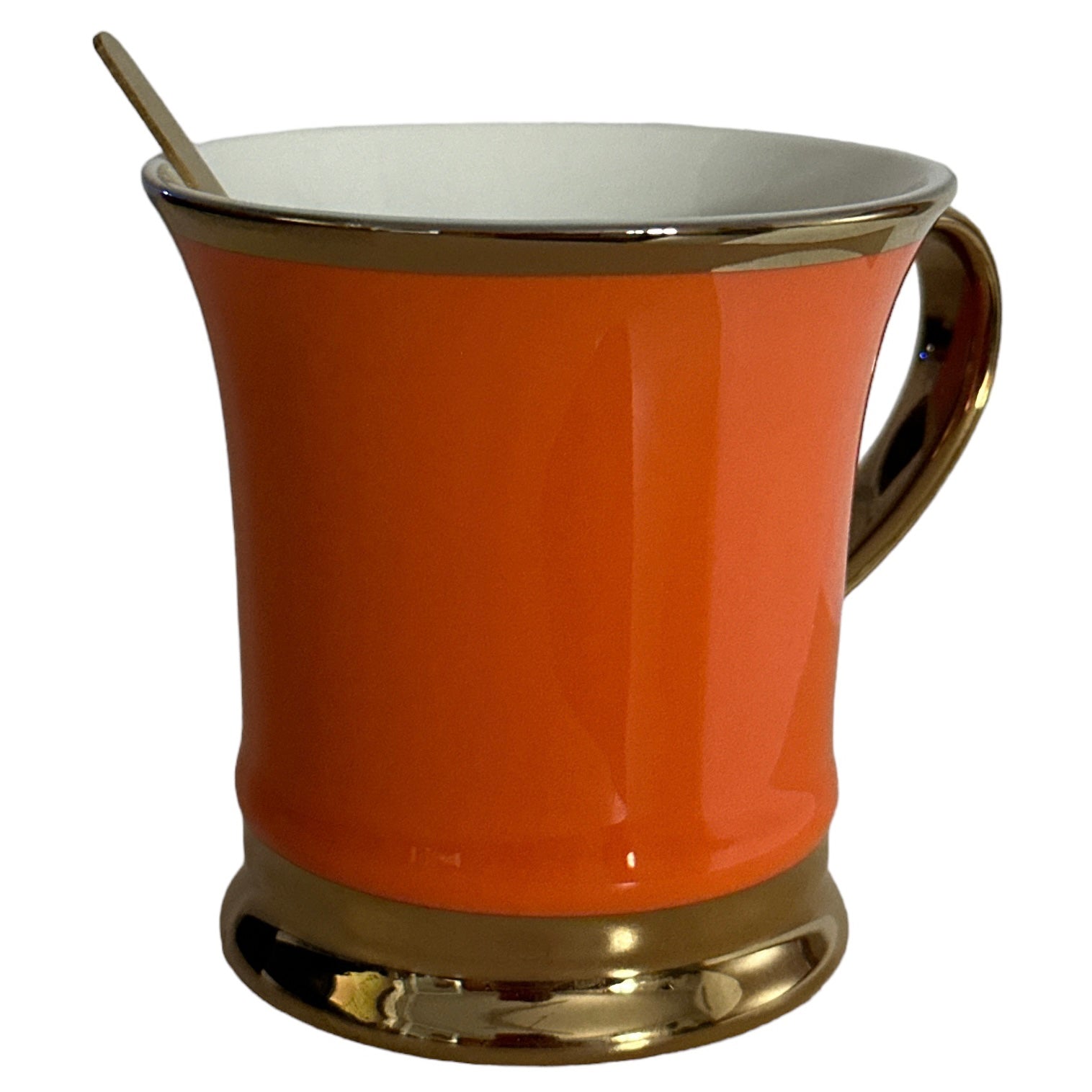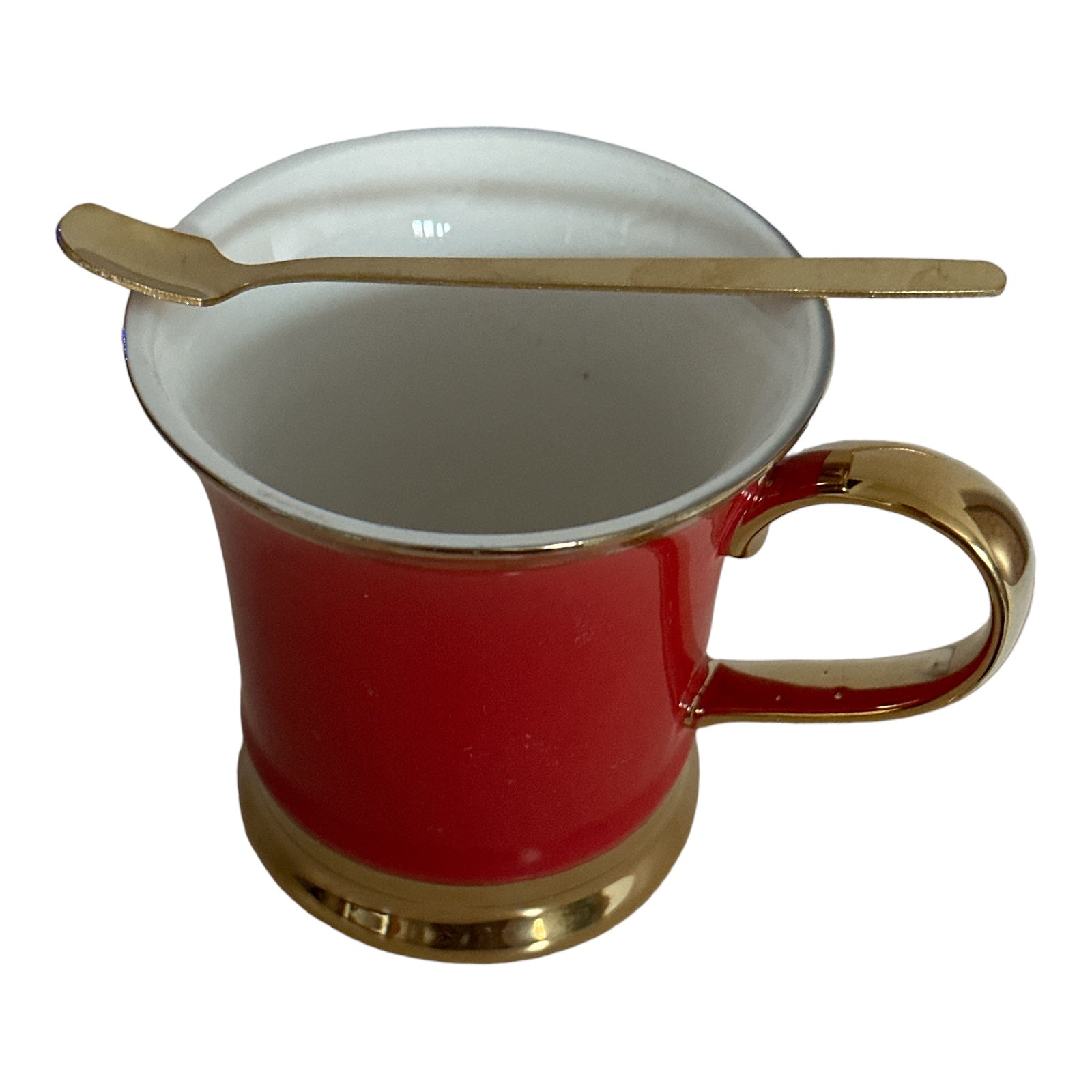 Setul este format din 2 căni cu 2 lingurițe metalice și vine ambalat într-o cutie elegantă din carton auriu perfectă pentru un cadou plin de bun gust.