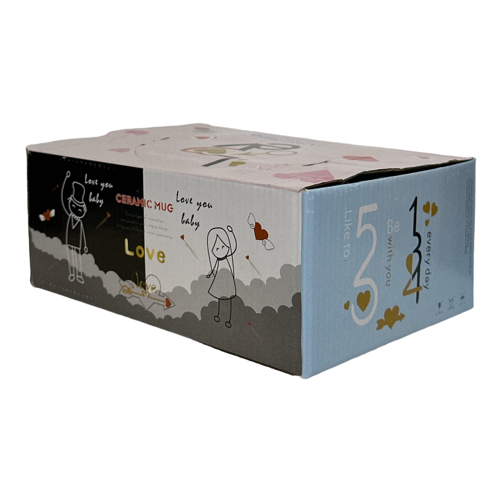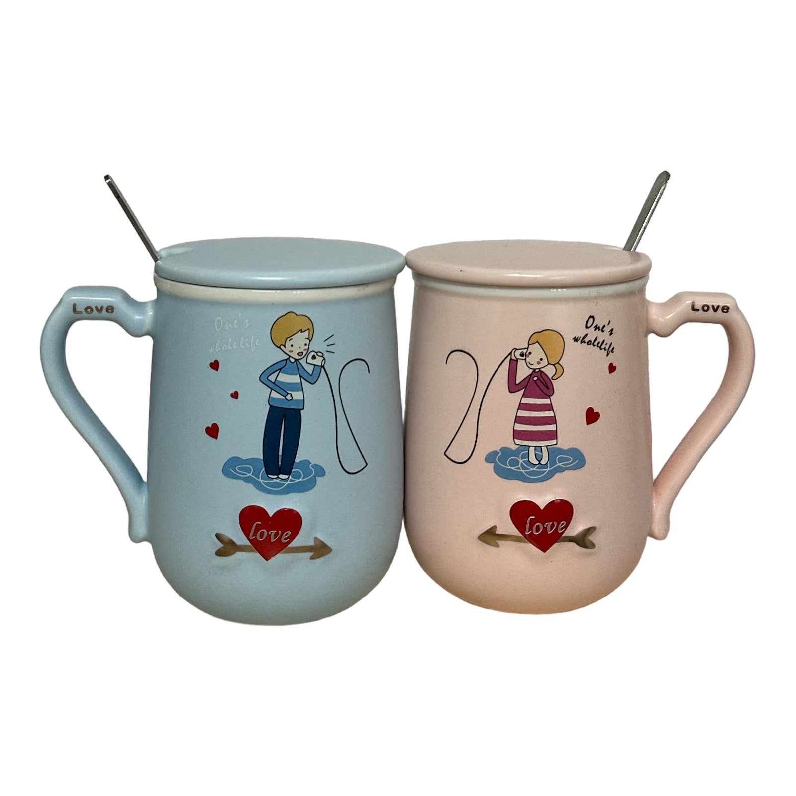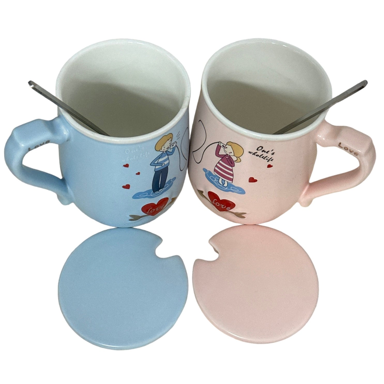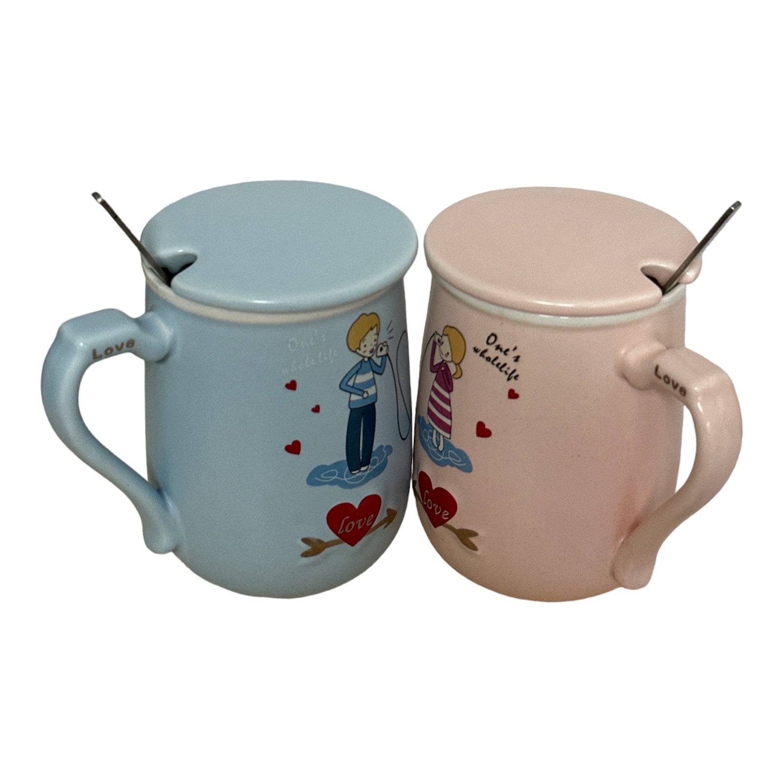 Setul este format din 2 căni cu capac și lingurițe metalice și vine ambalat într-o cutie din carton colorată, perfectă pentru un cadou plin de bun gust.