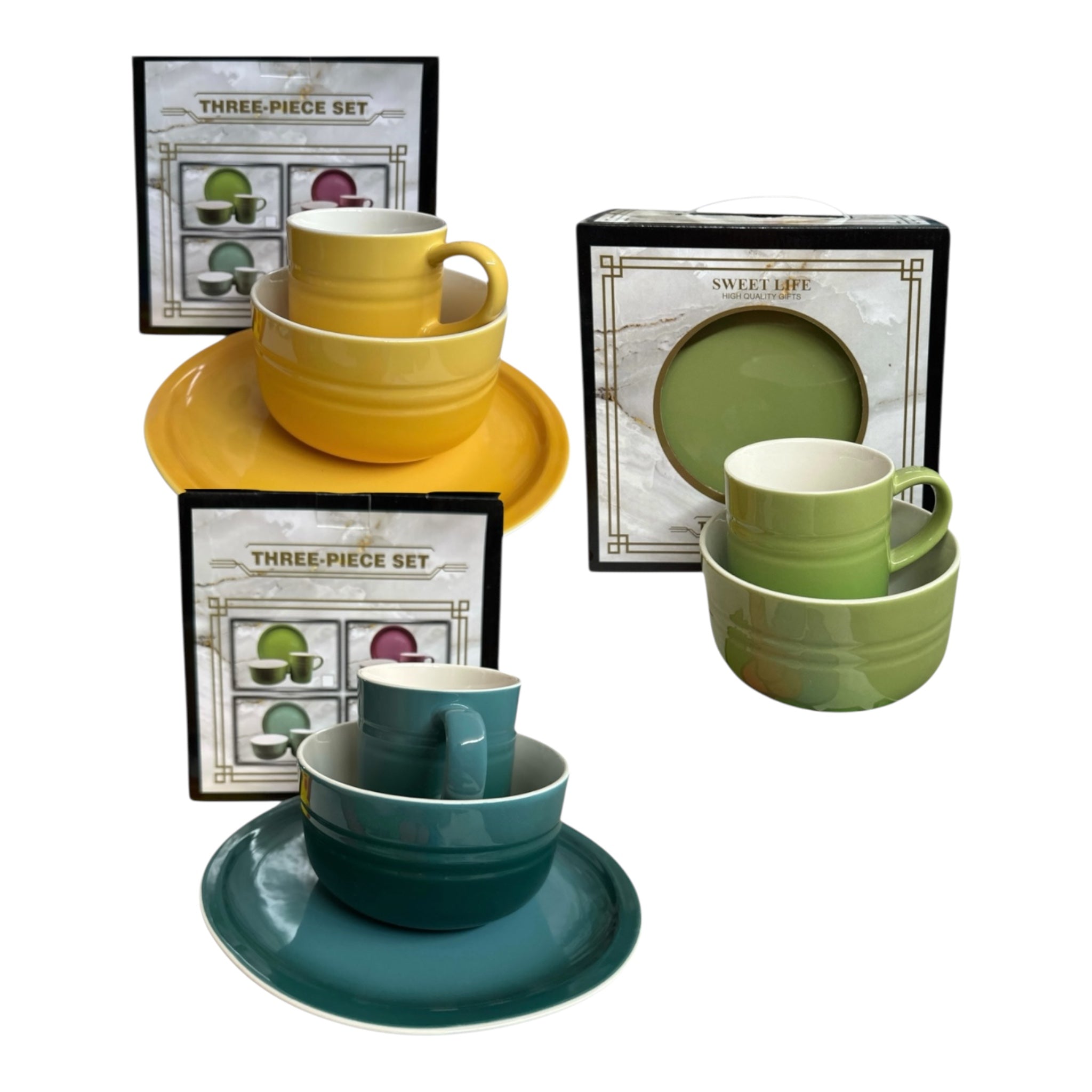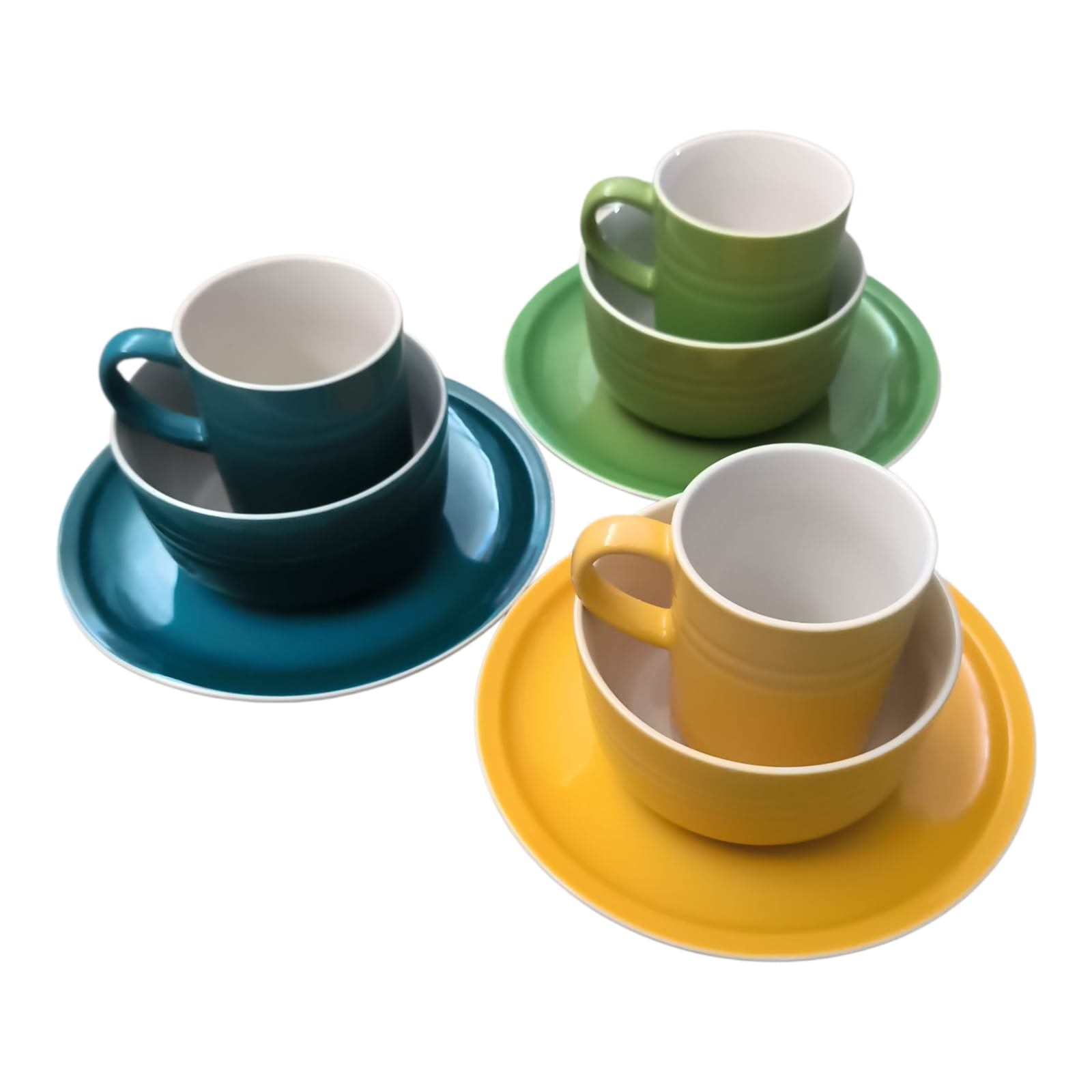 Disponibil în culori moderne – galben solar, verde pastel sau albastru petrol – acest set este perfect pentru mic-dejunuri savuroase, cine relaxante sau pauze de cafea cu stil.