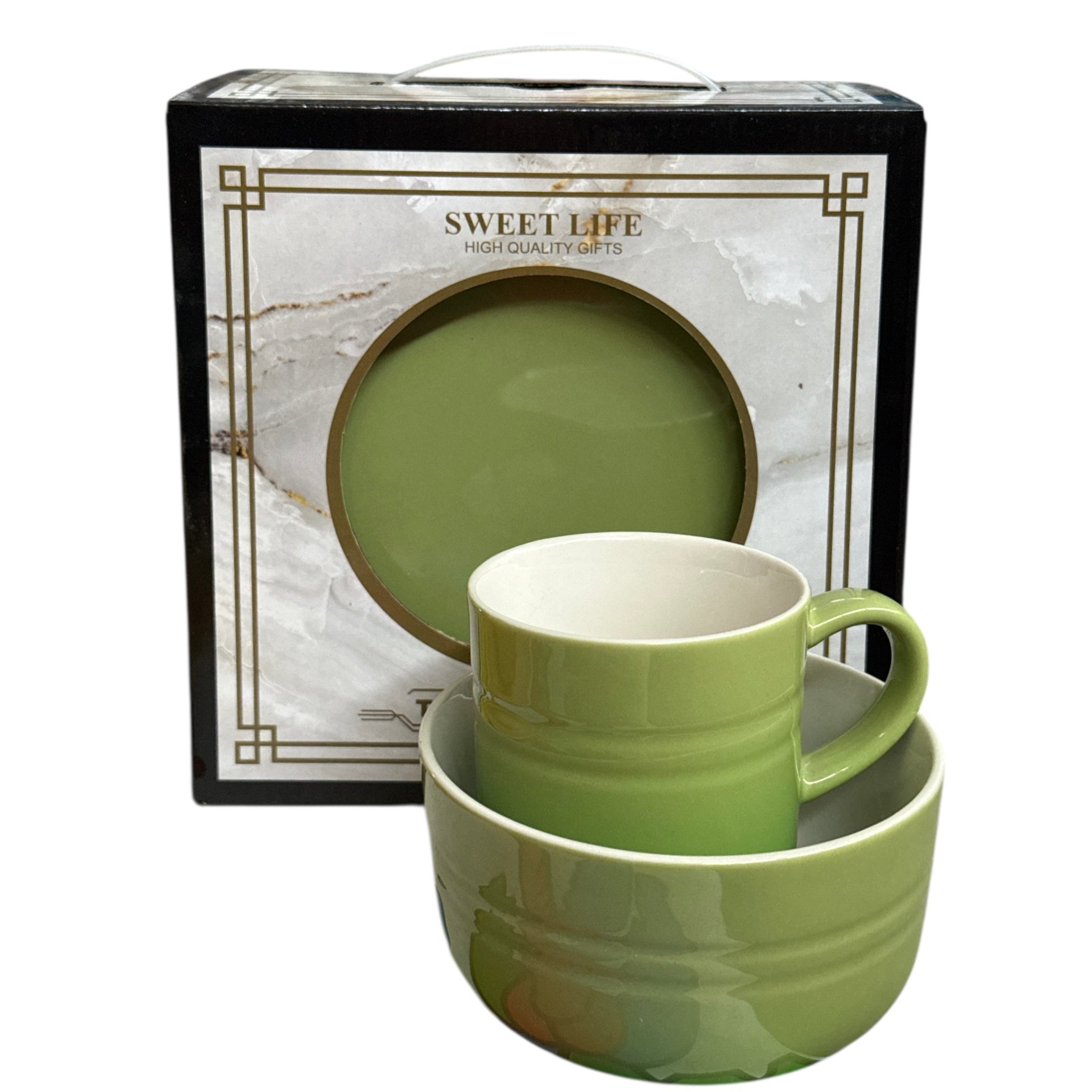 Adaugă un strop de culoare și rafinament meselor tale cu acest elegant set de veselă ceramică “Sweet Life”, compus din 3 piese esențiale: o farfurie întinsă, un bol practic și o cană cu toartă confortabilă.