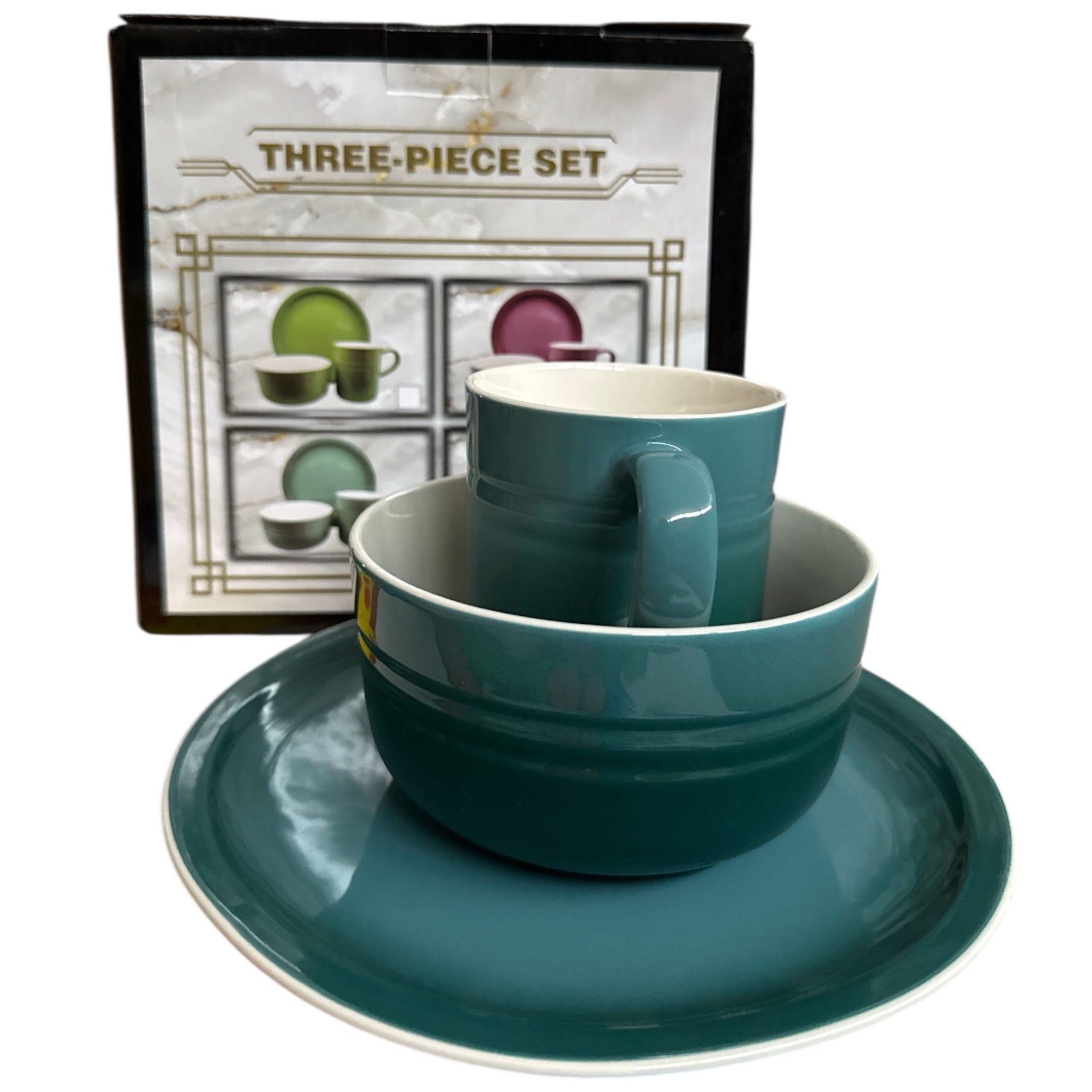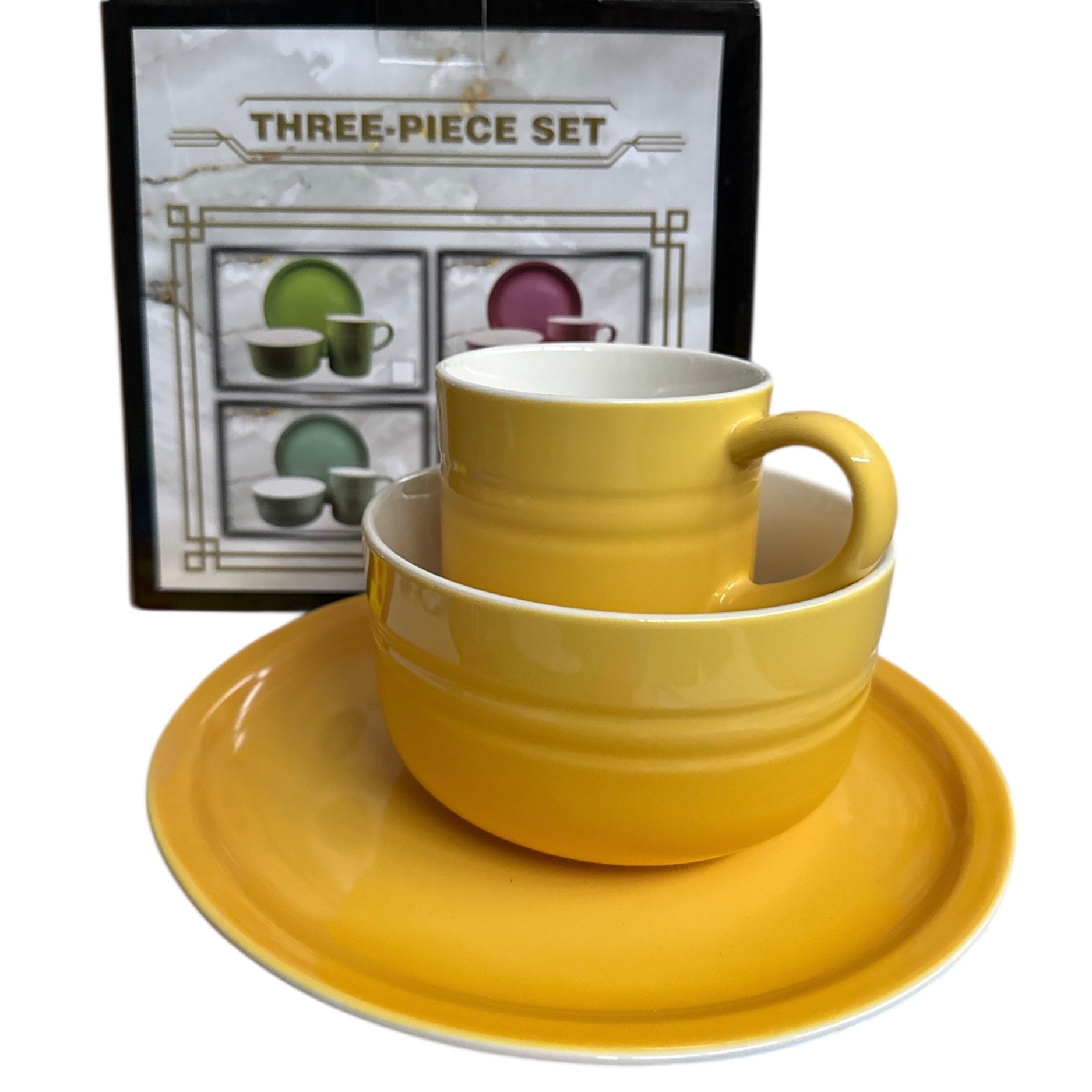 - Set compus din 3 piese: farfurie, bol și cană