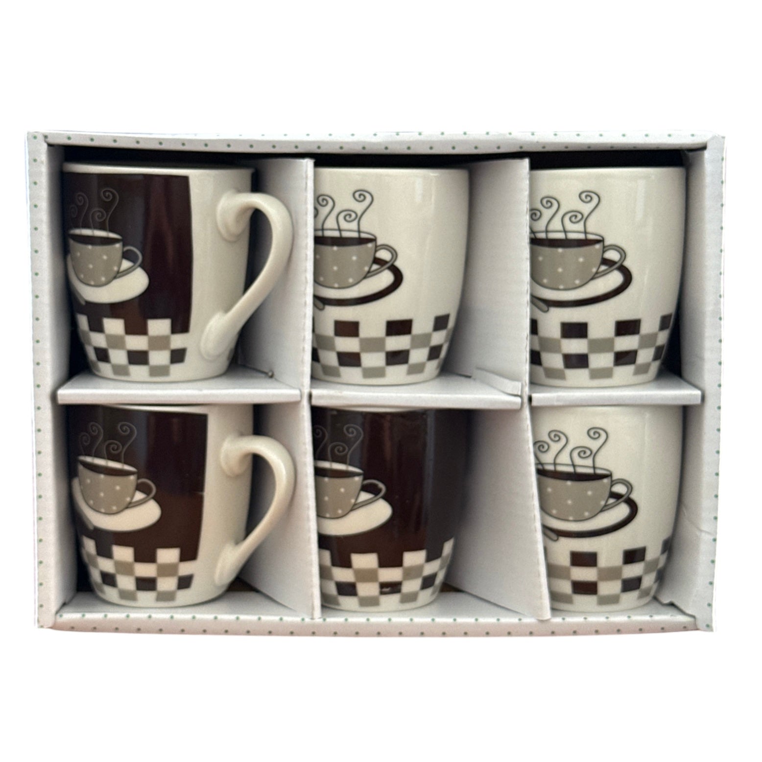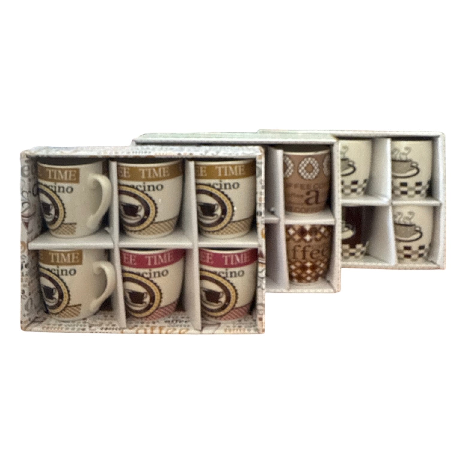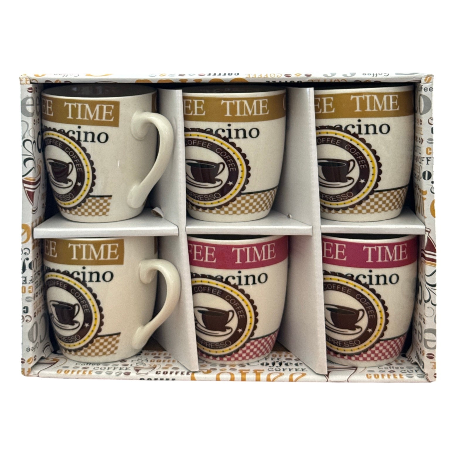 Setul este format din 6 căni frumos colorate și vine ambalat într-o cutie de carton cu capac transparent.