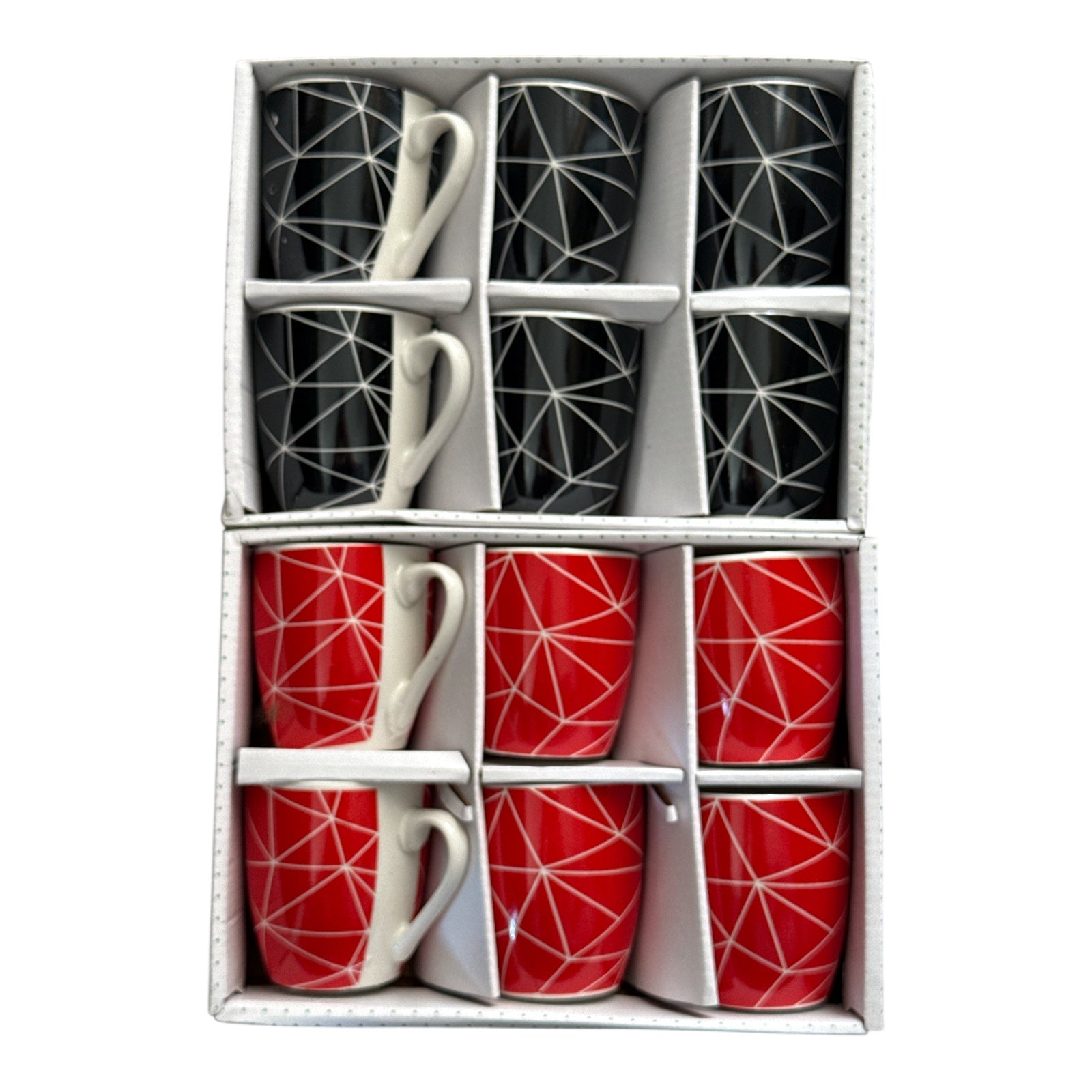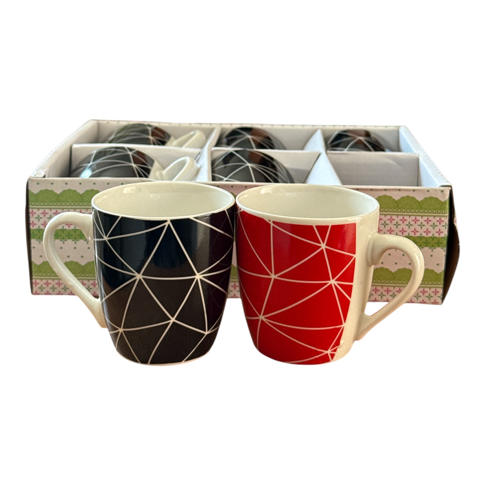 Setul este format din 6 căni frumos colorate și vine ambalat într-o cutie de carton cu capac transparent.