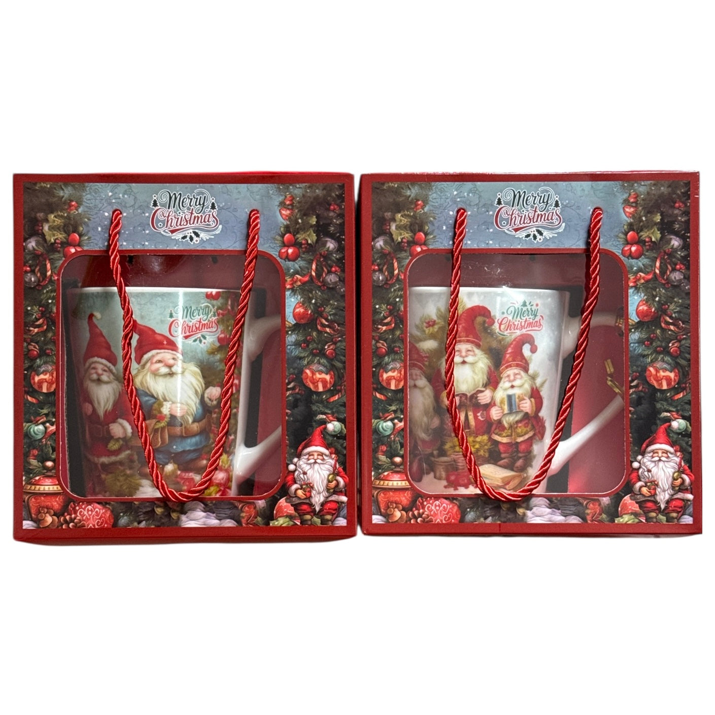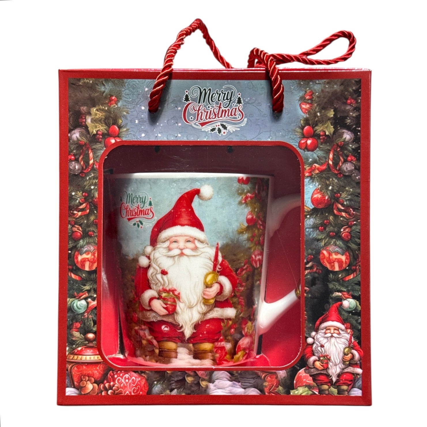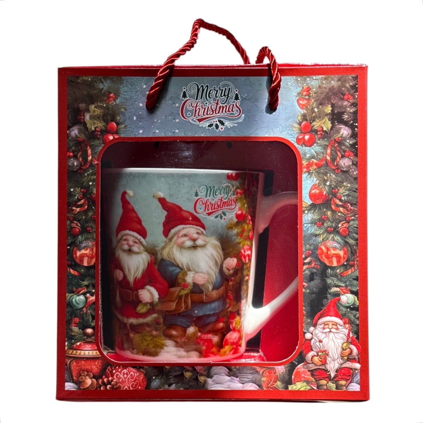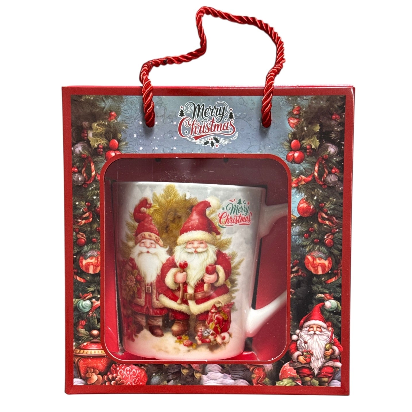 Setul este format dintr-o cană cu linguriță metalică și vine ambalat într-o cutie elegantă cu motive de Crăciun.