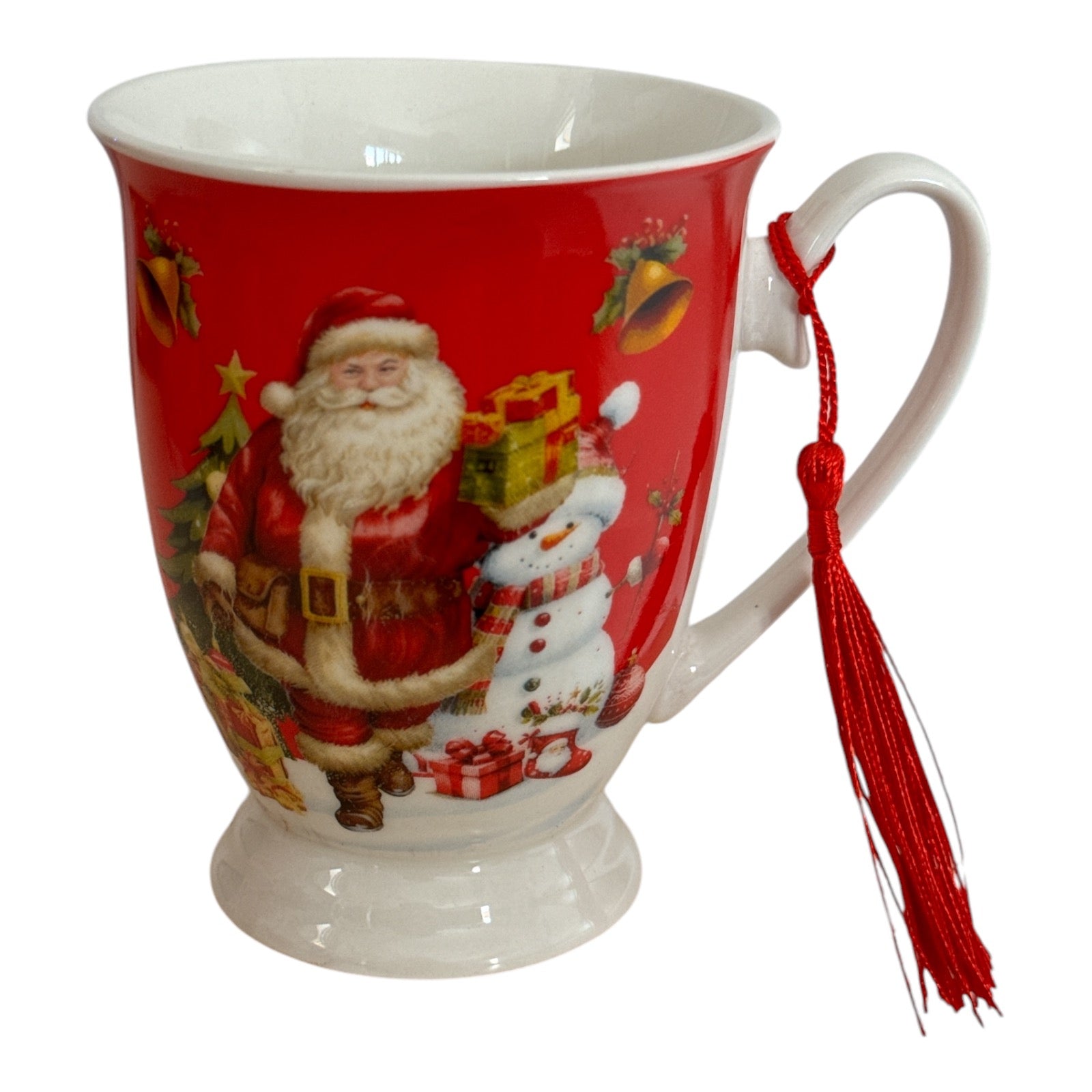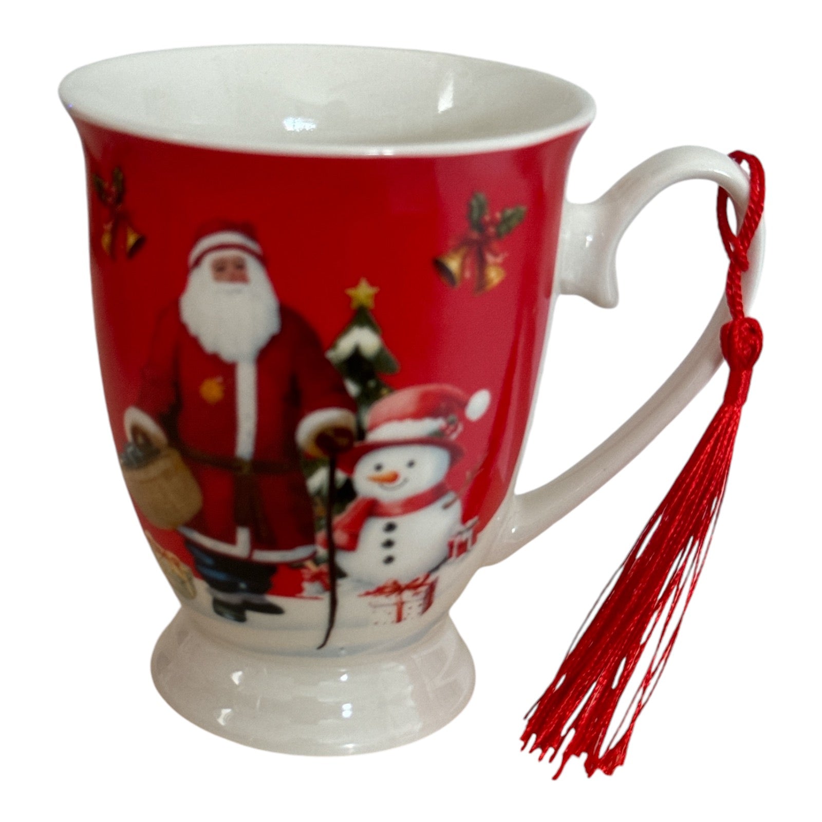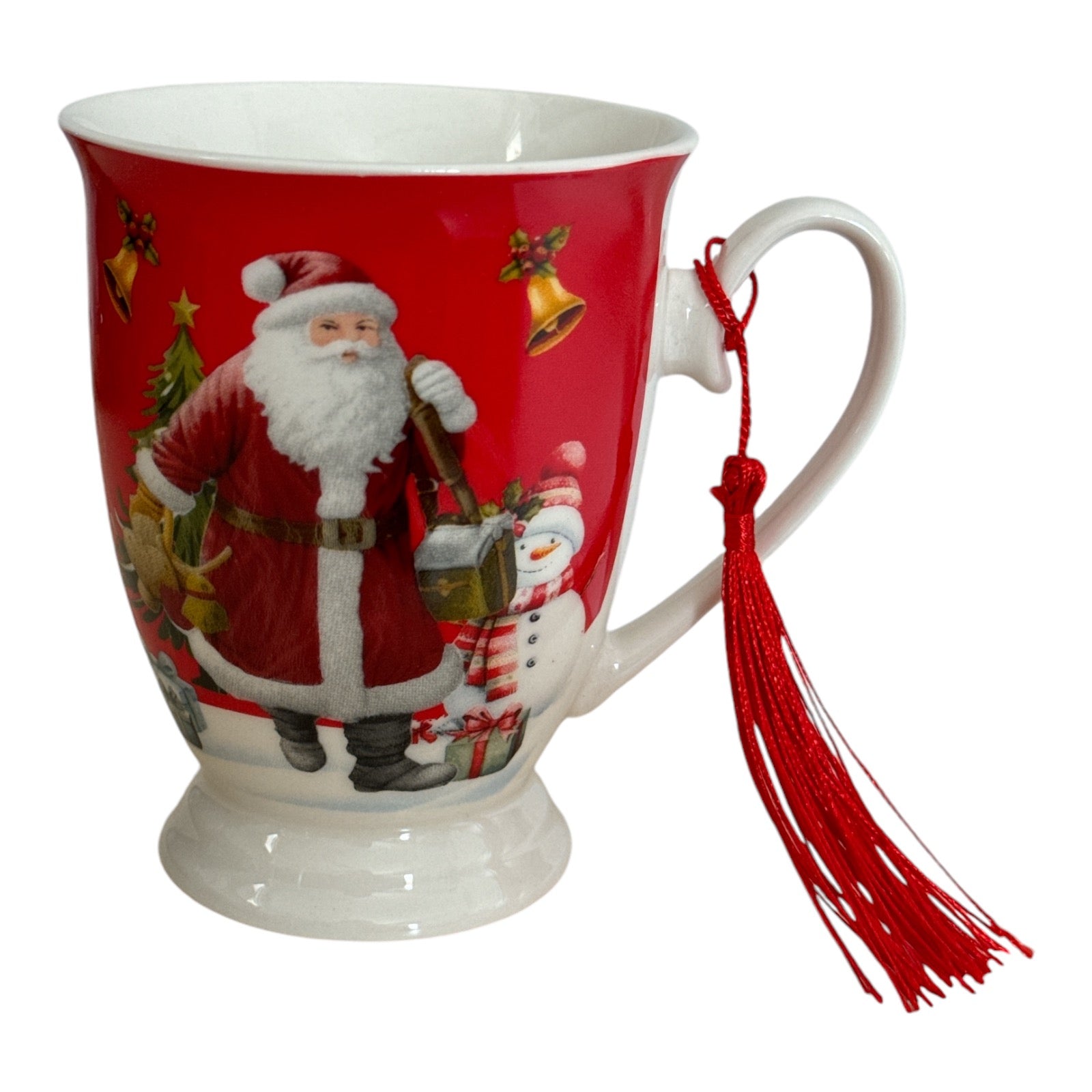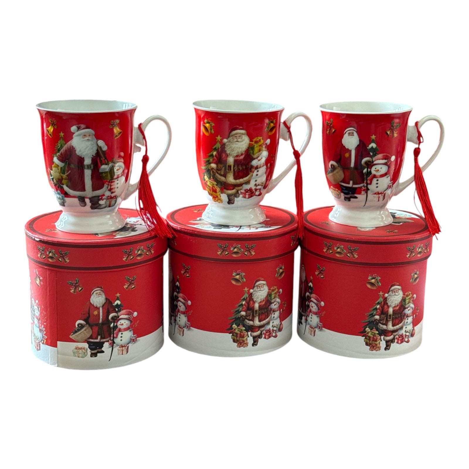 Setul este format dintr-o cană cu ciucure și vine ambalat într-o cutie elegantă de cadou rotundă specifică Sărbătorilor de iarnă.