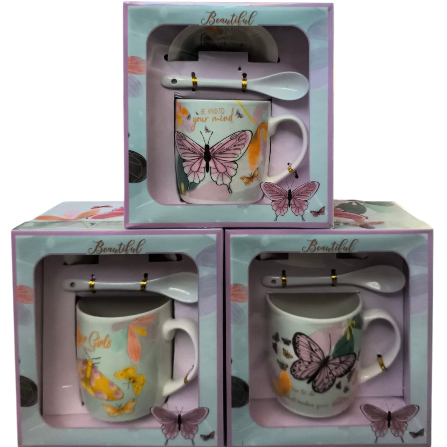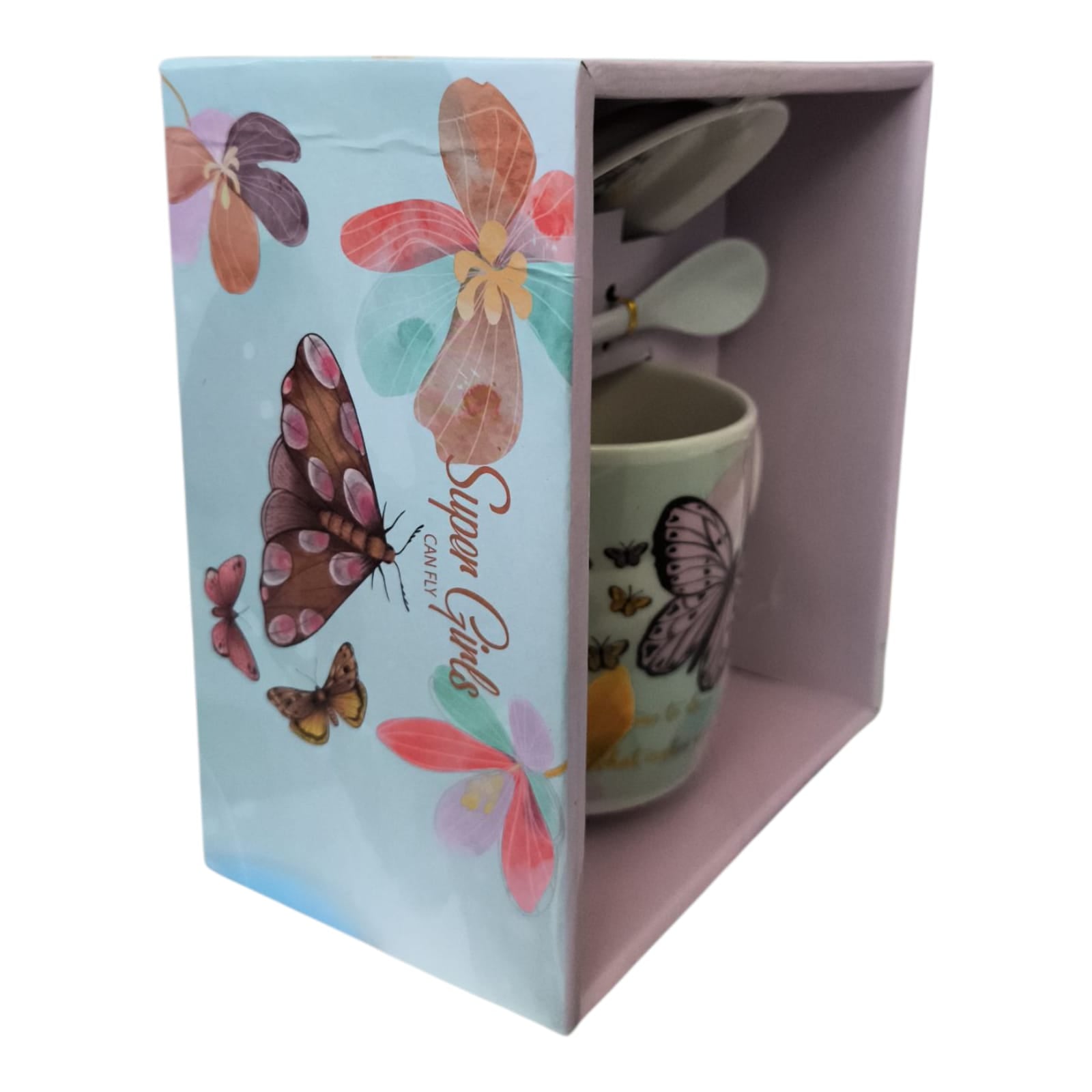 Setul este format dintr-o cană cu o farfurie cu linguriță și vine ambalat într-o cutie elegantă.