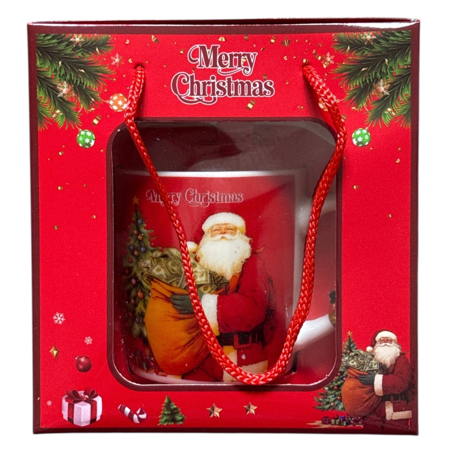 Setul este format dintr-o cană cu linguriță și vine ambalat într-o cutie eleganta în formă de pungă de cadou cu șnur.