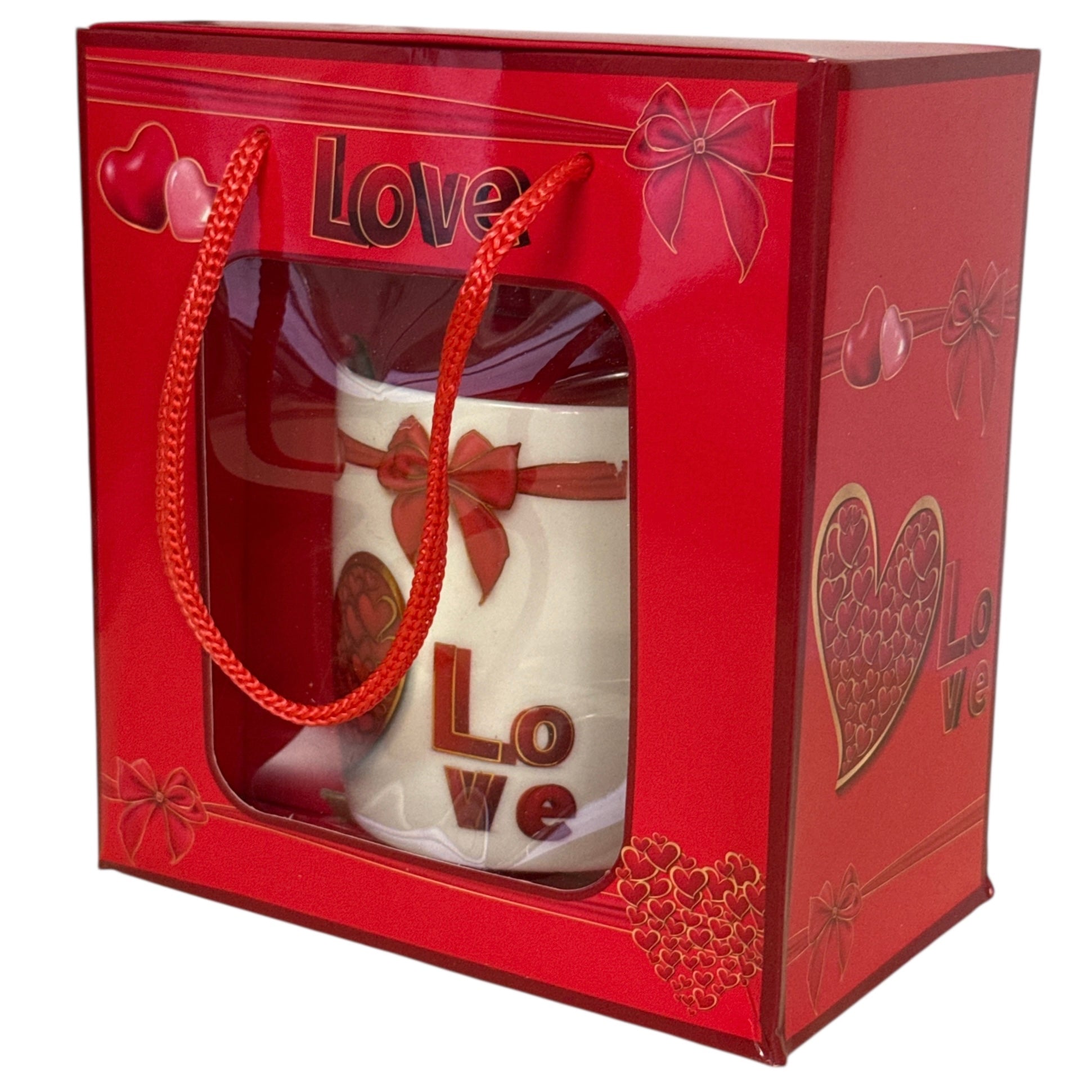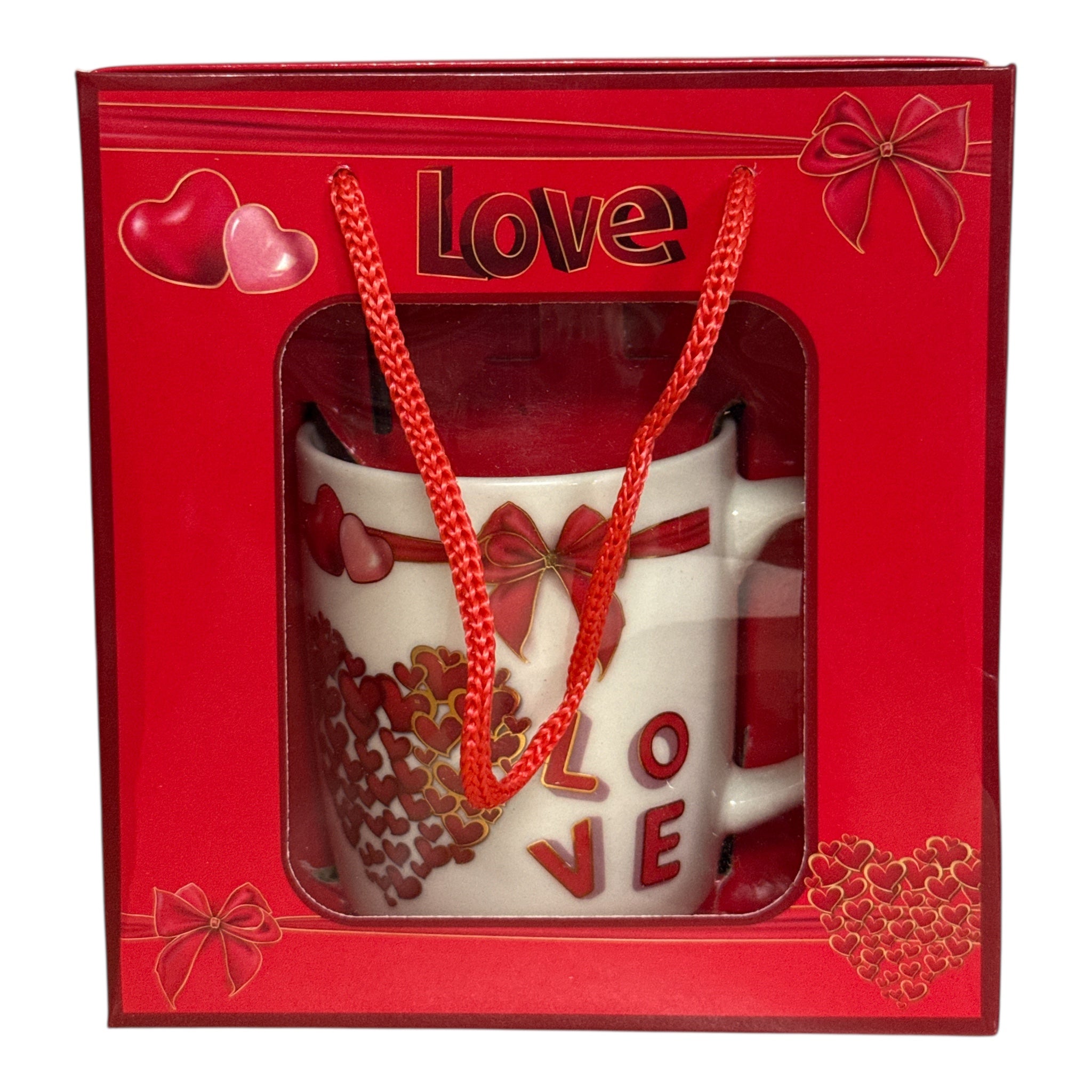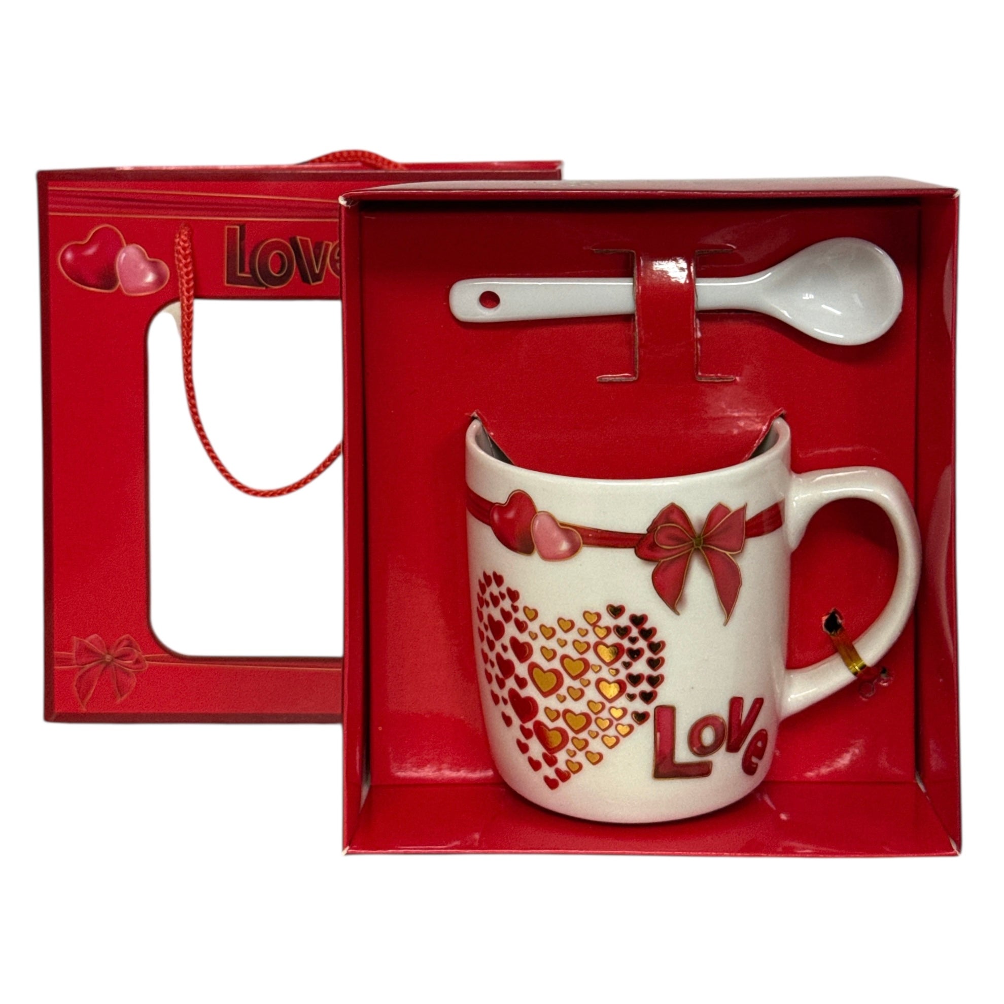 Setul este format dintr-o cană cu linguriță și vine ambalat într-o cutie elegantă în formă de pungă de cadou cu șnur.